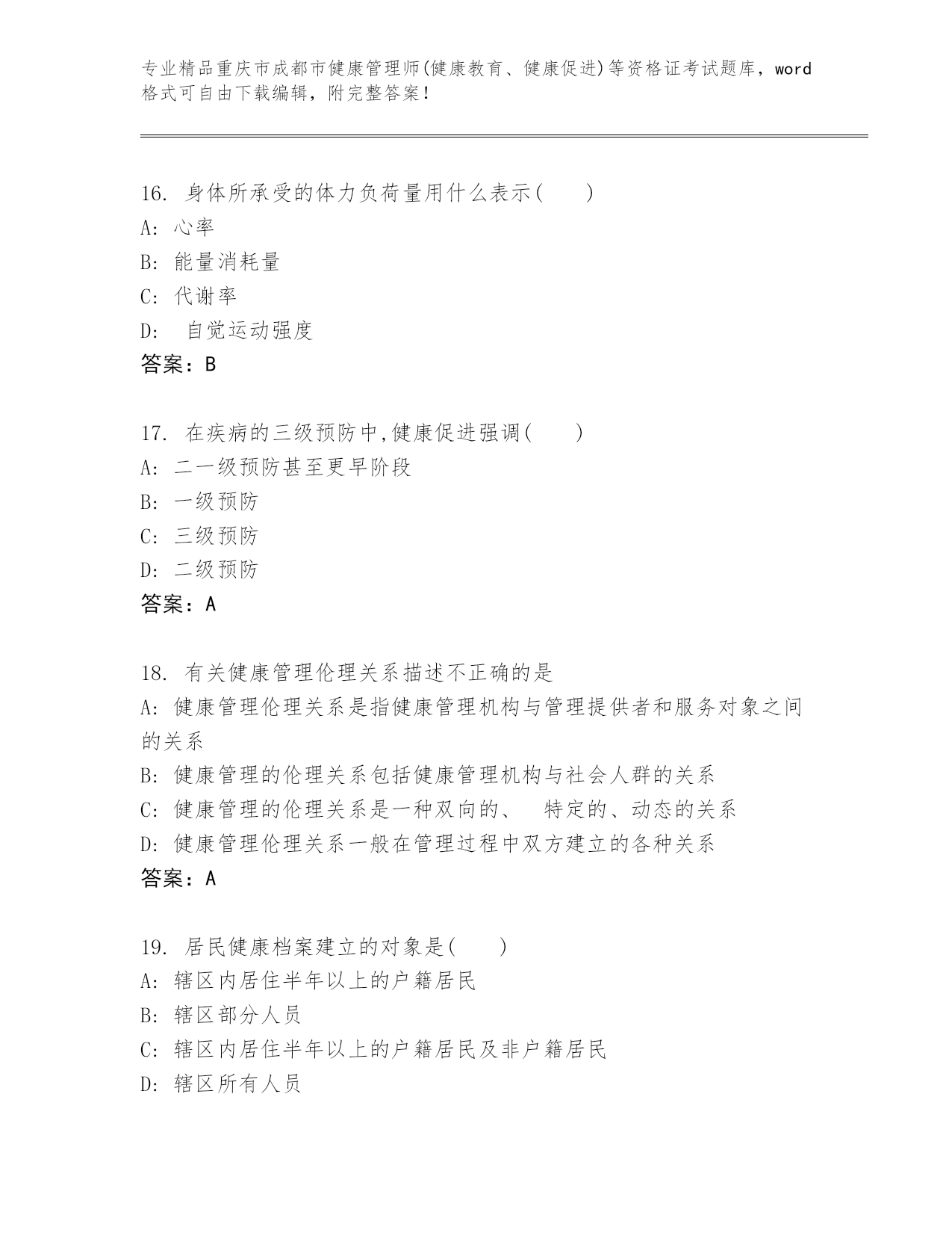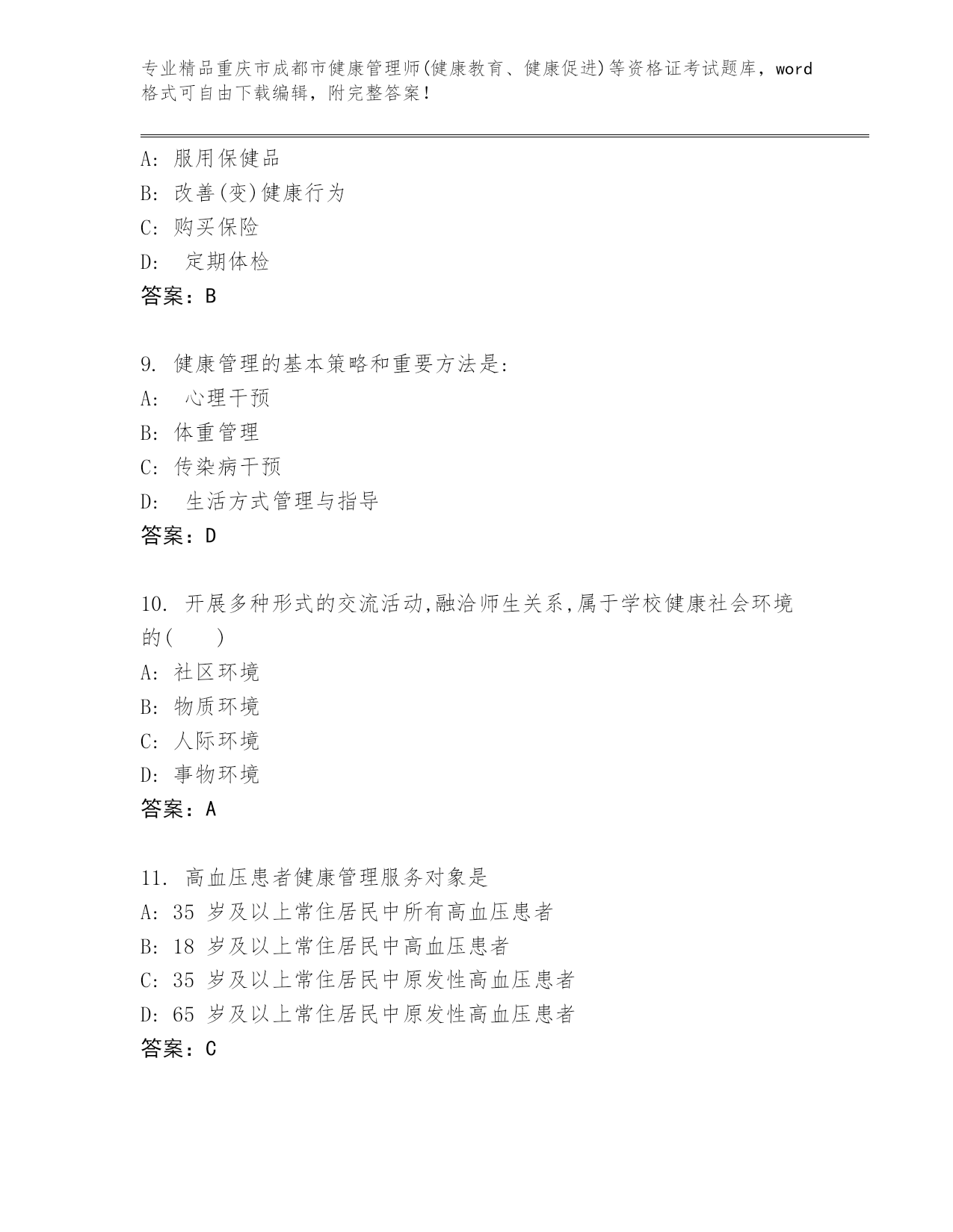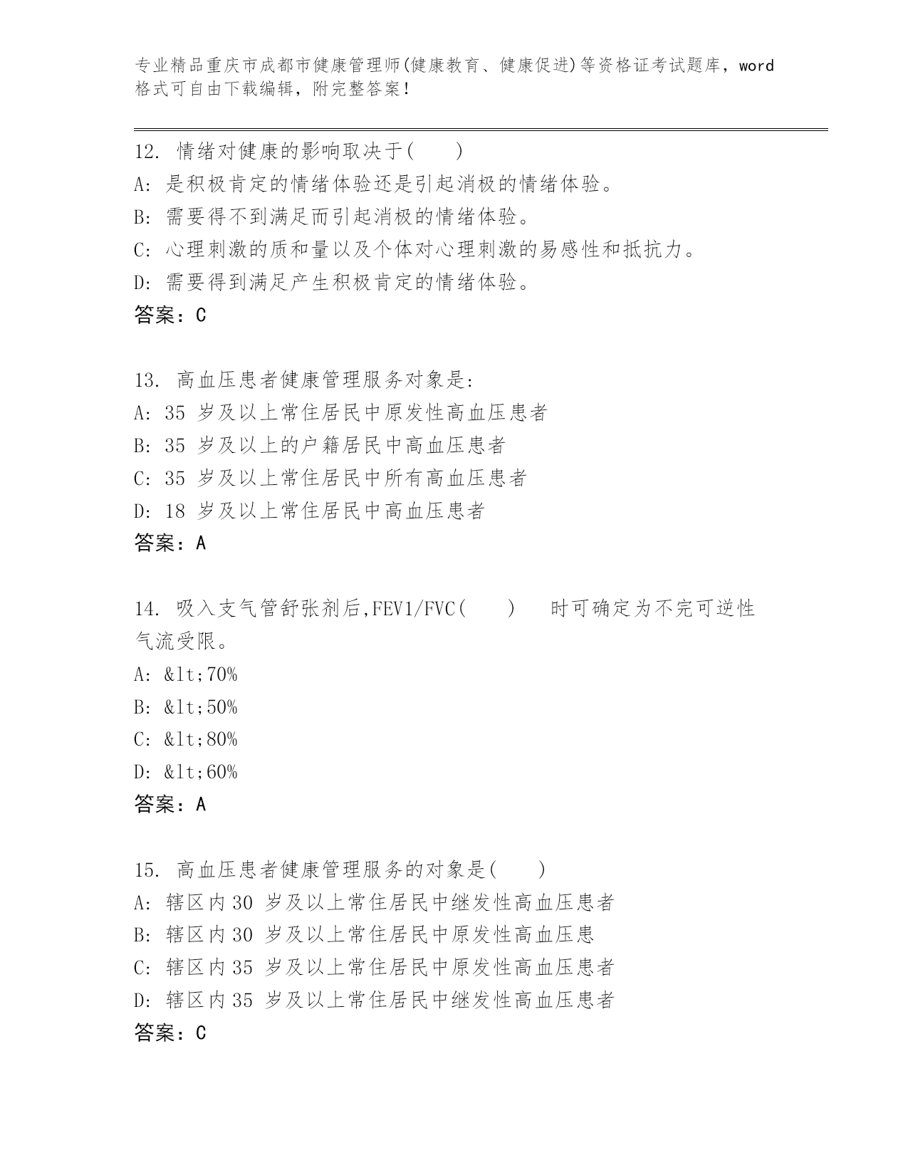 2024年重庆市成都市健康管理师(健康教育、健康促进)等资格证考试【全优】