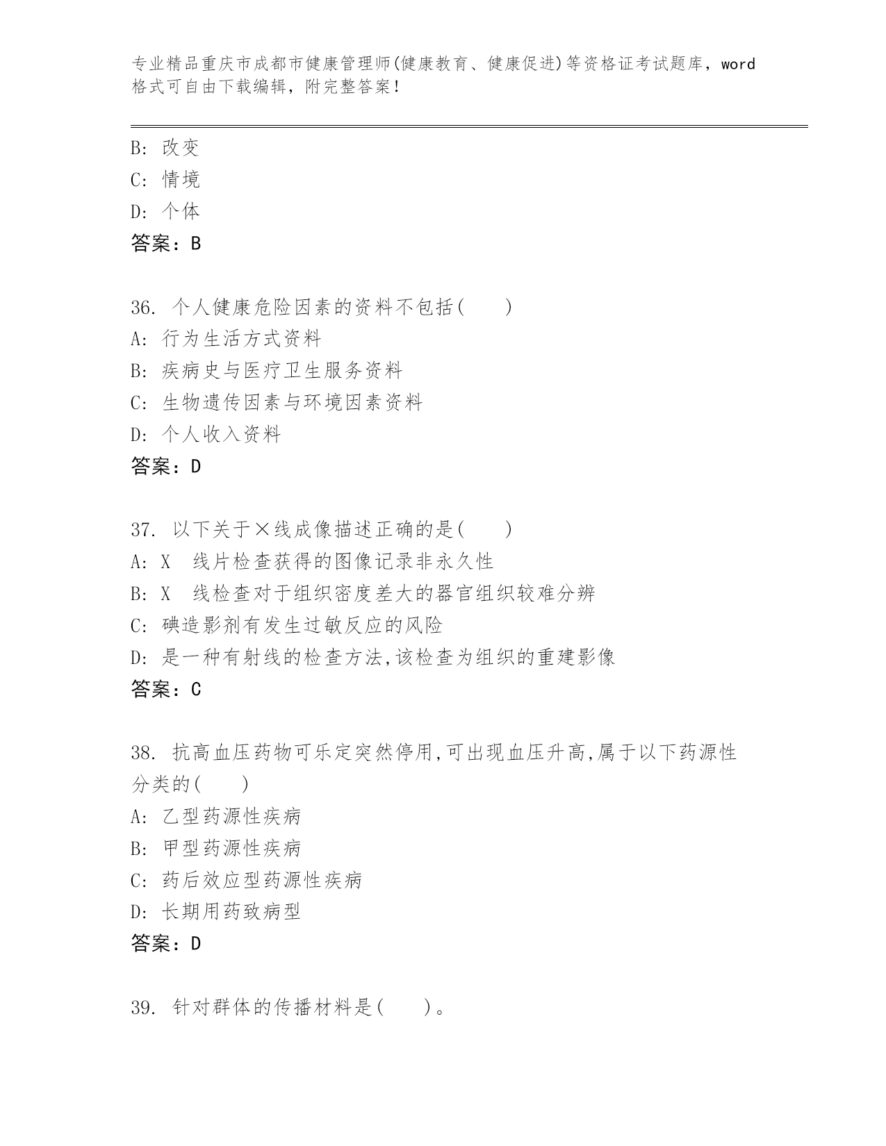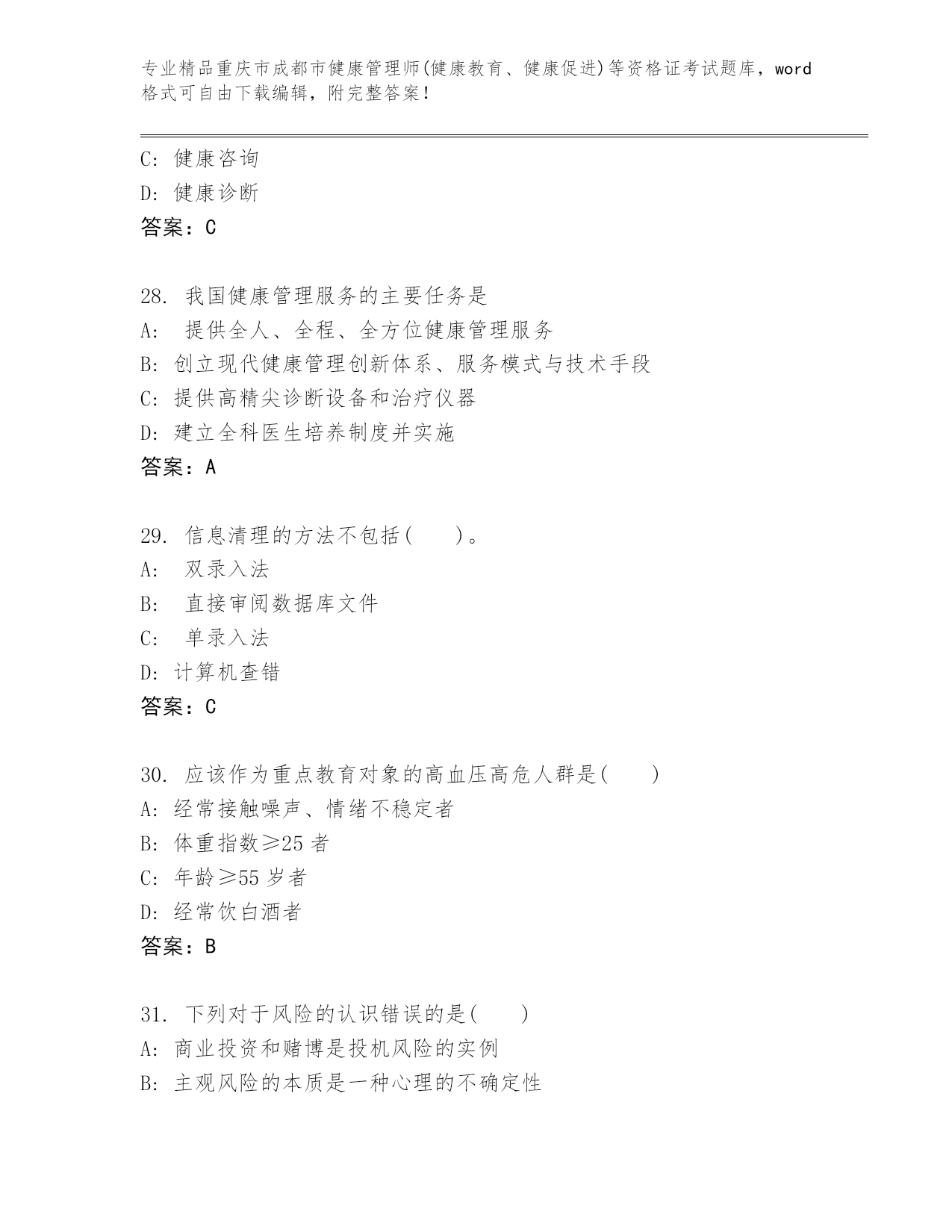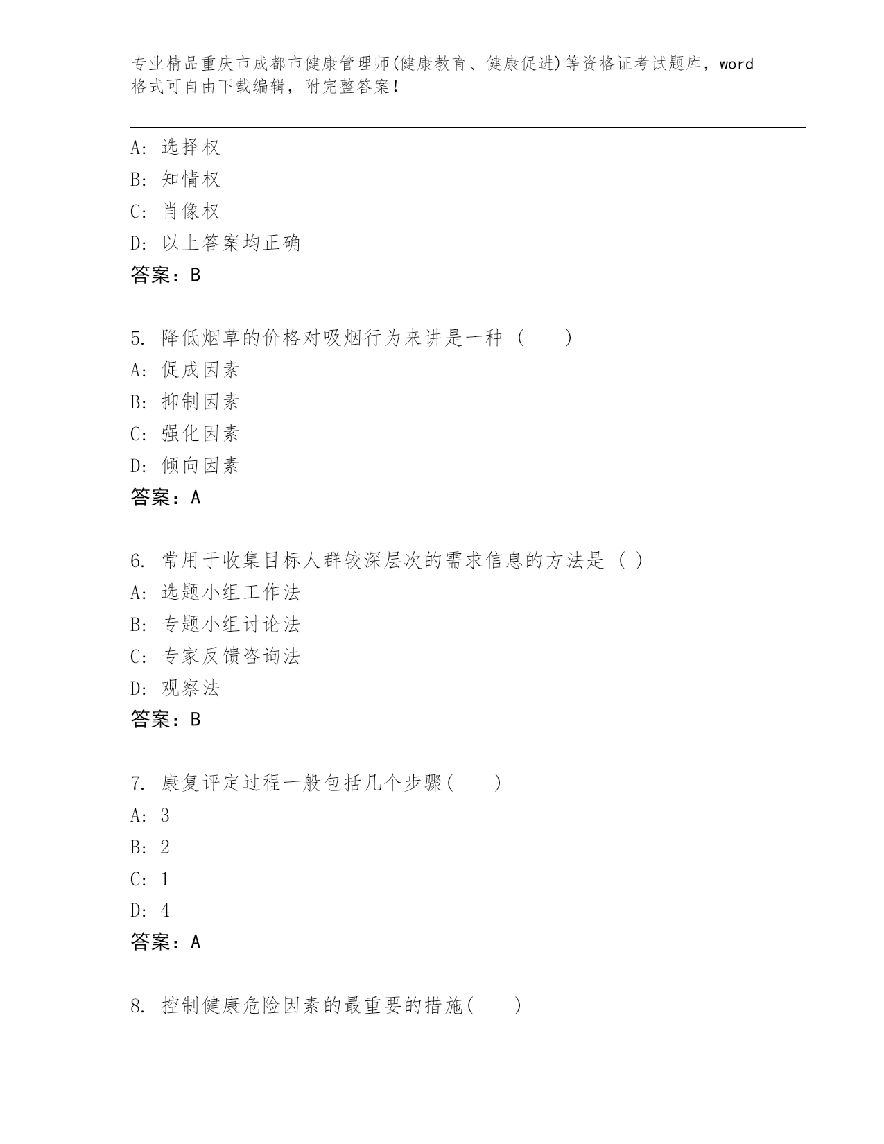 2024年重庆市成都市健康管理师(健康教育、健康促进)等资格证考试【全优】