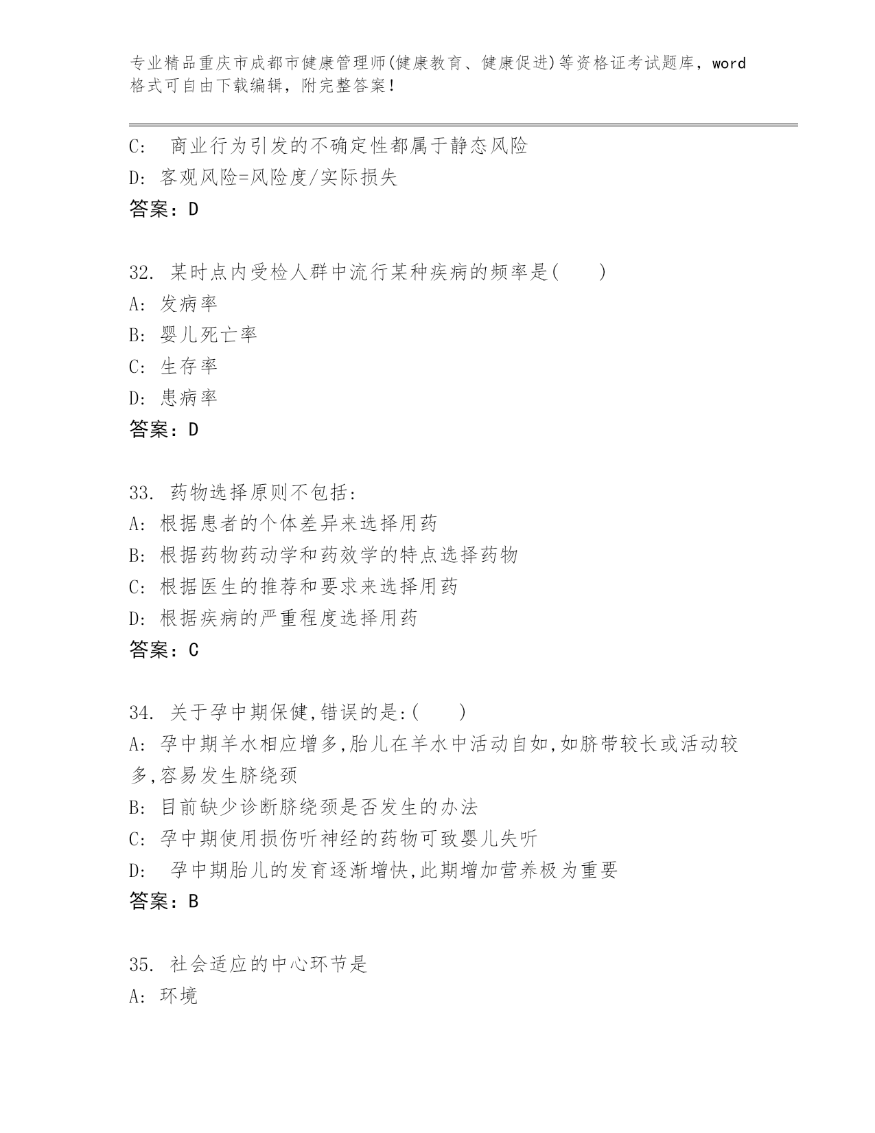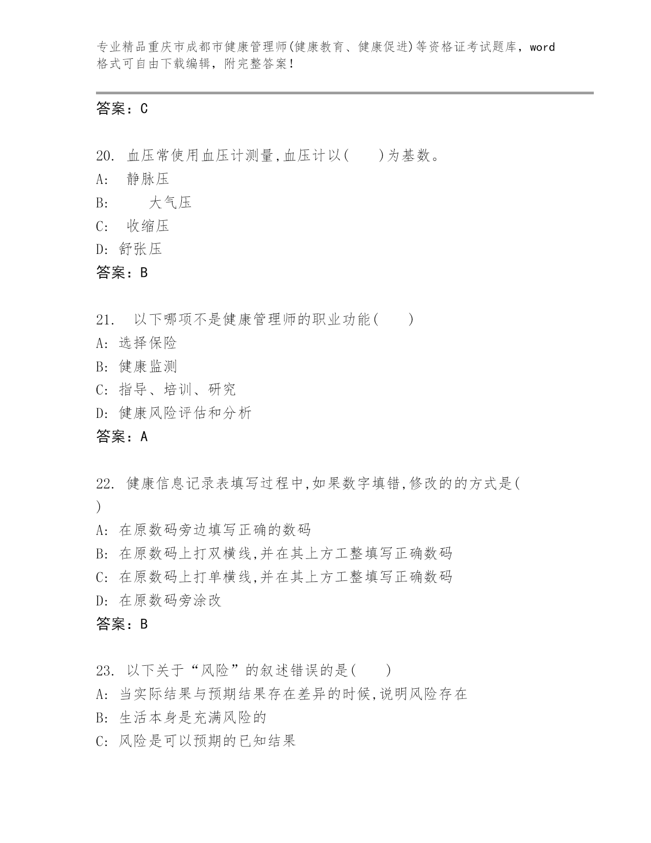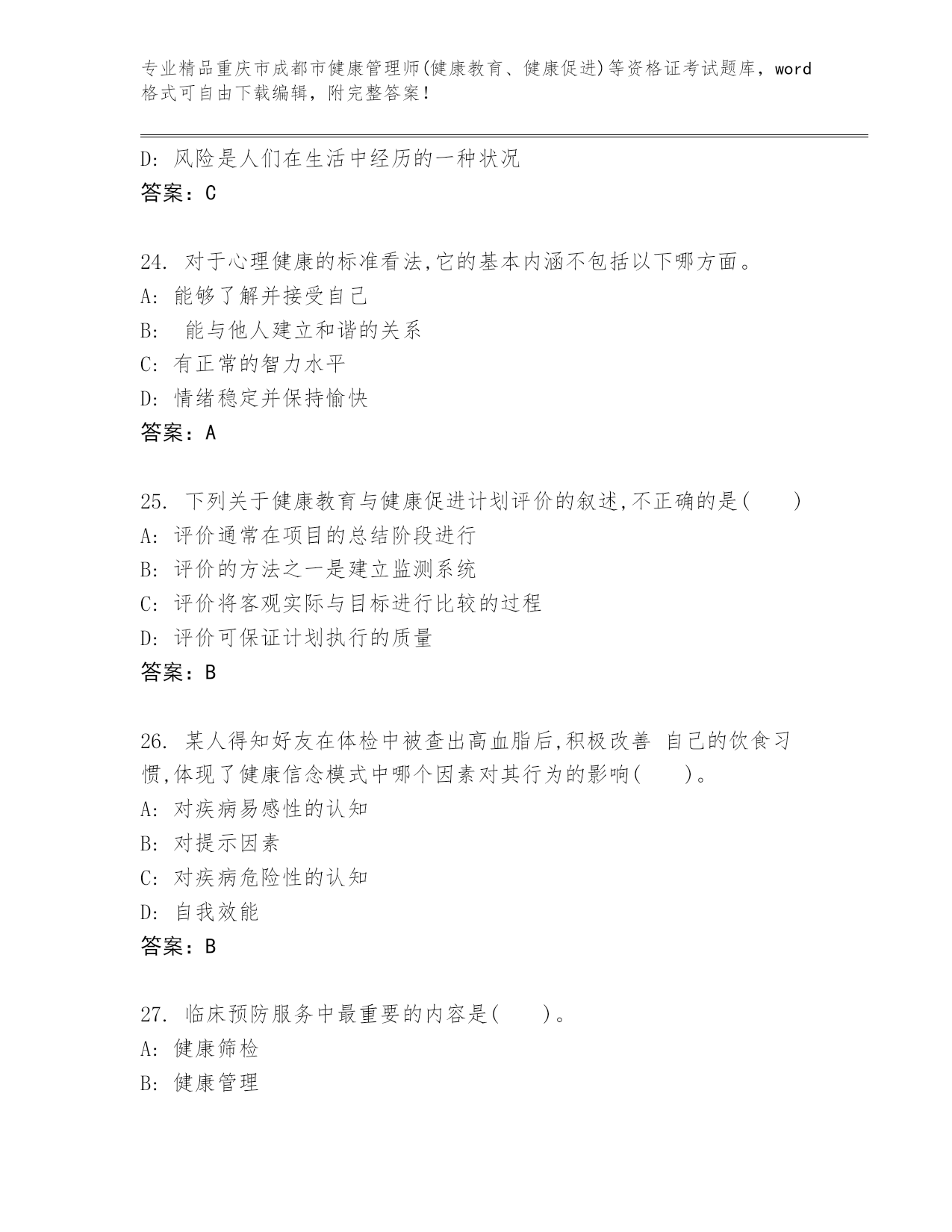 2024年重庆市成都市健康管理师(健康教育、健康促进)等资格证考试【全优】.docx