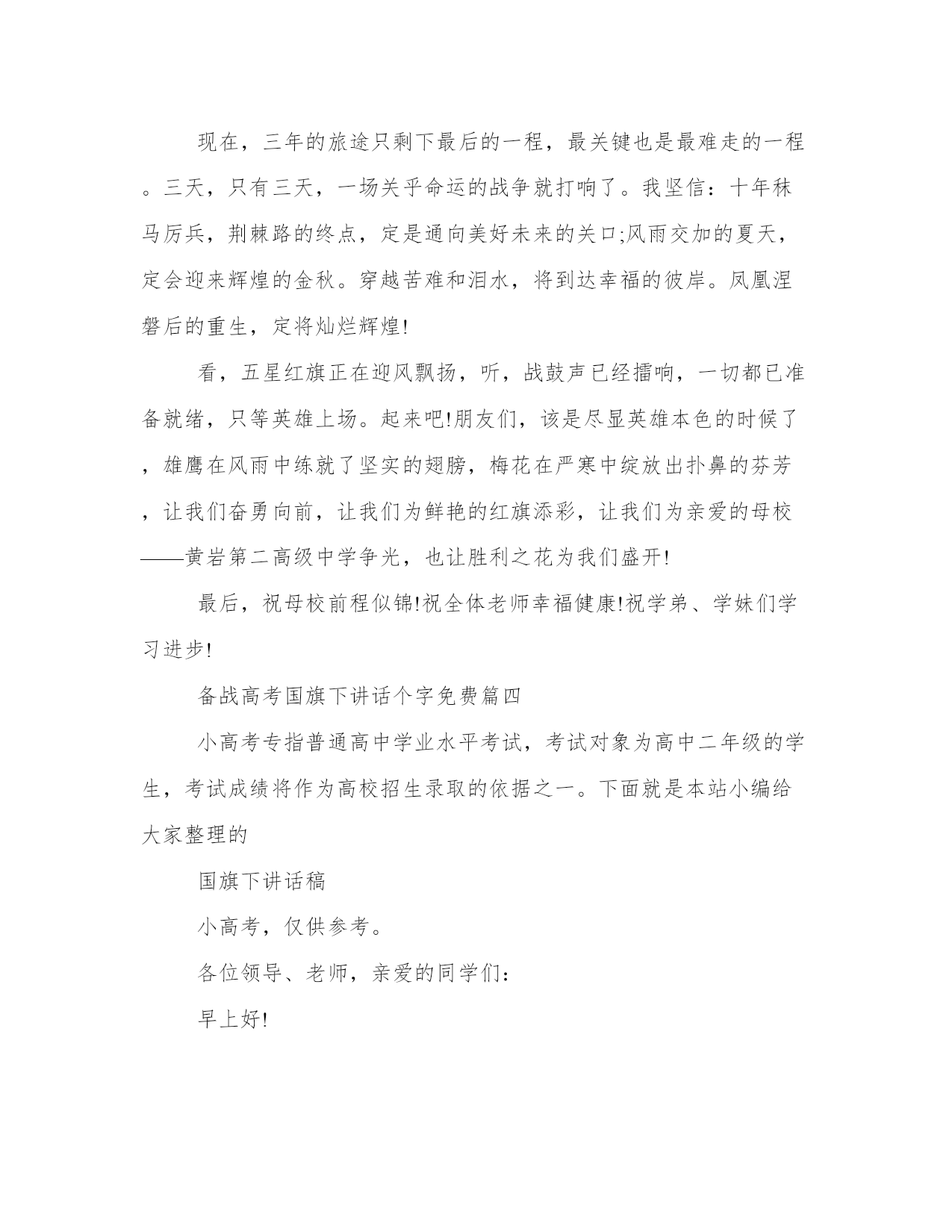 最新备战高考国旗下讲话个字免费(汇总9篇)
