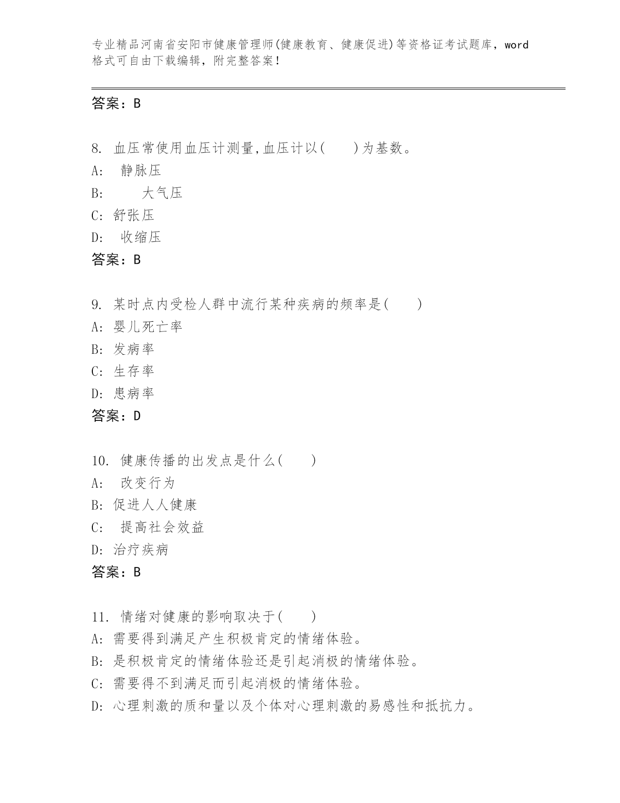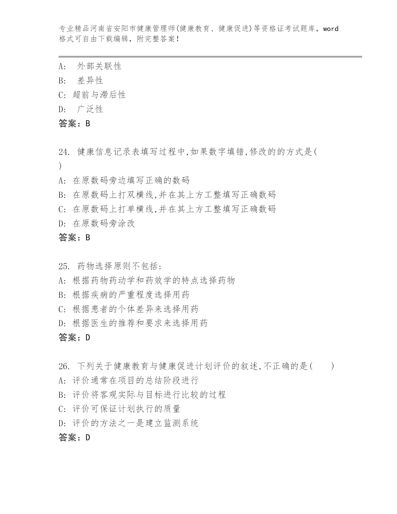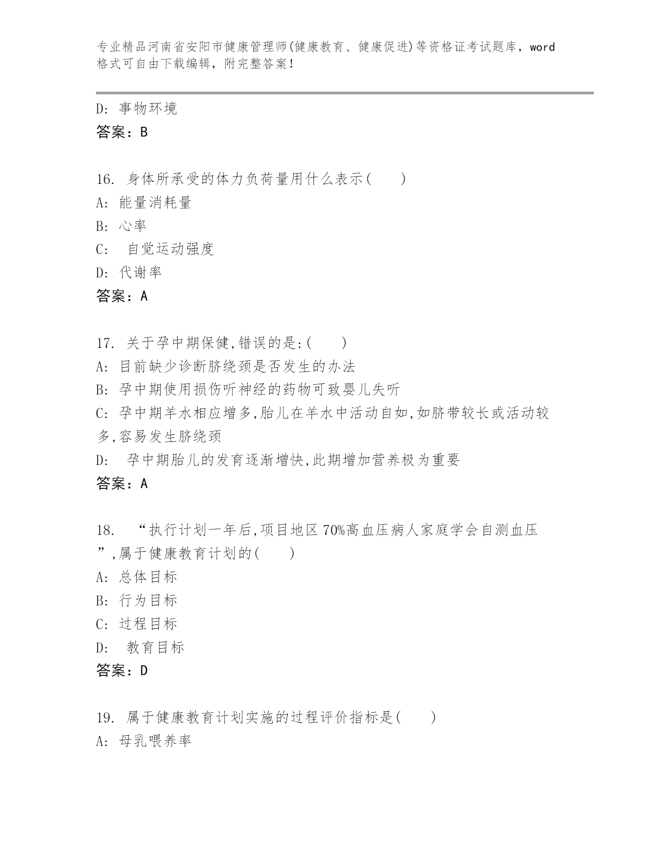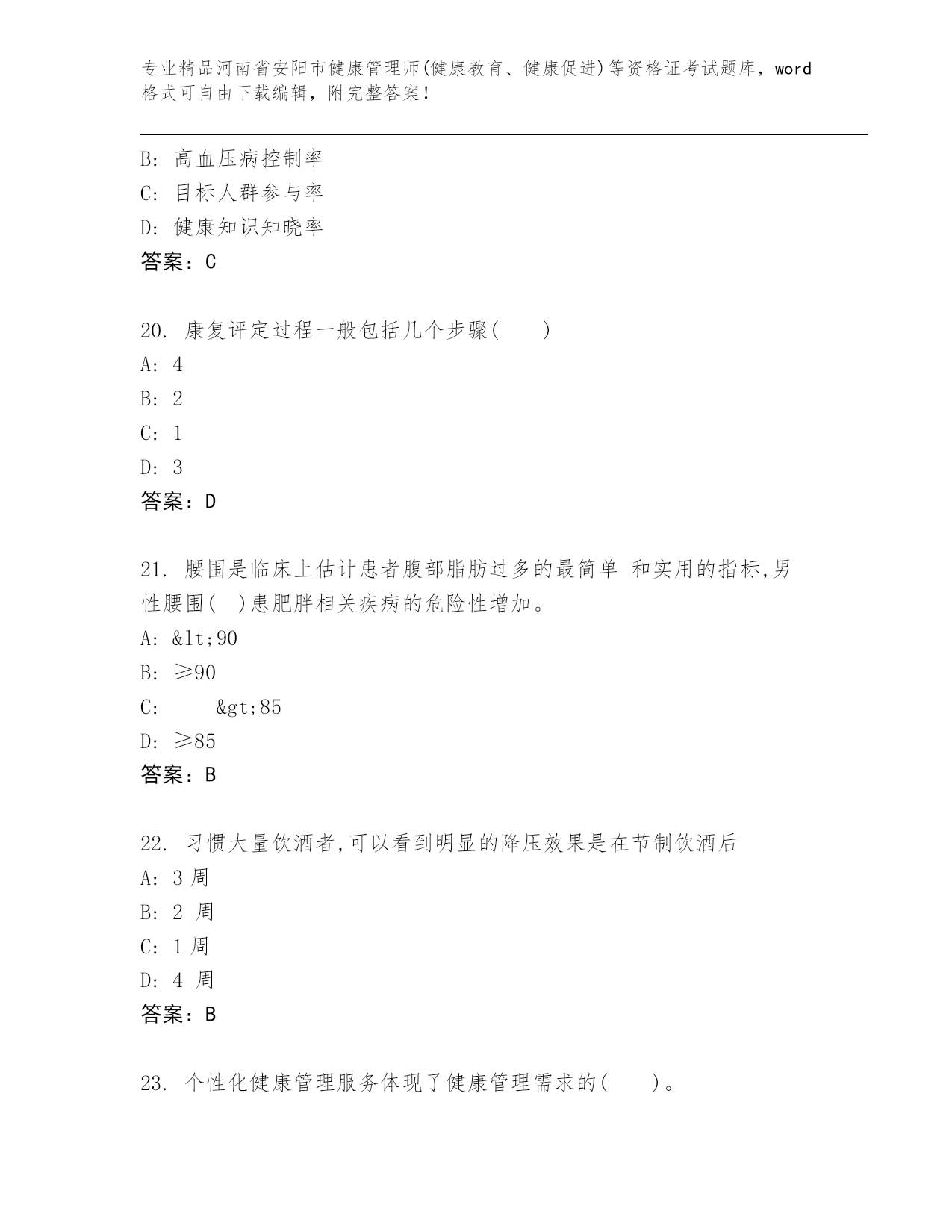 河南省安阳市健康管理师(健康教育、健康促进)等资格证考试附答案(满分必刷).docx