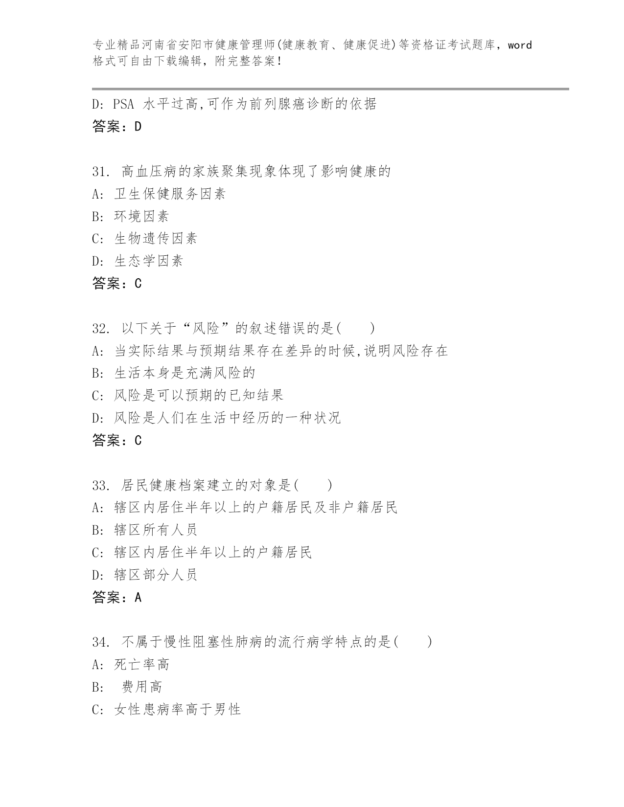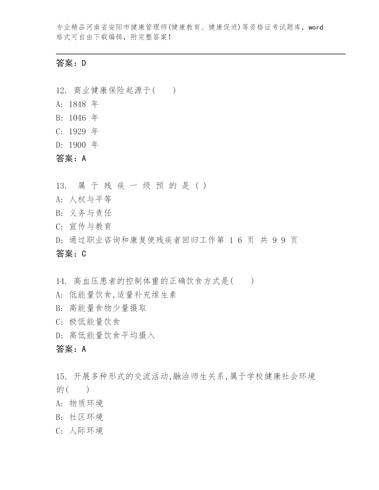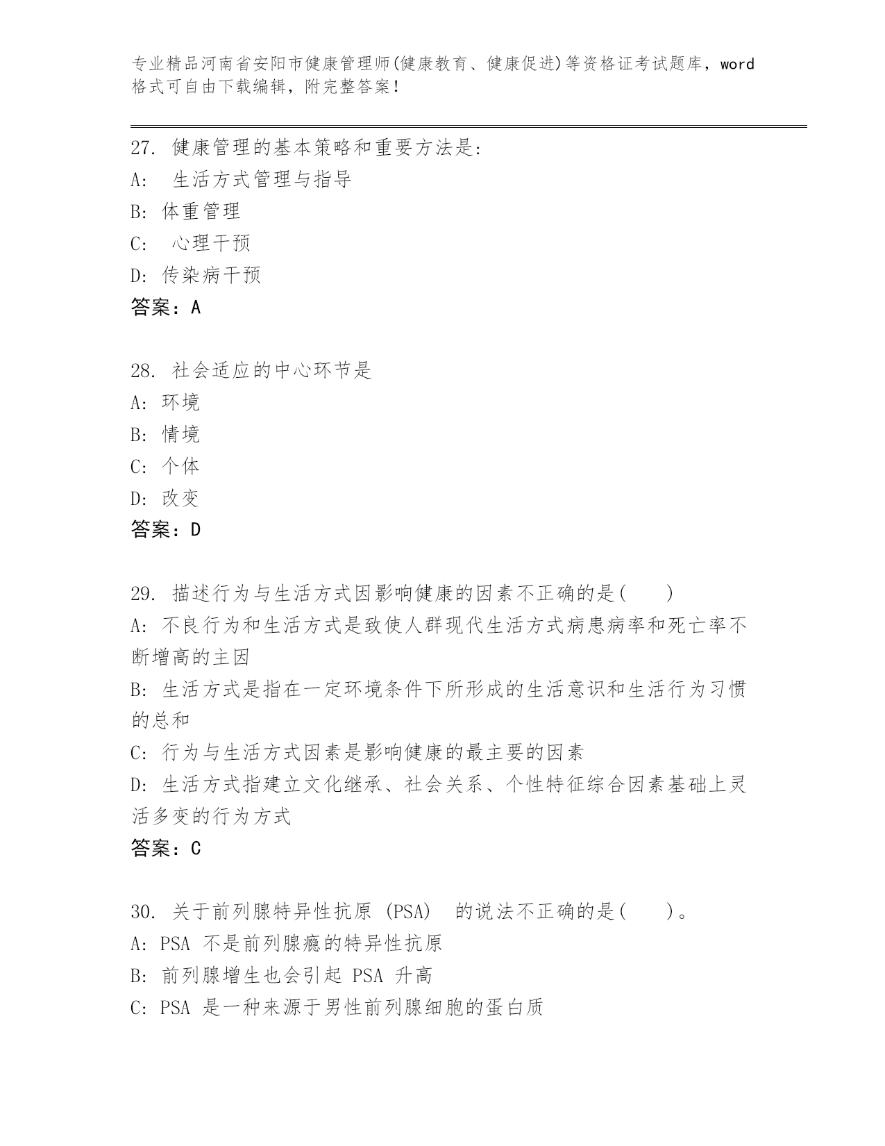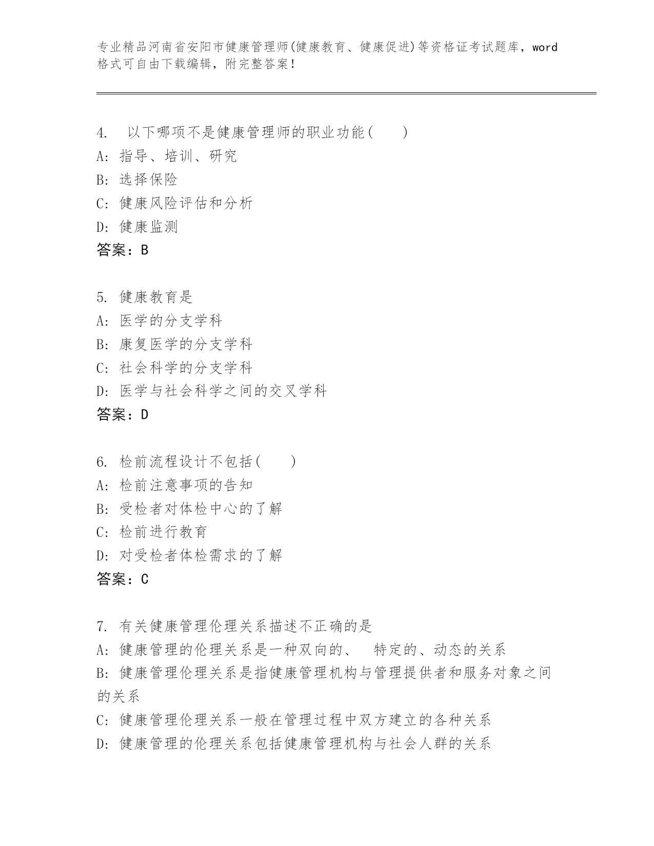 河南省安阳市健康管理师(健康教育、健康促进)等资格证考试附答案(满分必刷).docx