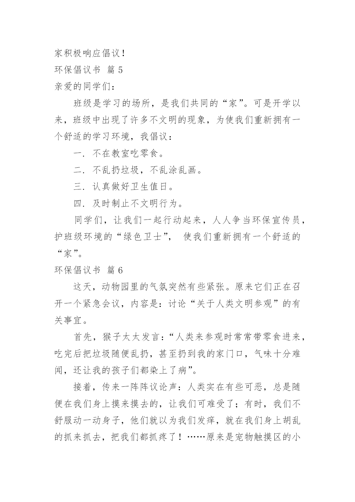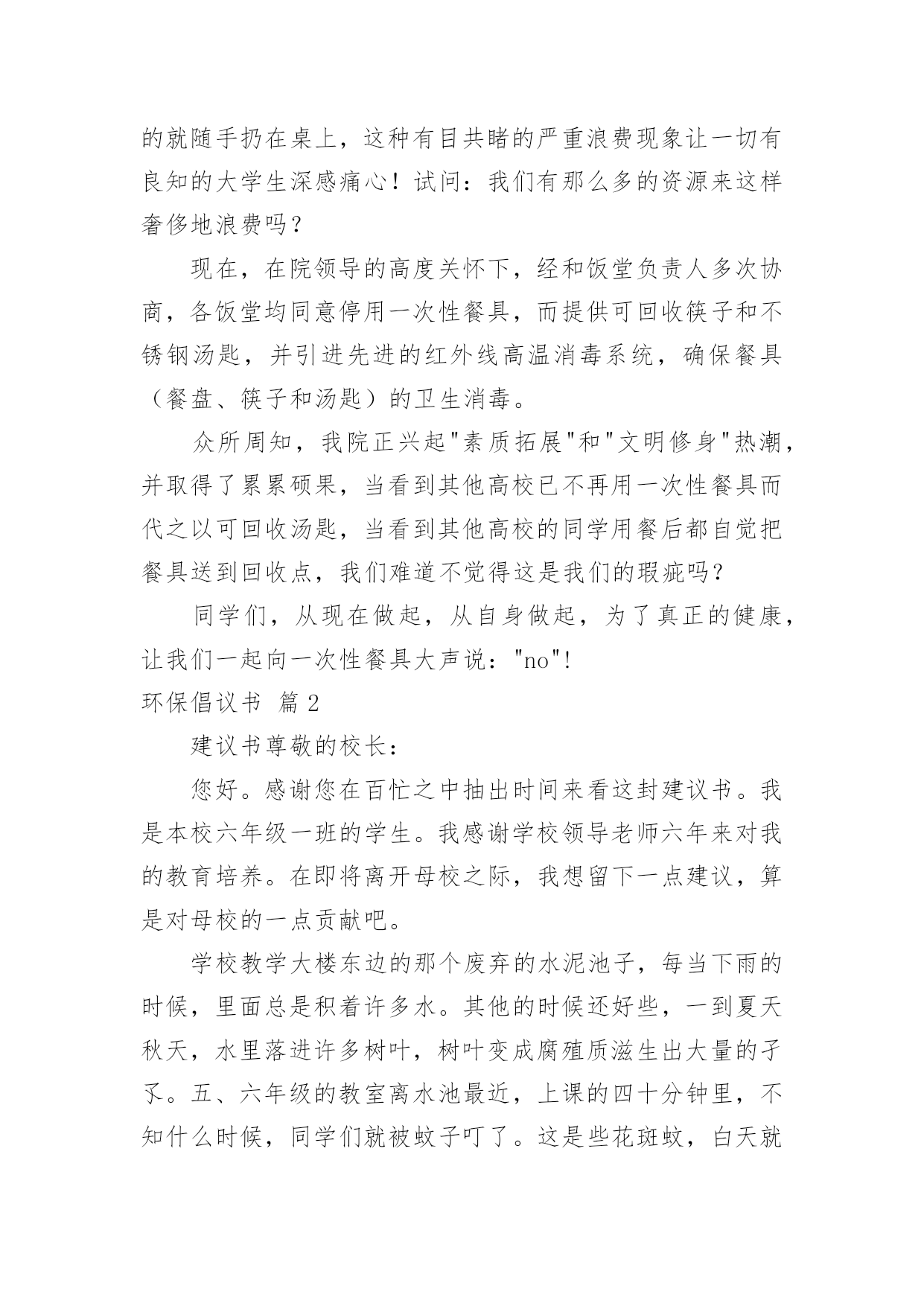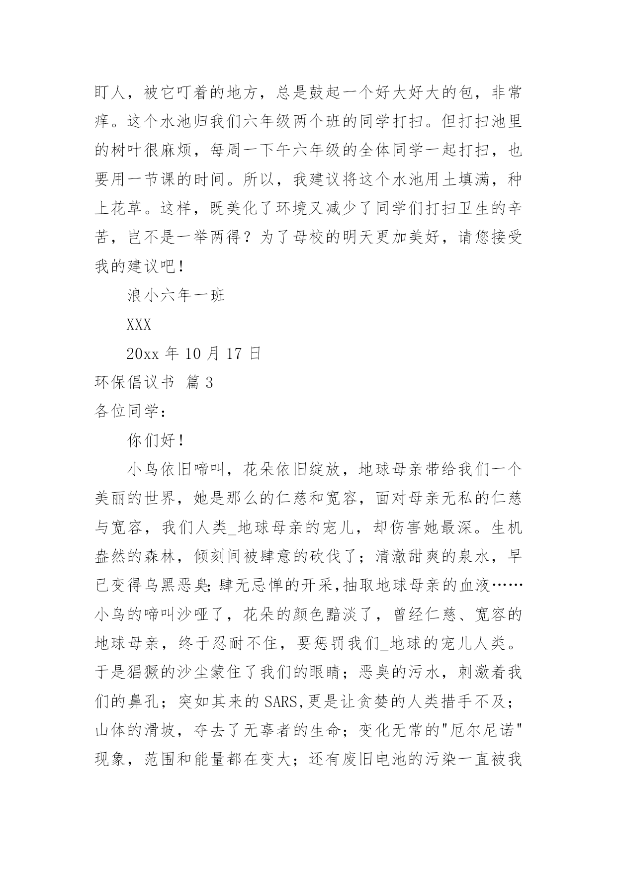 环保倡议书有关环保倡议书汇编9篇环保倡议书篇1亲爱的同学们:目前,广州所有的高校基本都已停用一次性餐具。配合相应的消毒措施,使用可回收餐具(不锈钢餐盘汤匙和筷子),这既能确保真正的卫生和健康,也是大学生良好素质的重要体现。为什么我们要向一次性餐具说"不"呢?一、一次性卫生筷子并不卫生据调查,目前市面上许多一次性筷子根本就没有经过任何消毒,外包装又相当低劣,自然免不了运输过程中的脏上加脏了!二、一次性汤匙也不卫生一次性汤匙同样是消毒不过关,包装也不规范。三、一次性餐具造成巨大的环境破坏据保守统计,我们每人每天至少要用掉两双一次性筷子,全院六千多名学生,那么我们两个月就可以吃掉一个番职院的树木!而树木虽然是可再生资源,其再生周期却长达数年,甚至几十年。至于一次性汤匙造成的白色污染,更是几十年都难消除。我们是不是该认真想想:我们用不用为子孙后代负责?地球,毕竟只有一个!四、一次性餐具造成严重的浪费一些同学用餐时,一次要拿几双筷子、几个汤匙,多余的就随手扔在桌上,这种有目共睹的严重浪费现象让一切有良知的大学生深感痛心!试问:我们有那么多的资源来这样奢侈地浪费吗?现在,在院领导的高度关怀下,经和饭堂负责人多次协商,各饭堂均同意停用一次性餐具,而提供可回收筷子和不锈钢汤匙,并引进先进的红外线高温消毒系统,确保餐具(餐盘、筷子和汤匙)的卫生消毒。众所周知,我院正兴起"素质拓展"和"文明修身"热潮,并取得了累累硕果,当看到其他高校已不再用一次性餐具而代之以可回收汤匙,当看到其他高校的同学用餐后都自觉把餐具送到回收点,我们难道不觉得这是我们的瑕疵吗?同学们,从现在做起,从自身做起,为了真正的健康,让我们一起向一次性餐具大声说:"no"!环保倡议书篇2建议书尊敬的校长:您好。感谢您在百忙之中抽出时间来看这封建议书。我是本校六年级一班的学生。我感谢学校领导老师六年来对我的教育培养。在即将离开母校之际,我想留下一点建议,算是对母校的一点贡献吧。学校教学大楼东边的那个废弃的水泥池子,每当下雨的时候,里面总是积着许多水。其他的时候还好些,一到夏天秋天,水里落进许多树叶,树叶变成腐殖质滋生出大量的孑孓。五、六年级的教室离水池最近,上课的四十分钟里,不知什么时候,同学们就被蚊子叮了。这是些花斑蚊,白天就盯人,被它叮着的地方,总是鼓起一个好大好大的包,非常痒。这个水池归我们六年级两个班的同学打扫。但打扫池里的树叶很麻烦,每周一下午六年级的全体同学一起打扫,也要用一节课的时间。所以,我建议将这个水池用土填满,种上花草。这样,既美化了环境又减少了同学们打扫卫生的辛苦,岂不是一举两得?为了母校的明天更加美好,请您接受我的建议吧!浪小六年一班XXX20xx年10月17日环保倡议书篇3各位同学:你们好!小鸟依旧啼叫,花朵依旧绽放,地球母亲带给我们一个美丽的世界,她是那么的仁慈和宽容,面对母亲无私的仁慈与宽容,我们人类_地球母亲的宠儿,却伤害她最深。生机盎然的森林,倾刻间被肆意的砍伐了;清澈甜爽的泉水,早已变得乌黑恶臭;肆无忌惮的开采,抽取地球母亲的血液……小鸟的啼叫沙哑了,花朵的颜色黯淡了,曾经仁慈、宽容的地球母亲,终于忍耐不住,要惩罚我们_地球的宠儿人类。于是猖獗的沙尘蒙住了我们的眼睛;恶臭的污水,刺激着我们的鼻孔;突如其来的SARS,更是让贪婪的人类措手不及;山体的滑坡,夺去了无辜者的生命;变化无常的"厄尔尼诺"现象,范围和能量都在变大;还有废旧电池的污染一直被我们忽略……朋友们,你们知道吗?一粒小小的纽扣电池弃入了大自然可以污染多少万升水吗?60万升水啊!这可是一个人一生的用水量,而我国每年要消耗这样的电池42亿只啊!一节五号电池可以污染一立方米的土地,一立方米的土地可以使7个人遭到重金属中毒,危害如此大,而中国每年要用各类电池近百亿节,可回收率不足1%.我们可以想了有多少电池被我们随意丢弃入大自然,它们可以污染多少水和土壤啊?朋友们,我们人类永远是最聪明的,我们已经觉悟,我们已开始制止我们的破坏行为,例如:欧美各国在经济上设置"绿色壁垒"抵制一切不合理的.以破坏环境来获取利益的产品,从而使一些国家制止继续破坏环境的行为,这无疑是一种积极的行为,可是在我们中国,多数人环保意识很淡薄,泱泱大中国,浩浩礼仪之邦,怎能落后于世界环保浪潮呢?为了保护我们的家园,我们倡议:1、大家行动起来,勇于同破坏环境,破坏生态的行为作斗争!2、少用甚至不用一次性饭盒、方便袋,不用一次性筷子等。3、节约每一滴水,每一度电,用好每一滴水,每一度电。4、大家要把自己身边的每节旧电池回收起来,再处理。重视环保,从你我做起!朋友们,行动起来吧!你我能力有限,但你我的心无限。环保倡议书篇4环境是我们人类生存的必要条件。在社会发展,科技进步的今天,人们已经越来越重视环保,渴望一个干净,健康,环保