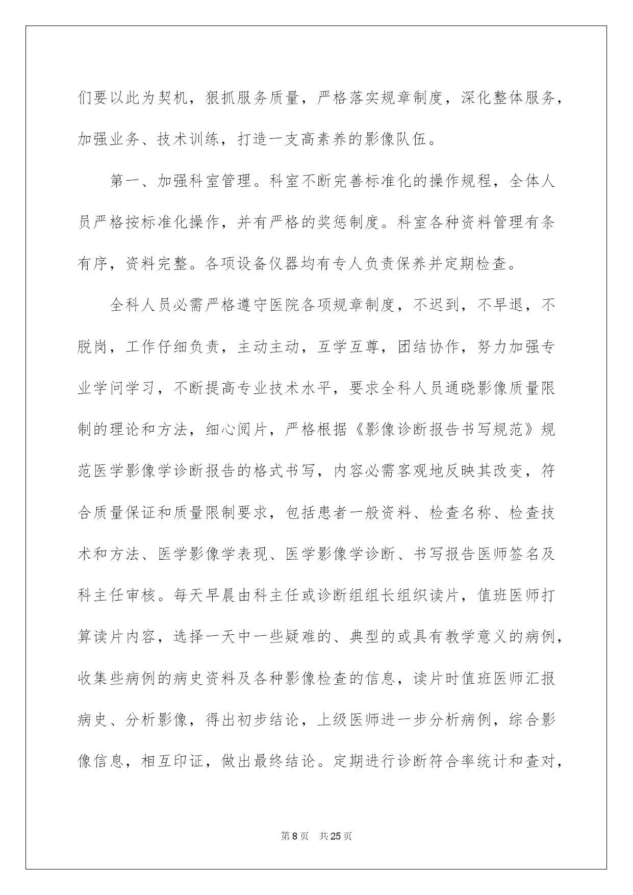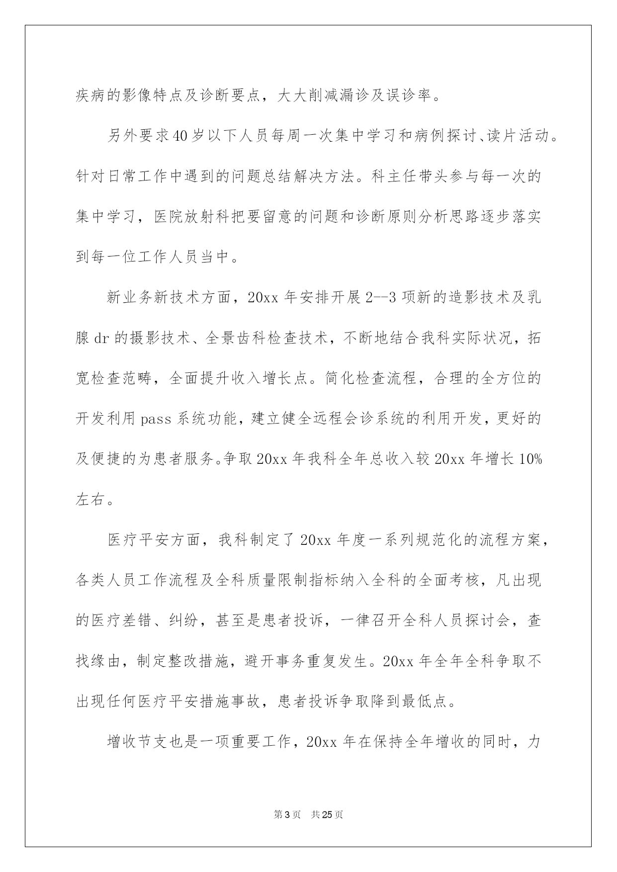 第PAGE\*Arabic\*MERGEFORMAT25页共NUMPAGES\*Arabic\*MERGEFORMAT25页第PAGE\*MERGEFORMAT25页共NUMPAGES\*MERGEFORMAT25页第PAGE\*MERGEFORMAT25页共NUMPAGES\*MERGEFORMAT25页第PAGE\*MERGEFORMAT25页共NUMPAGES\*MERGEFORMAT25页第PAGE\*MERGEFORMAT25页共NUMPAGES\*MERGEFORMAT25页第PAGE\*MERGEFORMAT25页共NUMPAGES\*MERGEFORMAT25页第PAGE\*MERGEFORMAT25页共NUMPAGES\*MERGEFORMAT25页第PAGE\*MERGEFORMAT25页共NUMPAGES\*MERGEFORMAT25页第PAGE\*MERGEFORMAT25页共NUMPAGES\*MERGEFORMAT25页第PAGE\*MERGEFORMAT25页共NUMPAGES\*MERGEFORMAT25页第PAGE\*MERGEFORMAT25页共NUMPAGES\*MERGEFORMAT25页2022医院放射科工作计划医院放射科工作安排时间的脚步是无声的,它在不经意间消逝,我们又将接触新的学问,学习新的技能,积累新的阅历,现在的你想必不是在做安排,就是在打算做安排吧。什么样的安排才是好的安排呢?下面是我为大家整理的医院放射科工作安排,仅供参考,欢迎大家阅读。医院放射科工作安排120xx年是我院创建区域性名院及三级医院关键的一年,放射科全体人员愿与院部的中心工作保持高度一样,加强人才培育,提高业务技能,更新设备,加强医德医风建设,不断提高文化素养,保证成功完成院部下达的各项工作目标任务。下面就是一年的工作安排:一、科室管理方面20xx年我科着重加强两方面工作。一是质量建设:包括图像质量和诊断质量及服务质量。这方面的工作重点是把人员分成两个专业组。一个技术组,负责科室的图像质量的采集、储存、传输及整改提高;另一个是诊断组,主要负责科室的诊断报告的书写以及质量的提高。两个专业组分别由组长负责统计和收集每月的质量限制指标的汇总以及各项整改措施的探讨分析,由科主任详细制定下一步的整改方案。二是文化建设:逐步打造团结和谐的整体科室队伍,不断提高人文素养和大局观念,加强职业道德内涵建设,建立互学互帮,以院为家,院荣我荣,以此提高整体科室形象。主动参与院部各项文化活动,党员和青年志愿者起模范带头作用,树立良好的职业价值观,为我院的精神文明建设做出贡献。二、业务发展安排20xx年也是我科持续发展关键的一年。面临着人员结构老化,部分设备须要更新,新业务新技术须要突破发展等众多发展瓶颈问题。首先加强人才培育安排工作。把人才引进,高层次引进;人才培育,高层次培育作为科室发展的重点工作。实行请进来(把优秀专家请进来),送出去(科室业务骨干送出去培育)的方法,不断提高业务技能。加强专业理论学问的学习和深造,接着开展科室内业务串讲活动,要求每个人每年至少两次备课,进行业务串讲学习。注意本专业的常见病,多发病开展探讨和分析。要求40岁以下人员人人娴熟驾驭该类疾病的影像特点及诊断要点,大大削减漏诊及误诊率。另外要求40岁以下人员每周一次集中学习和病例探讨、读片活动。针对日常工作中遇到的问题总结解决方法。科主任带头参与每一次的集中学习,医院放射科把要留意的问题和诊断原则分析思路逐步落实到每一位工作人员当中。新业务新技术方面,20xx年安排开展2--3项新的造影技术及乳腺dr的摄影技术、全景齿科检查技术,不断地结合我科实际状况,拓宽检查范畴,全面提升收入增长点。简化检查流程,合理的全方位的开发利用pass系统功能,建立健全远程会诊系统的利用开发,更好的及便捷的为患者服务。争取20xx年我科全年总收入较20xx年增长10%左右。医疗平安方面,我科制定了20xx年度一系列规范化的流程方案,各类人员工作流程及全科质量限制指标纳入全科的全面考核,凡出现的医疗差错、纠纷,甚至是患者投诉,一律召开全科人员探讨会,查找缘由,制定整改措施,避开事务重复发生。20xx年全年全科争取不出现任何医疗平安措施事故,患者投诉争取降到最低点。增收节支也是一项重要工作,20xx年在保持全年增收的同时,力求节约水、电、卫生材料的消耗;加强设备平常的维护保养,削减故障发生率,保障设备的正常运行,维持正常的工作及患者就医秩序。三、设备添置安排为协作我院乳腺病科的成立及口腔科工作的开展,20xx年需增加乳腺dr