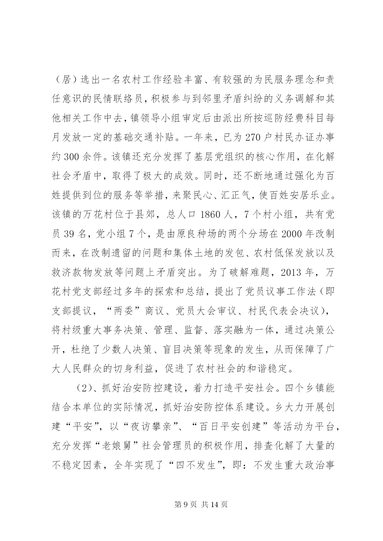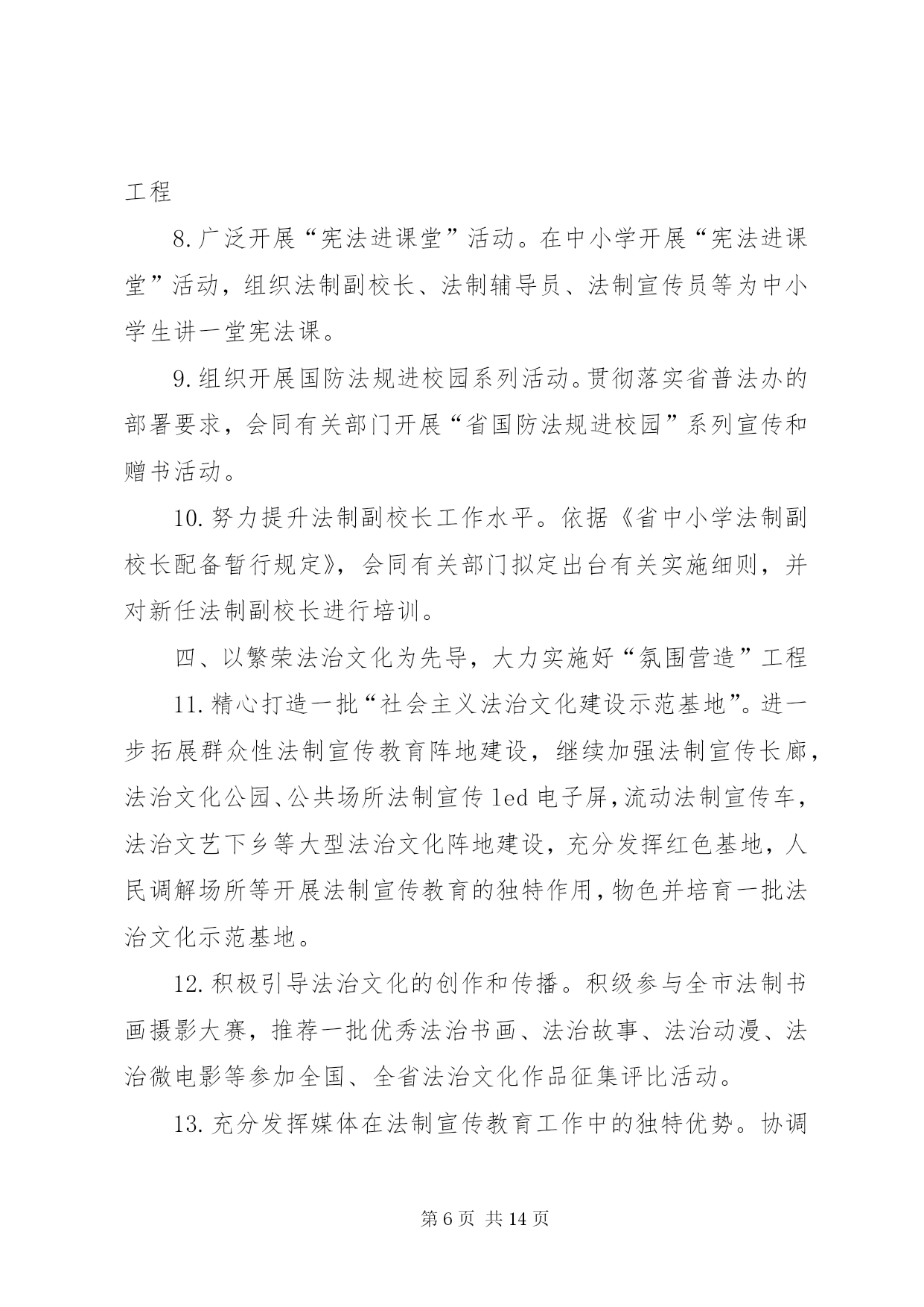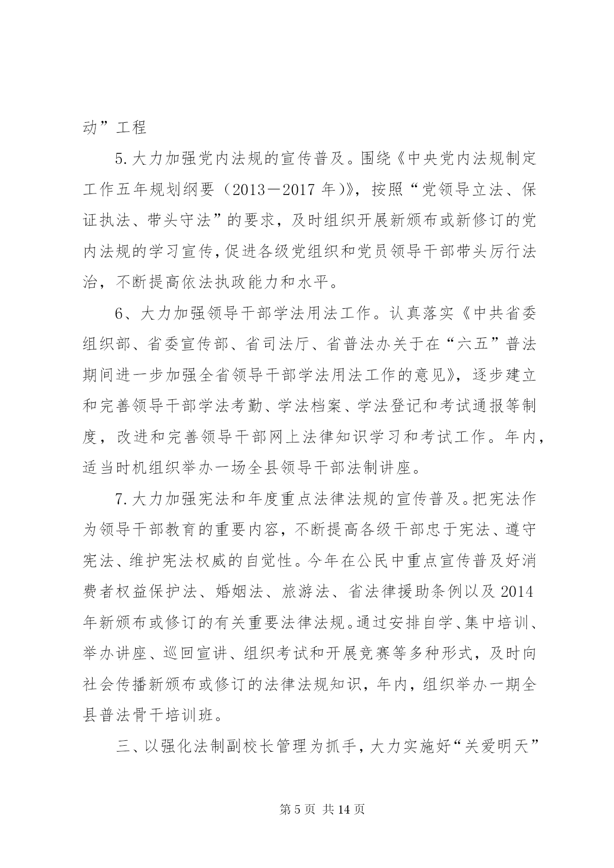 第PAGE\*Arabic\*MERGEFORMAT14页共NUMPAGES\*MERGEFORMAT14页司法行政基层工作要点3篇第一篇2014年,全县司法行政基层工作要全面贯彻落实全省司法行政工作会议、全市政法工作会议精神,坚持以党委政府工作大局为重,认真扎实履行职责,充分发挥司法行政基层工作在社会管理中的积极作用,重点做好以下工作。一、进一步加强司法所规范化建设,全面夯实基层基础1.继续推进“五好司法所”规范化达标创建工作。以“五好司法所”考评标准为抓手,重点做好工作督查、调研指导,全面、深入、持久地提升司法所规范化建设水平。2.加强基础工作管理。提高司法所台账资料管理水平,规范数据统计,按上级要求及时做好信息报送工作。推进信息化在基层业务管理中的应用。3.积极争取党委政府重视,进一步解决司法所人员不足问题,充实基层工作力量。4.积极输送司法所所长参加上级部门的培训班,对司法所长进行业务培训,提高管理司法所的能力水平。二、进一步加强人民调解规范化建设,注重发挥职能5.抓好人民调解组织规范化建设。全面贯彻落实《全市人民调解规范化建设现场推进会》精神,重点抓好村(居、社区)人民调解组织规范化建设,改善办公条件,健全调解场所,规范办案流程,完善调解案件档案,做到“六有”:有牌子、有印章、有调解室、有台帐、有人民调解徽章、有调解队伍,并有效发挥职能,真正起到化解矛盾、维护和谐的第一道防线作用。6.抓好人民调解经费保障工作。按照《XX省省级人民调解专项资金管理暂行办法》和市局下发的《XX市人民调解经费使用指导意见(试行)》的要求,争取解决落实本级人民调解经费。7.抓好《金牌调解》工作。积极配合《金牌调解》案例选题工作,每个司法所要为《金牌调解》提供2个以上优质的案源,确保案例的多样性、示范性和教育性。积极配合做好《金牌调解》团队开展的外采活动。8.抓好行业性专业性人民调解工作。继续做好医患纠纷、交通事故、劳动争议等领域的人民调解工作。重点探索在县级建立保险合同纠纷人民调解委员会,化解辖区内保险合同纠纷。鼓励成立以调解员个人或工作特色命名的人民调解工作室,创新人民调解化解矛盾纠纷的方式方法,筑牢社会稳定的第一道防线。9.抓好人民调解信息化建设工作。根据省厅试点情况,积极做好人民调解信息化建设工作。三、进一步加强基层法律服务工作管理,做到奖惩分明10.做好年检注册工作。5月份之前按要求完成一年一度的基层法律服务所和基层法律服务工作者的年检注册工作。11.做好表彰先进工作。根据省厅的有关要求,开展表彰活动,表彰一批优秀基层法律服务所和优秀基层法律服务工作者,弘扬正气,树立典型。12.做好违纪查处工作。对违法违纪的基层法律服务所及人员,及时督办,从严查处,整改到位。13.抓好财务管理工作,严格实行“收支两条线”、报帐制。14.建立发展基金制度。各所必须搞好积累,其积累分为“两大块”,一块为事业发展基金,此块积累额由县局集中调配使用。各所应缴纳的事业发展基金数为:等7个所分别为3500元。另一块为社会保障等项基金,此块积累额为各所所有收费数的10%,主要用于业务培训、办公设施、养老保险等项支出,其使用权归各所,但具体使用时,必须由各所写出书面申请,经基层股审核报县局领导批准后,方可使用。此两块积累由基层股逐月从各所收费数中提取。第二篇2014年,全县普法依法治理工作要认真贯彻党的十八大、十八届三中全会以及省委十三届八次全会、市委三届六次全体(扩大)会议精神,按照省普法办的部署安排,紧紧围绕全县经济社会发展总体布局,紧密结合各部门、各单位工作实际,大力实施好以下“六项工程”:一、以贯彻党的十八届三中全会精神为主线,大力实施好“普法惠民”工程1.健全完善社会普法教育机制。进一步强化和落实普法依法治理工作组织领导、责任分工、协调配合、工作保障、考核评价等机制和制度建设,有效整合部门、行业、社会组织和基层单位等各方面资源,促进普法依法治理工作由政府推动逐步向社会能动转变,逐步建立健全科学化、常态化的社会普法教育机制。2.强化落实专业法部门的普法责任。贯彻落实《省法制宣传教育工作条例》,指导、支持、督促各级专业法主管部门在负责抓好本部门学法用法工作的同时,通过开展法制宣传月、周、日等形式,按照“谁执法谁普法”的原则,积极面向社会集中开展本部门专业法律法规的宣传教育。3.广泛开展“法律六进”活动。按照“六五”普法规划的要求,配齐配强专职普法教育工作者队伍,健全充实普法讲师团、法制副校长、法制宣传员等社会普法志愿者队伍,并充分发挥其扎根基层、熟悉法律、知晓民情的作用,广泛开展“法律六进”活动。4.积极开展专项依法治理活动。注重抓住重点地区整治、食品药品安全、生态环境保护、特殊人群管理等群众关心的热点、难点问题开展专项依法治理活动