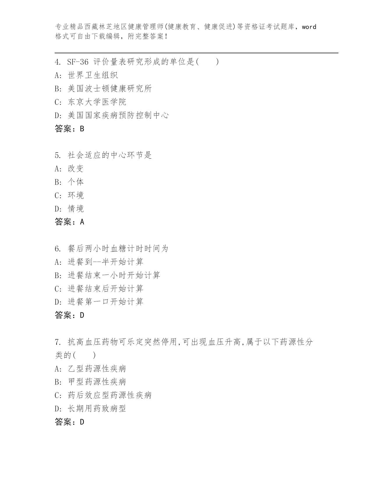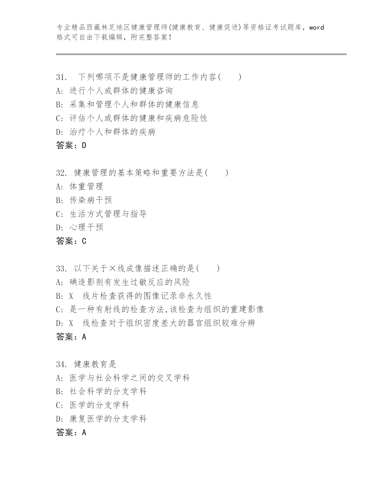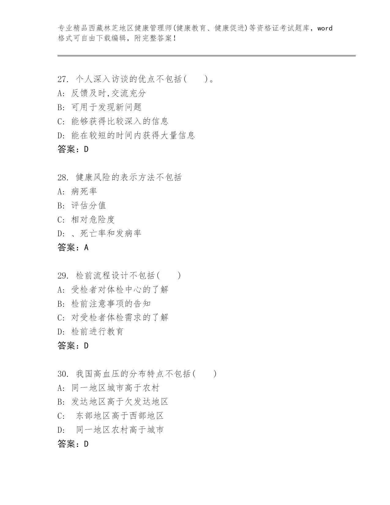 精编西藏林芝地区健康管理师(健康教育、健康促进)等资格证考试精品题库(轻巧夺冠)