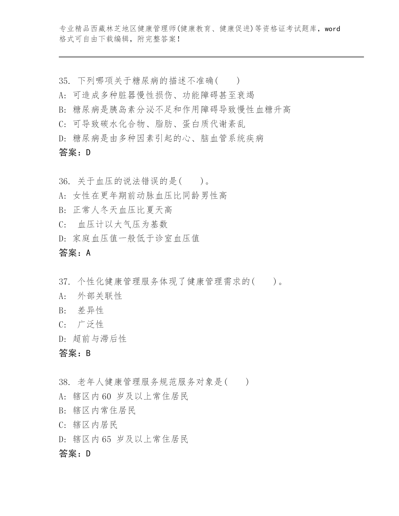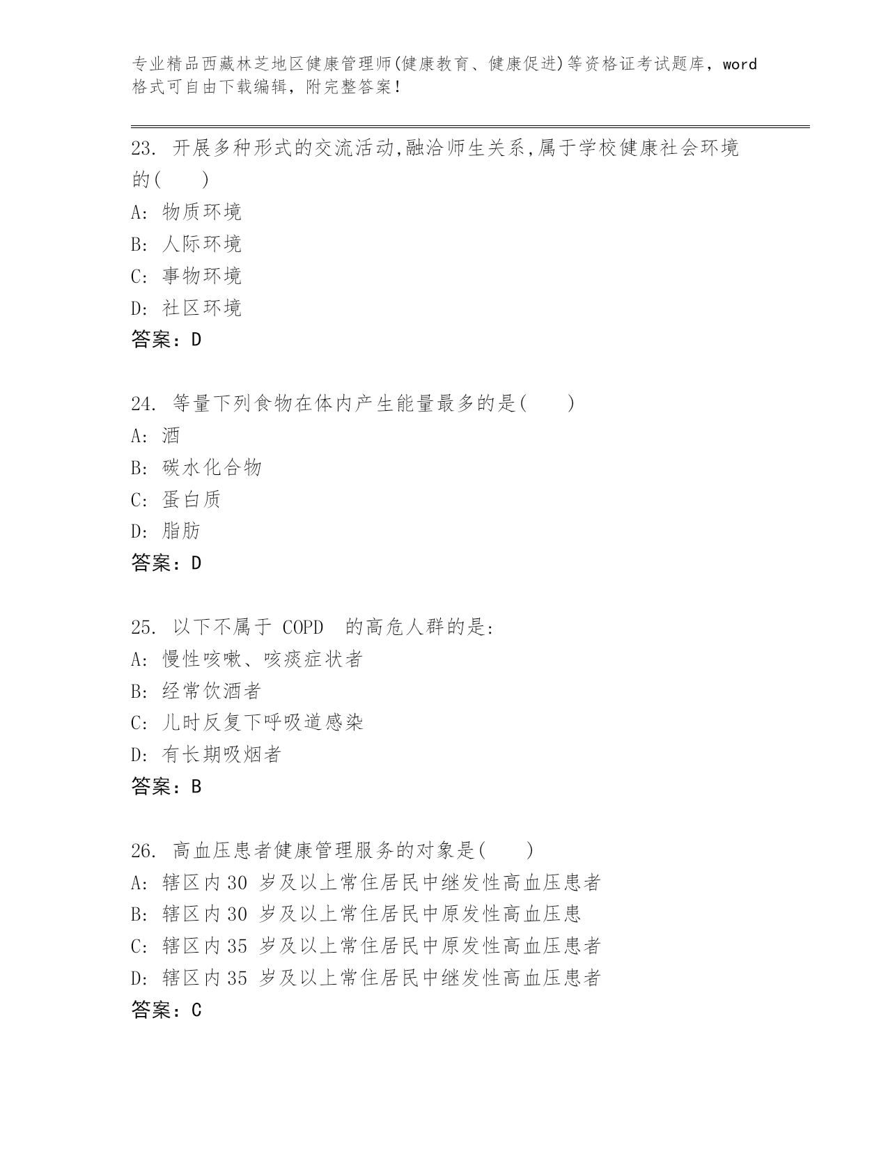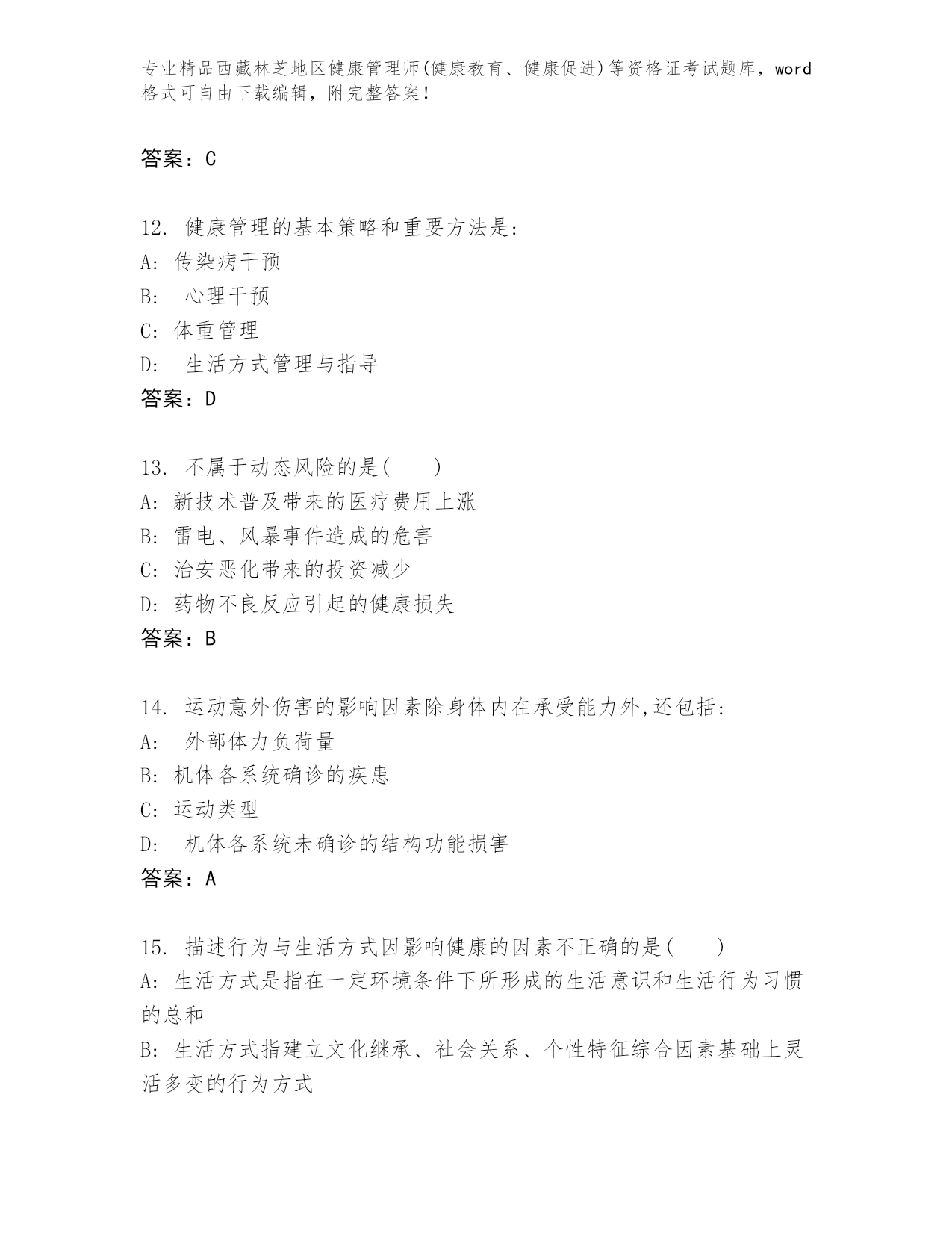 精编西藏林芝地区健康管理师(健康教育、健康促进)等资格证考试精品题库(轻巧夺冠).docx