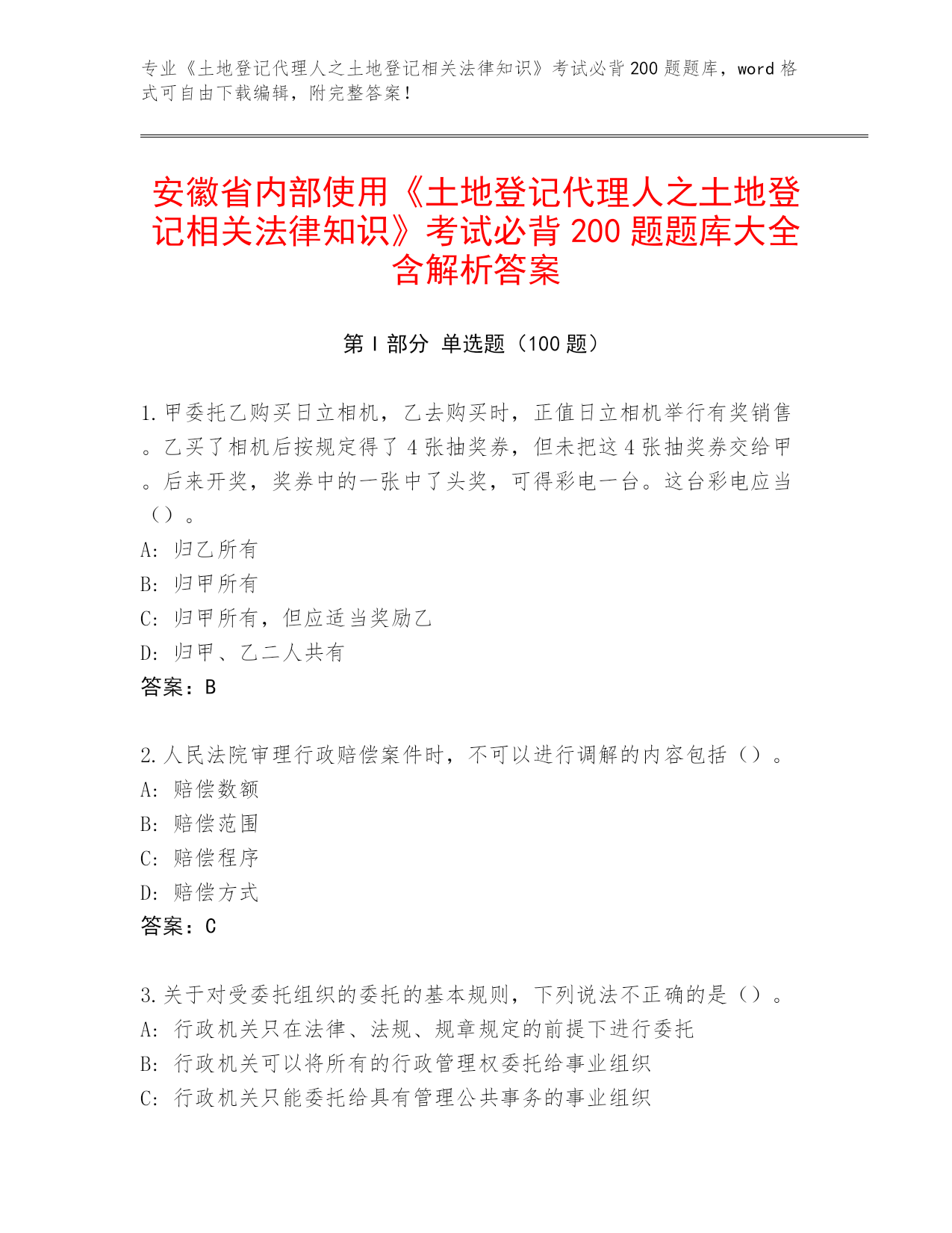 安徽省内部使用《土地登记代理人之土地登记相关法律知识》考试必背200题题库大全含解析答案.docx