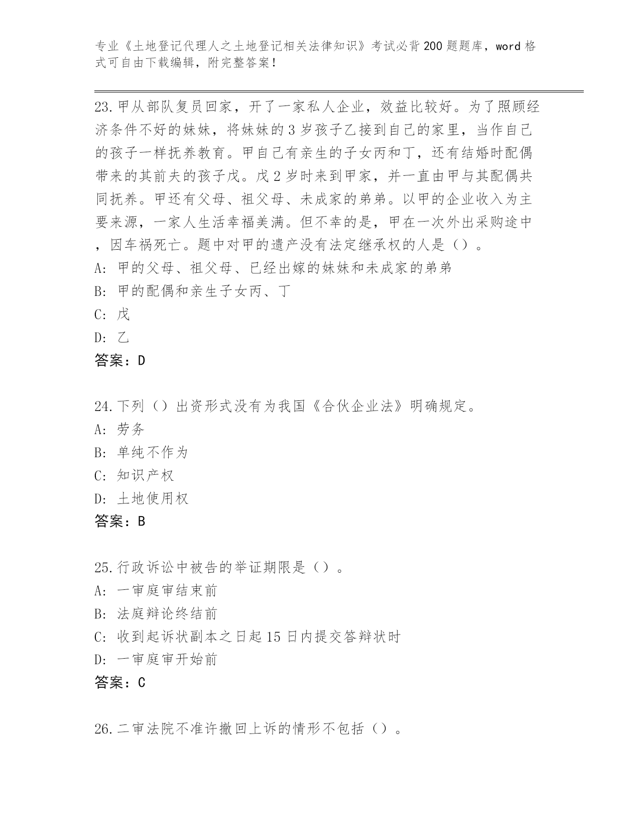 2024年江西省新干县《土地登记代理人之土地登记相关法律知识》资格考试必刷200题题库(突破训练)
