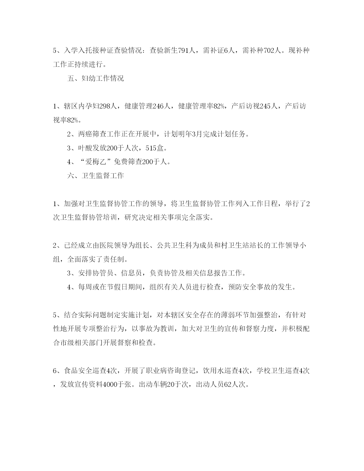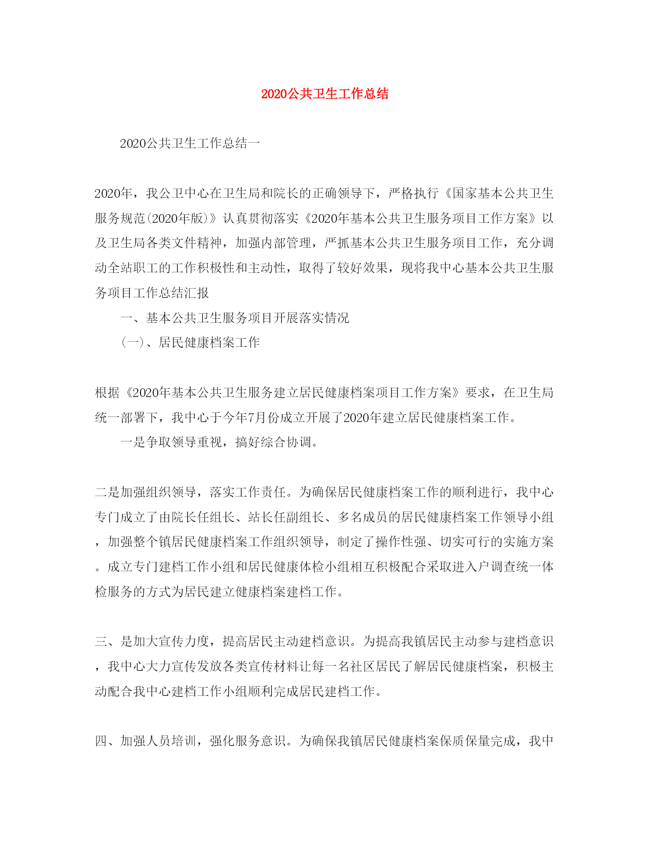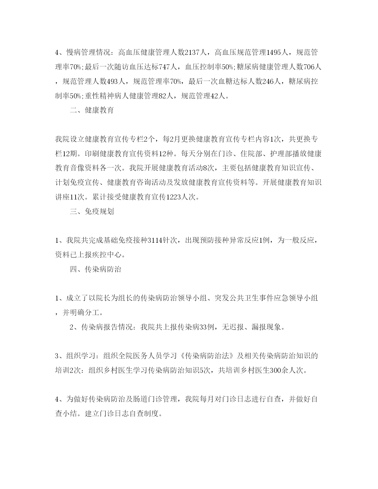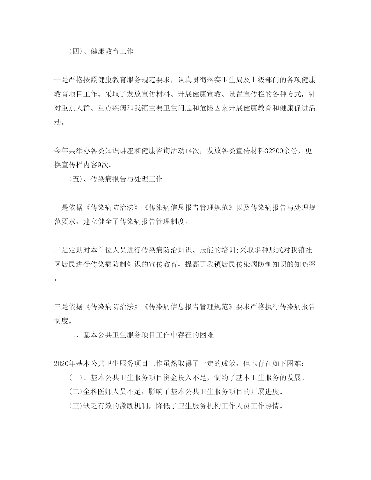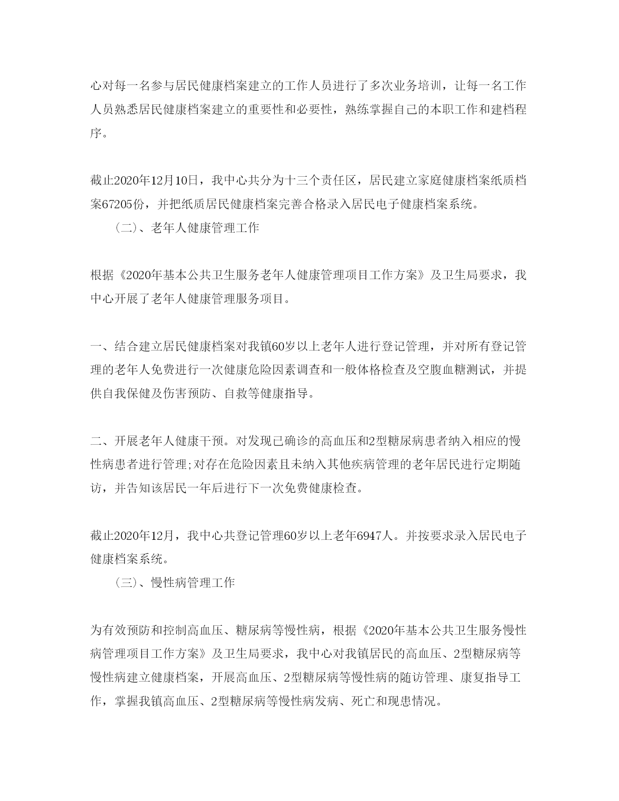 此资料由网络收集而来,如有侵权请告知上传者立即删除。资料共分享,我们负责传递知识。2020公共卫生工作总结2020公共卫生工作总结一2020年,我公卫中心在卫生局和院长的正确领导下,严格执行《国家基本公共卫生服务规范(2020年版)》认真贯彻落实《2020年基本公共卫生服务项目工作方案》以及卫生局各类文件精神,加强内部管理,严抓基本公共卫生服务项目工作,充分调动全站职工的工作积极性和主动性,取得了较好效果,现将我中心基本公共卫生服务项目工作总结汇报一、基本公共卫生服务项目开展落实情况(一)、居民健康档案工作根据《2020年基本公共卫生服务建立居民健康档案项目工作方案》要求,在卫生局统一部署下,我中心于今年7月份成立开展了2020年建立居民健康档案工作。一是争取领导重视,搞好综合协调。二是加强组织领导,落实工作责任。为确保居民健康档案工作的顺利进行,我中心专门成立了由院长任组长、站长任副组长、多名成员的居民健康档案工作领导小组,加强整个镇居民健康档案工作组织领导,制定了操作性强、切实可行的实施方案。成立专门建档工作小组和居民健康体检小组相互积极配合采取进入户调查统一体检服务的方式为居民建立健康档案建档工作。三、是加大宣传力度,提高居民主动建档意识。为提高我镇居民主动参与建档意识,我中心大力宣传发放各类宣传材料让每一名社区居民了解居民健康档案,积极主动配合我中心建档工作小组顺利完成居民建档工作。四、加强人员培训,强化服务意识。为确保我镇居民健康档案保质保量完成,我中心对每一名参与居民健康档案建立的工作人员进行了多次业务培训,让每一名工作人员熟悉居民健康档案建立的重要性和必要性,熟练掌握自己的本职工作和建档程序。截止2020年12月10日,我中心共分为十三个责任区,居民建立家庭健康档案纸质档案67205份,并把纸质居民健康档案完善合格录入居民电子健康档案系统。(二)、老年人健康管理工作根据《2020年基本公共卫生服务老年人健康管理项目工作方案》及卫生局要求,我中心开展了老年人健康管理服务项目。一、结合建立居民健康档案对我镇60岁以上老年人进行登记管理,并对所有登记管理的老年人免费进行一次健康危险因素调查和一般体格检查及空腹血糖测试,并提供自我保健及伤害预防、自救等健康指导。二、开展老年人健康干预。对发现已确诊的高血压和2型糖尿病患者纳入相应的慢性病患者进行管理;对存在危险因素且未纳入其他疾病管理的老年居民进行定期随访,并告知该居民一年后进行下一次免费健康检查。截止2020年12月,我中心共登记管理60岁以上老年6947人。并按要求录入居民电子健康档案系统。(三)、慢性病管理工作为有效预防和控制高血压、糖尿病等慢性病,根据《2020年基本公共卫生服务慢性病管理项目工作方案》及卫生局要求,我中心对我镇居民的高血压、2型糖尿病等慢性病建立健康档案,开展高血压、2型糖尿病等慢性病的随访管理、康复指导工作,掌握我镇高血压、2型糖尿病等慢性病发病、死亡和现患情况。1、高血压患者管理一是通过开展35岁及以上居民首诊测血压;居民诊疗过程测血压;健康体检测血压;和健康档案建立过程中询问等方式发现高血压患者。二是对确诊的高血压患者进行登记管理,并提供面对面随访,每次随访询问病情、测量血压,对用药、饮食、运动、心理等提供健康指导。三是对已经登记管理的高血压患者进行一次免费的健康体检(含一般体格检查和随机血糖测试)。截止12月,我中心共登记管理并提供随访高血压患者为4326人。并按要求录入居民电子健康档案系统。2、2型糖尿病患者管理一是通过健康体检和高危人群筛查检测血糖;建立居民健康档案过程中询问等方式发现患者。二是对确诊的2型糖尿病患者进行登记管理,并提供面对面随访,每次随访要询问病情、进行空腹血糖和血压测量等检查,对用药、饮食、运动、心理等提供健康指导。三是对已经登记管理的2型糖尿病患者进行一次免费健康体检(含一般体格检查和空腹血糖测试)。截止12月,我中心共登记管理并提供随访的糖尿病患者为1863人。并按要求录入居民电子健康档案系统。(四)、健康教育工作一是严格按照健康教育服务规范要求,认真贯彻落实卫生局及上级部门的各项健康教育项目工作。采取了发放宣传材料、开展健康宣教、设置宣传栏的各种方式,针对重点人群、重点疾病和我镇主要卫生问题和危险因素开展健康教育和健康促进活动。今年共举办各类知识讲座和健康咨询活动14次,发放各类宣传材料32200余份,更换宣传栏内容9次。(五)、传染病报告与处理工作一是依据《传染病防治法》《传染病信息报告管理规范》以及传染病报告与处理规范要求,建立健全了传染病报告管理制度。二是定期对本单位人员进行传染病防治知识、技能的培训;采取多种形式对我镇社区居民进行传染
