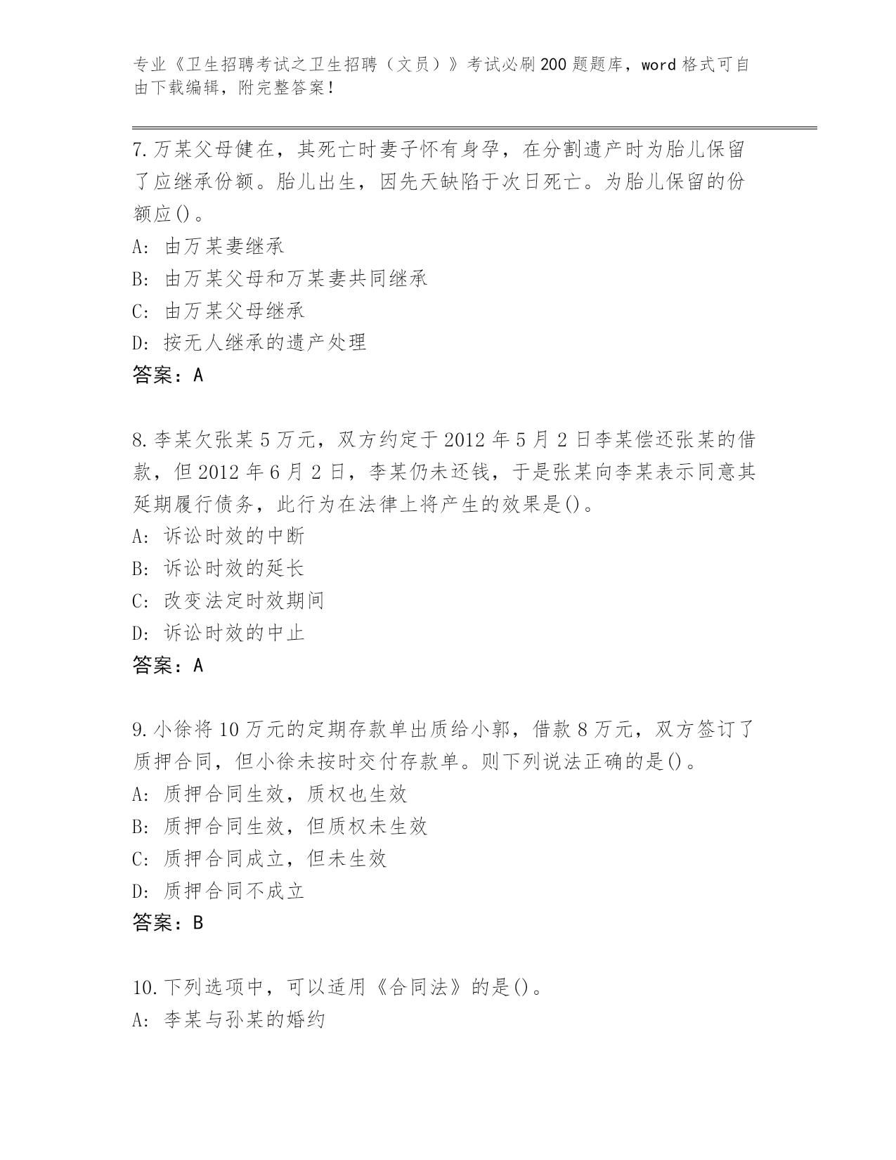 内部使用湖北省孝南区《卫生招聘考试之卫生招聘(文员)》考试必刷200题(考点提分)