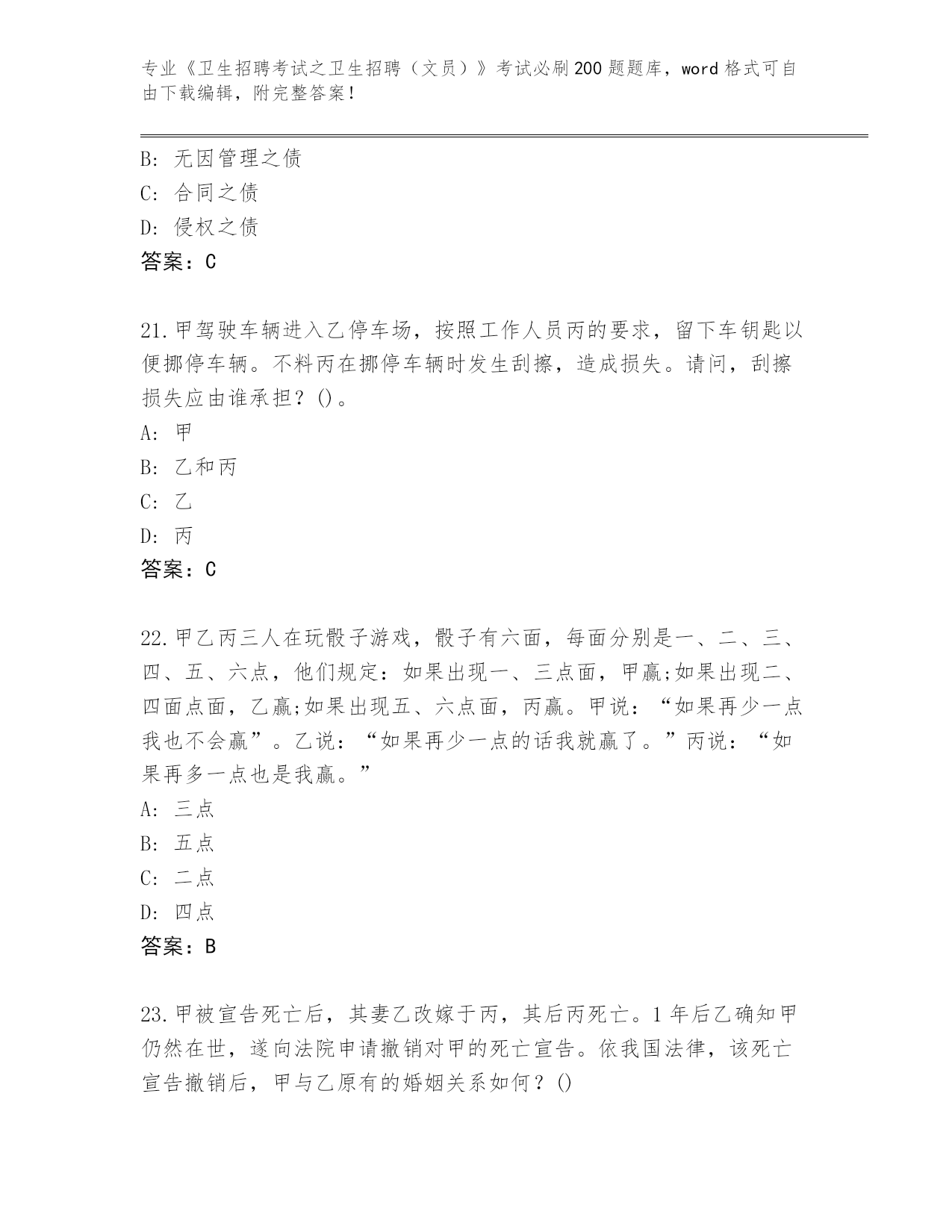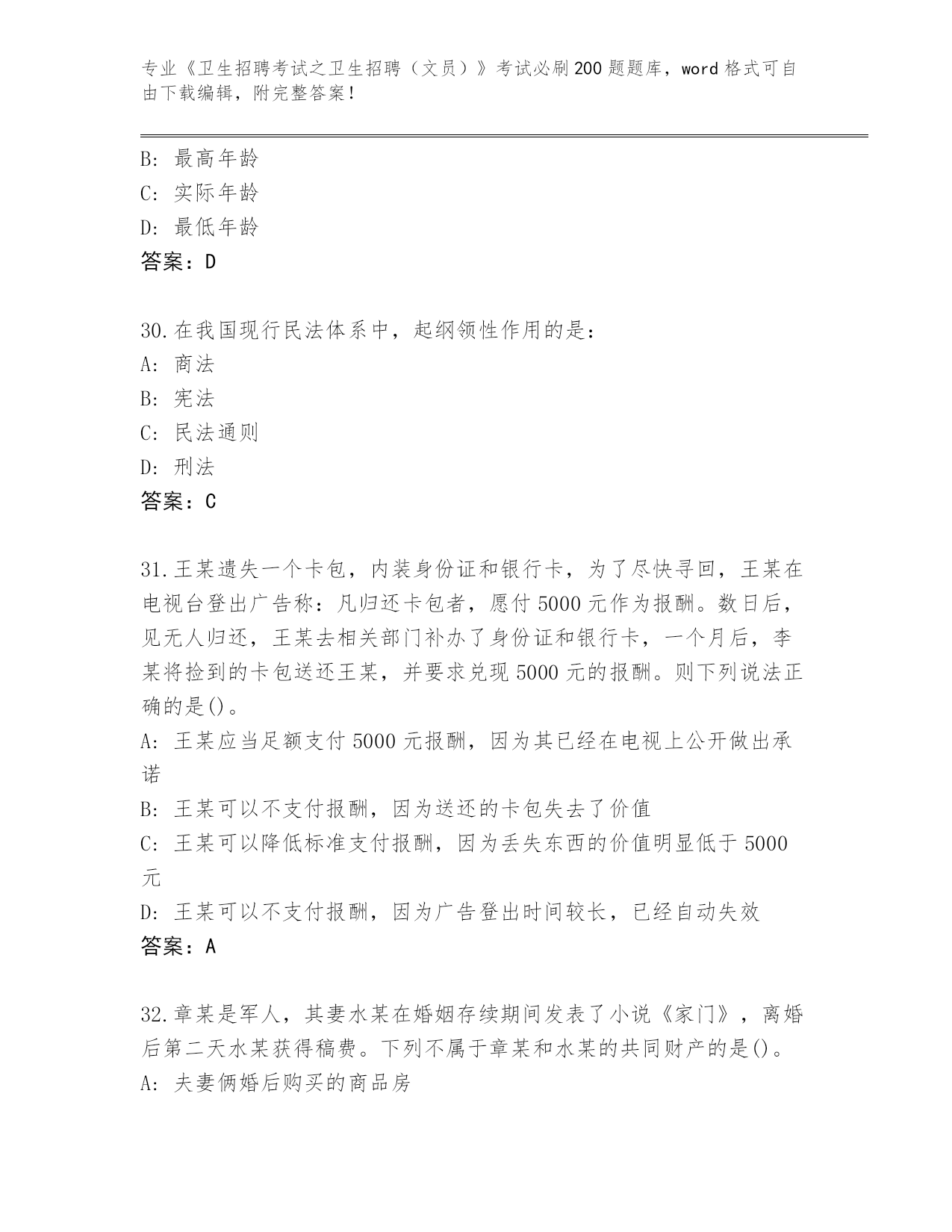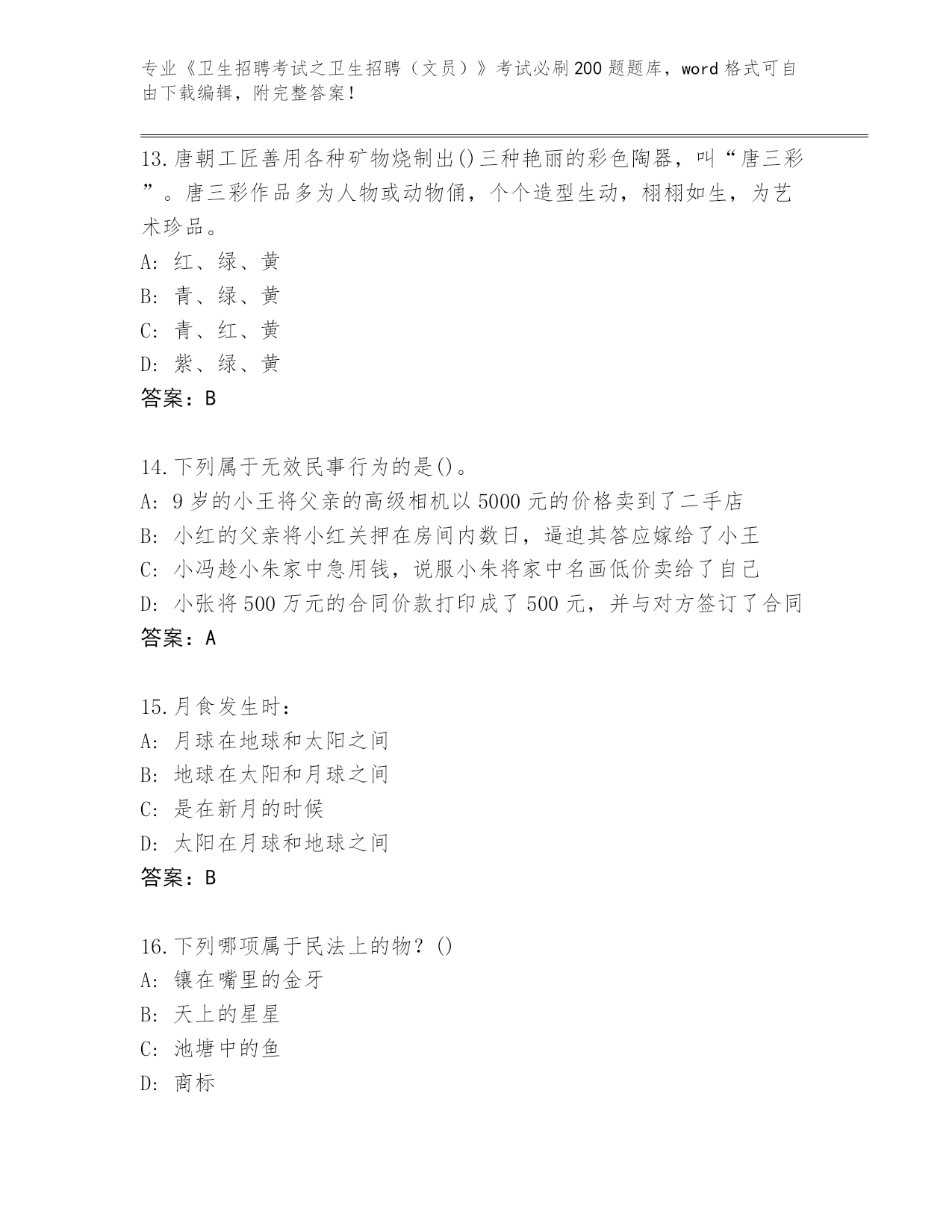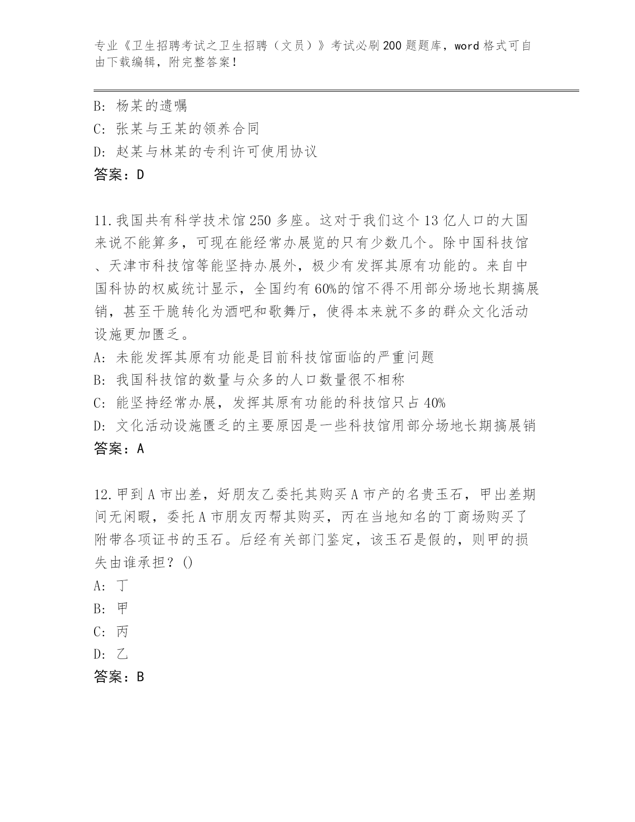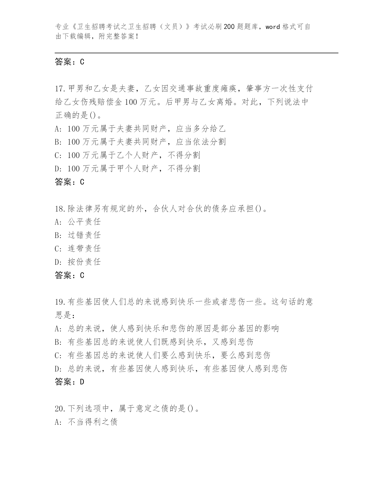 内部使用河南省《卫生招聘考试之卫生招聘(文员)》资格考试必刷200题完整版【考点提分】
