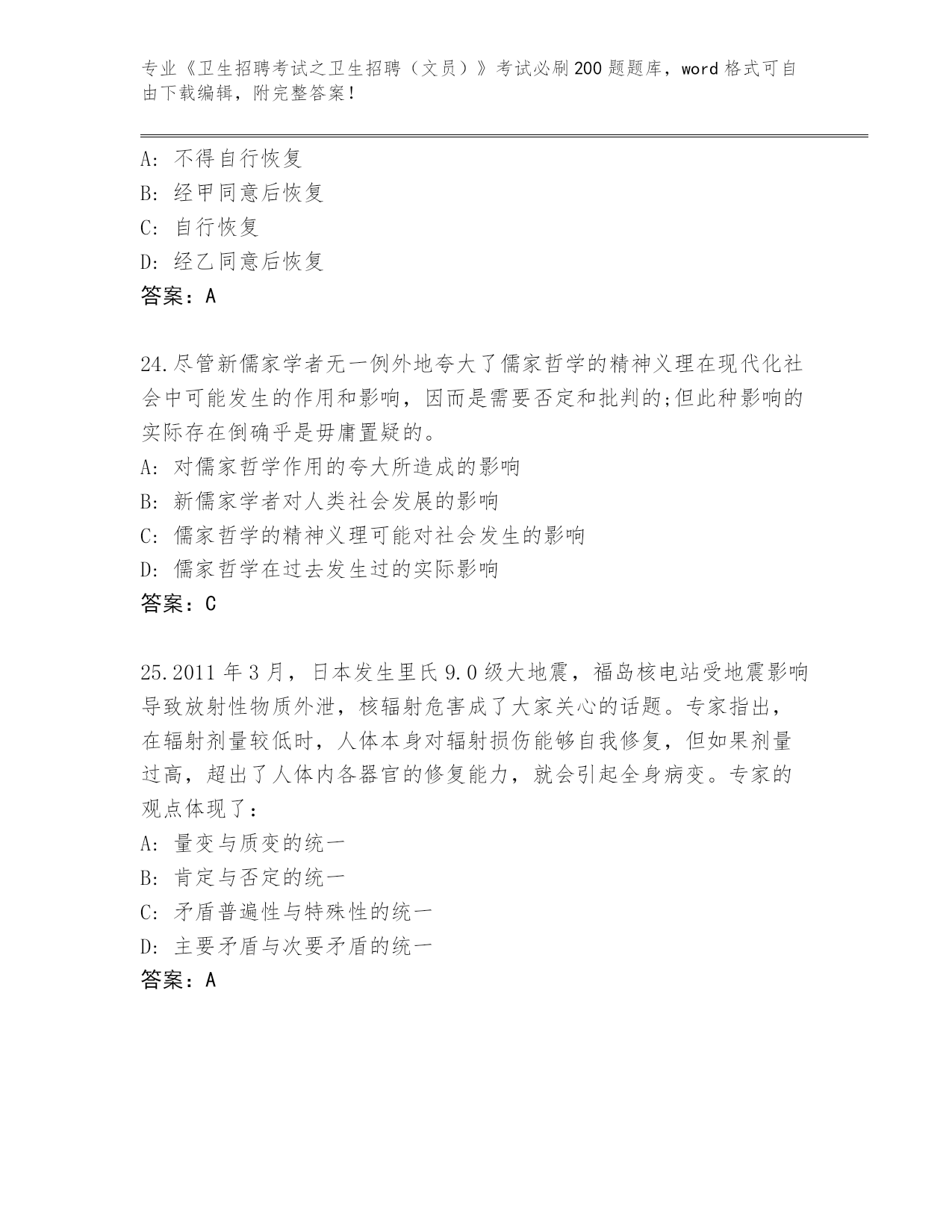 2024湖南省《卫生招聘考试之卫生招聘(文员)》考试必刷200题【考点提分】