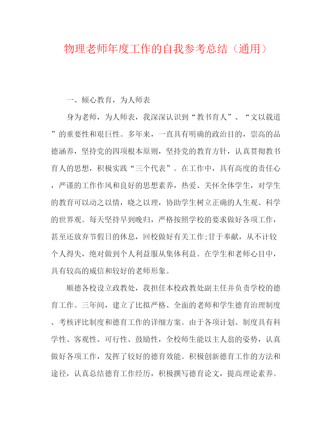 精编之物理教师年度工作的自我参考总结(通用).docx