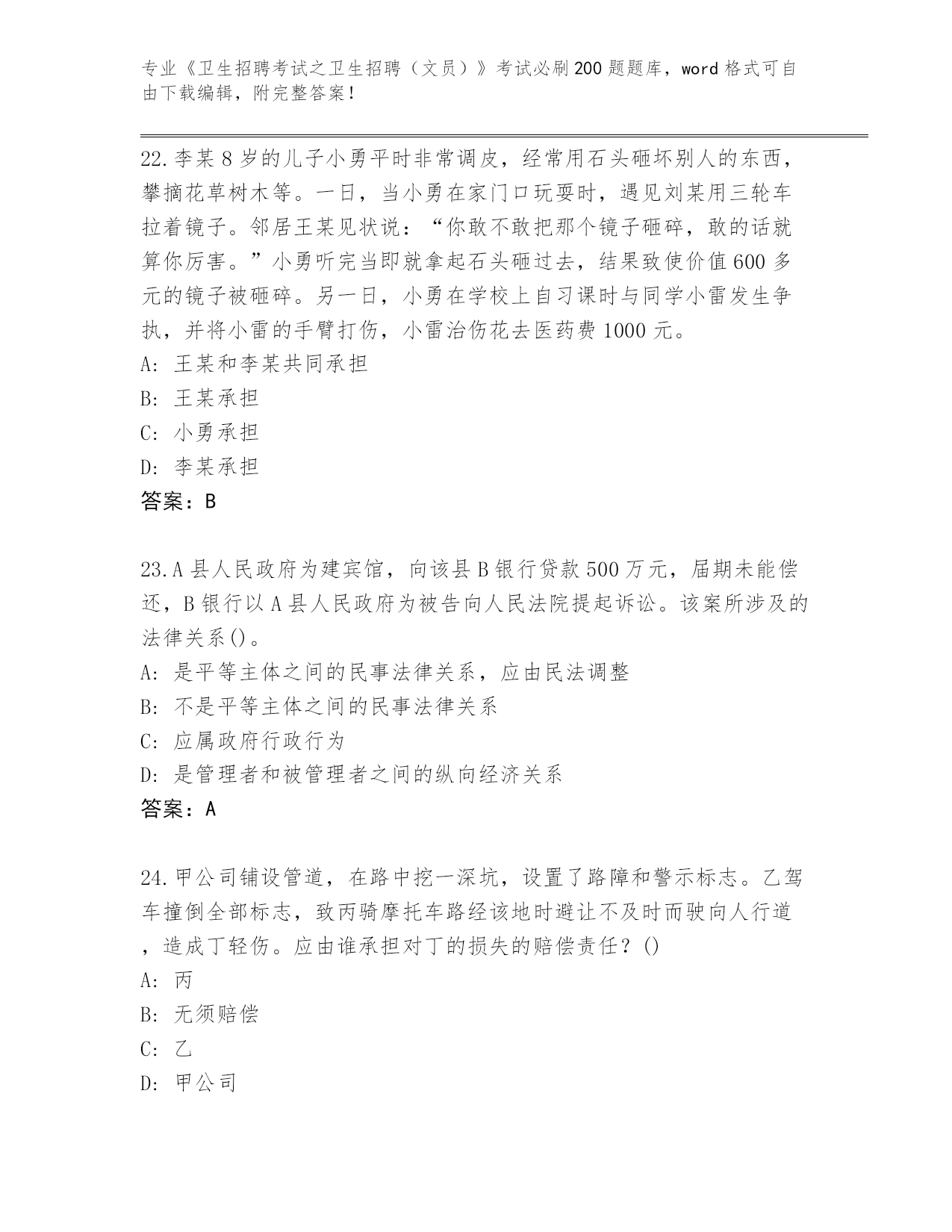 2024河北省《卫生招聘考试之卫生招聘(文员)》考试必刷200题真题(名师系列)