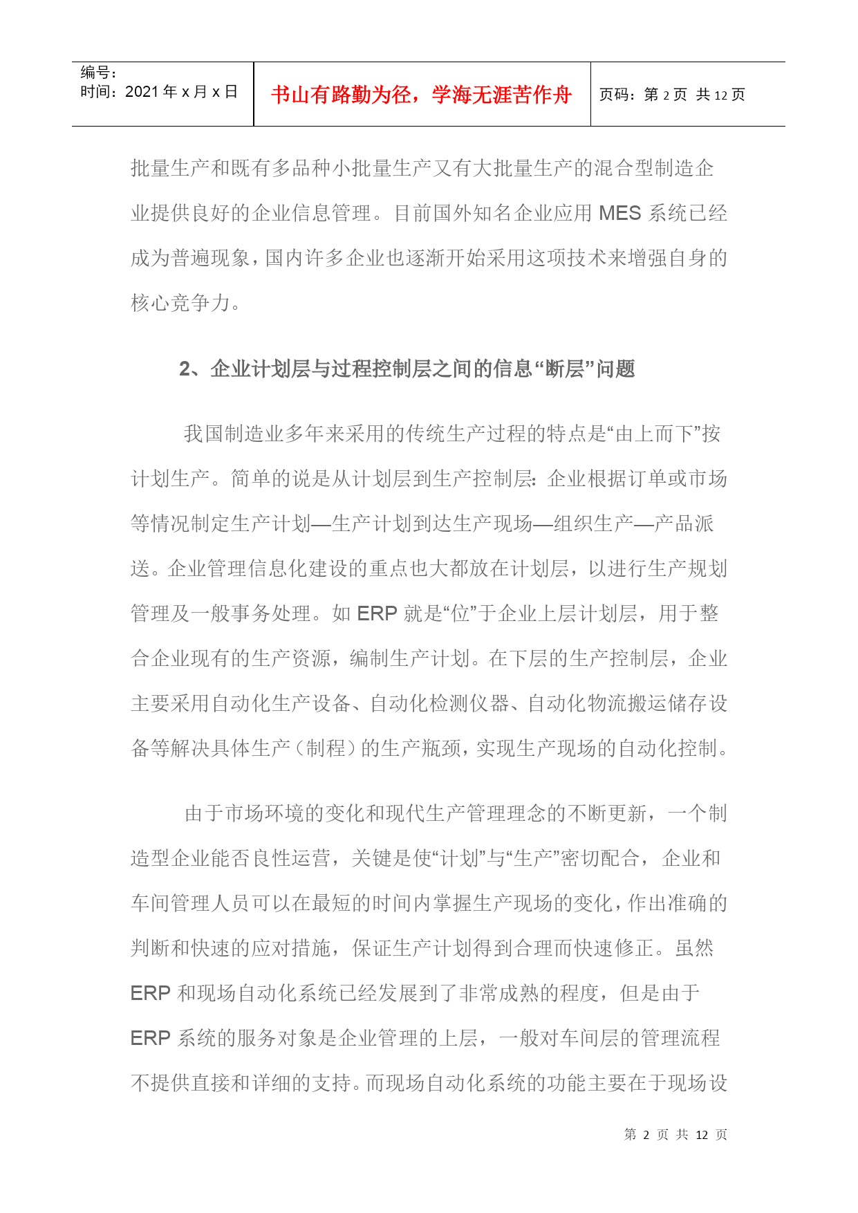 制造业车间级管理系统MES及其典型结构(1).docx