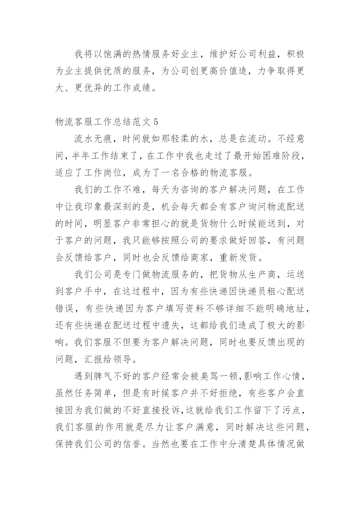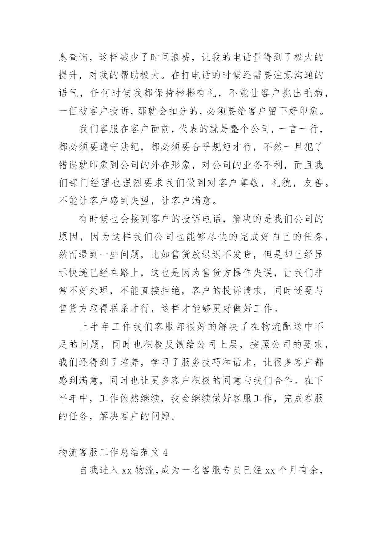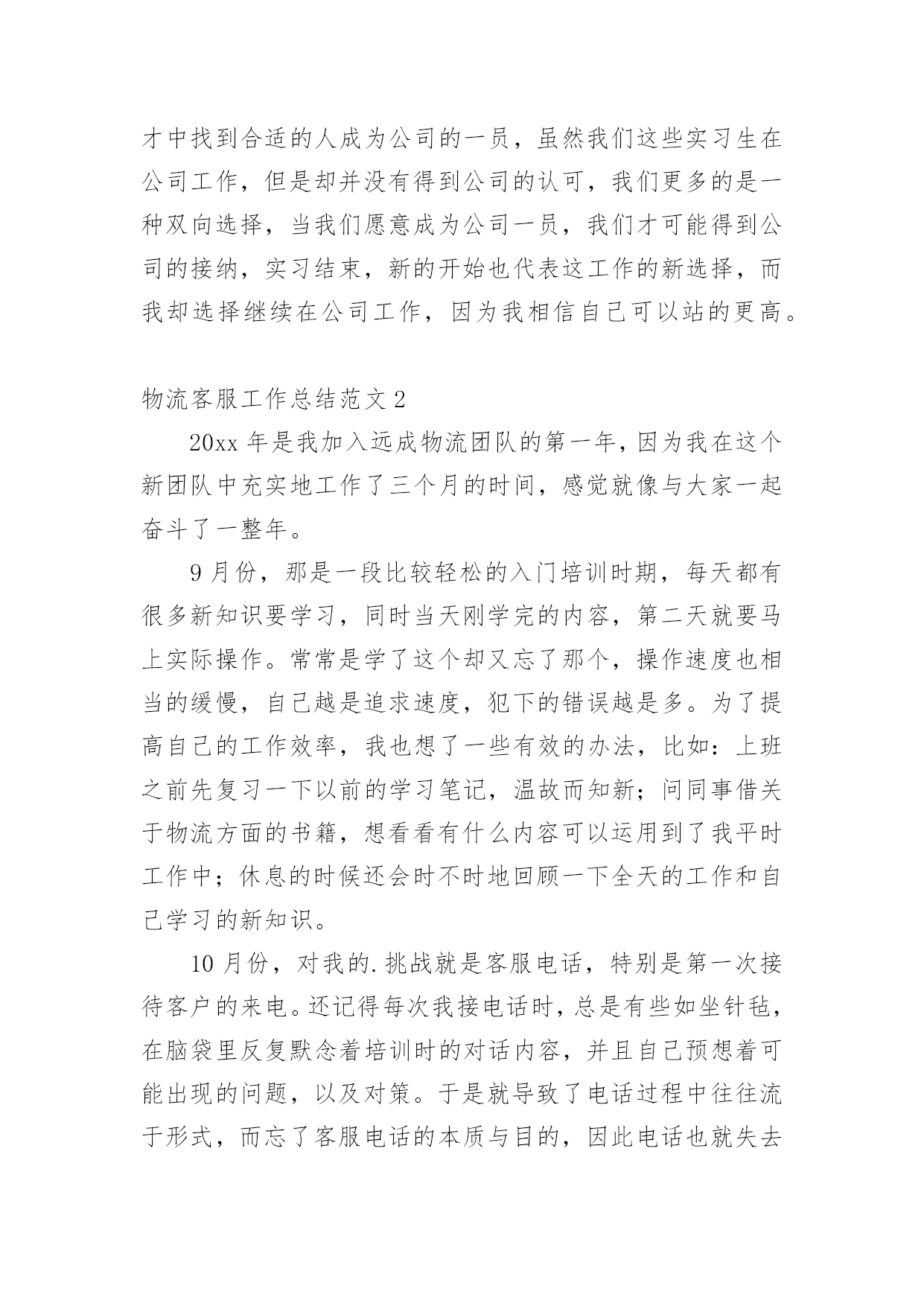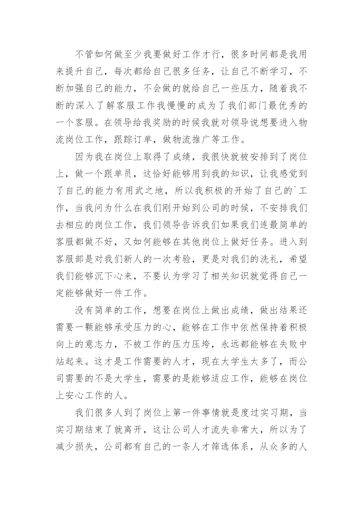 物流客服工作总结物流客服工作总结范文总结是指社会团体、企业单位和个人在自身的某一时期、某一项目或某些工作告一段落或者全部完成后进行回顾检查、分析评价,从而肯定成绩,得到经验,找出差距,得出教训和一些规律性认识的一种书面材料,它可使零星的、肤浅的、表面的感性认知上升到全面的、系统的、本质的理性认识上来,因此好好准备一份总结吧。总结怎么写才不会流于形式呢?以下是小编整理的物流客服工作总结范文,欢迎阅读与收藏。物流客服工作总结范文1经过了学校四年的学习,对整个物流行业已经了解,加上实习也近了,我也进入了一家与学校合作的物流公司进行实习锻炼。没有熟练掌握工作的技巧,在工作中非常被动,我虽然也是物流专业,但是对于很多工作都无法做好,也因此被安排在了客服部门工作。一开始觉岗位与工作不匹配,根本得不到锻炼,所以有些排斥,做起事情来比较散漫。我们客服部的经理是一个非常威严的人,容不得有人在他眼皮底下混日子,发现我做事如此懒散,直接就训斥我,让我难受了好一阵,从而把我从懒惰中拉回来了。不管如何做至少我要做好工作才行,很多时间都是我用来提升自己,每次都给自己很多任务,让自己不断学习,不断加强自己的能力,不会做的就给自己一些压力,随着我不断的深入了解客服工作我慢慢的成为了我们部门最优秀的一个客服。在领导给我奖励的时候我就对领导说想要进入物流岗位工作,跟踪订单,做物流推广等工作。因为我在岗位上取得了成绩,我很快就被安排到了岗位上,做一个跟单员,这恰好能够用到我的知识,让我感觉到了自己的能力有用武之地,所以我积极的开始了自己的`工作,当我问为什么在我们刚开始到公司的时候,不安排我们去相应的岗位工作,我们领导告诉我们如果我们连最简单的客服都做不好,又如何能够在其他岗位上做好任务。进入到客服部是对我们新人的一次考验,更是对我们的洗礼,希望我们能够沉下心来,不要认为学习了相关知识就觉得自己一定能够做好一件工作。没有简单的工作,想要在岗位上做出成绩,做出结果还需要一颗能够承受压力的心,能够在工作中依然保持着积极向上的意志力,不被工作的压力压垮,永远都能够在失败中站起来。这才是工作需要的人才,现在大学生太多了,而公司需要的不是大学生,需要的是能够适应工作,能够在岗位上安心工作的人。我们很多人到了岗位上第一件事情就是度过实习期,当实习期结束了就离开,这让公司人才流失非常大,所以为了减少损失,公司都有自己的一条人才筛选体系,从众多的人才中找到合适的人成为公司的一员,虽然我们这些实习生在公司工作,但是却并没有得到公司的认可,我们更多的是一种双向选择,当我们愿意成为公司一员,我们才可能得到公司的接纳,实习结束,新的开始也代表这工作的新选择,而我却选择继续在公司工作,因为我相信自己可以站的更高。物流客服工作总结范文220xx年是我加入远成物流团队的第一年,因为我在这个新团队中充实地工作了三个月的时间,感觉就像与大家一起奋斗了一整年。9月份,那是一段比较轻松的入门培训时期,每天都有很多新知识要学习,同时当天刚学完的内容,第二天就要马上实际操作。常常是学了这个却又忘了那个,操作速度也相当的缓慢,自己越是追求速度,犯下的错误越是多。为了提高自己的工作效率,我也想了一些有效的办法,比如:上班之前先复习一下以前的学习笔记,温故而知新;问同事借关于物流方面的书籍,想看看有什么内容可以运用到了我平时工作中;休息的时候还会时不时地回顾一下全天的工作和自己学习的新知识。10月份,对我的.挑战就是客服电话,特别是第一次接待客户的来电。还记得每次我接电话时,总是有些如坐针毡,在脑袋里反复默念着培训时的对话内容,并且自己预想着可能出现的问题,以及对策。于是就导致了电话过程中往往流于形式,而忘了客服电话的本质与目的,因此电话也就失去了效果。后来,我开始留意有经验的同事们接待电话的内容,同时他们对我也进行了帮助和指导,把我从对客服电话的恐惧和错误中解救了出来。俗话说“只要功夫深铁杵磨成针”,随着客服电话越打越多,我也变得越来越熟练起来,但在“说话的艺术”这方面我还是有很长的一天道路要走的。11月份,我正式转为了客户部一名正式员工,已经有点厌倦了接听电话,这时领导已经看出我的心情,把我单独留了下来,说来也好笑,有点像考试不及格被老师留下来训斥的感觉,领导一针见血的说出了我现在的问题:安于现状。其实接待客户的电话,并不是接听这么简单,通过领导点拨启发,回去立马把每一天客户的来电汇总成表格,客户的真正需求在哪,顿时一目了然。现在看来真的很庆幸有如此敏锐的领导,这部分的工作慢慢有了一个十分固定的模式。12月份,我学到了很多,特别是如何培养自己的执行力这一点。众所周知,年底是工作汇报的大年,在部门会议中,大家各自总结了年度尚未收尾的工作,在我梳理了自己的工作内容之后,突然发现自己有很多工作都处在缓慢的进程