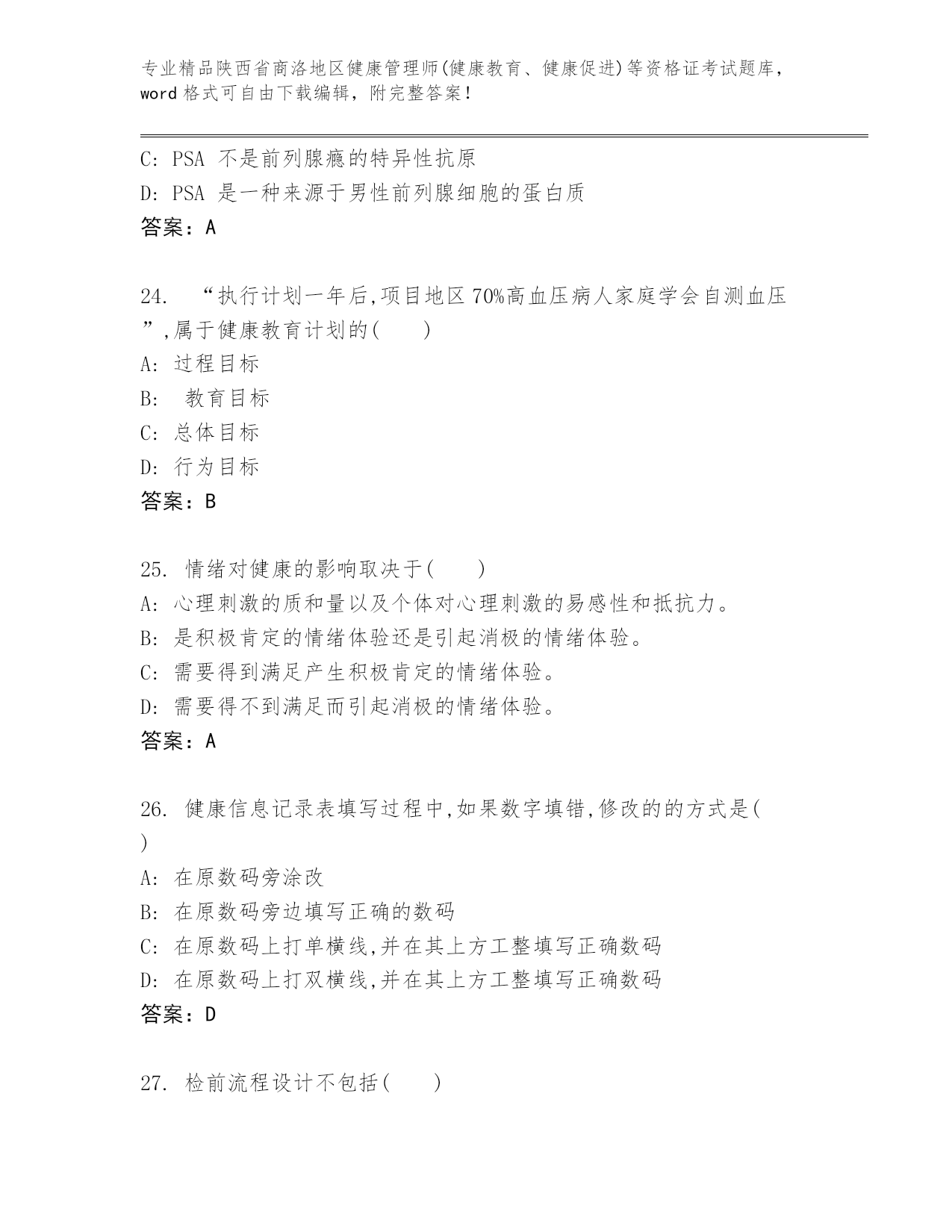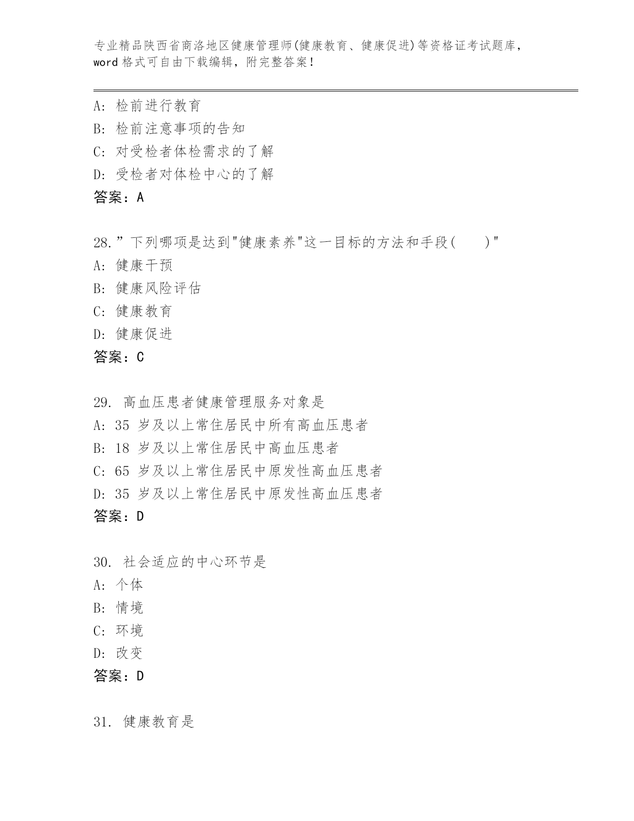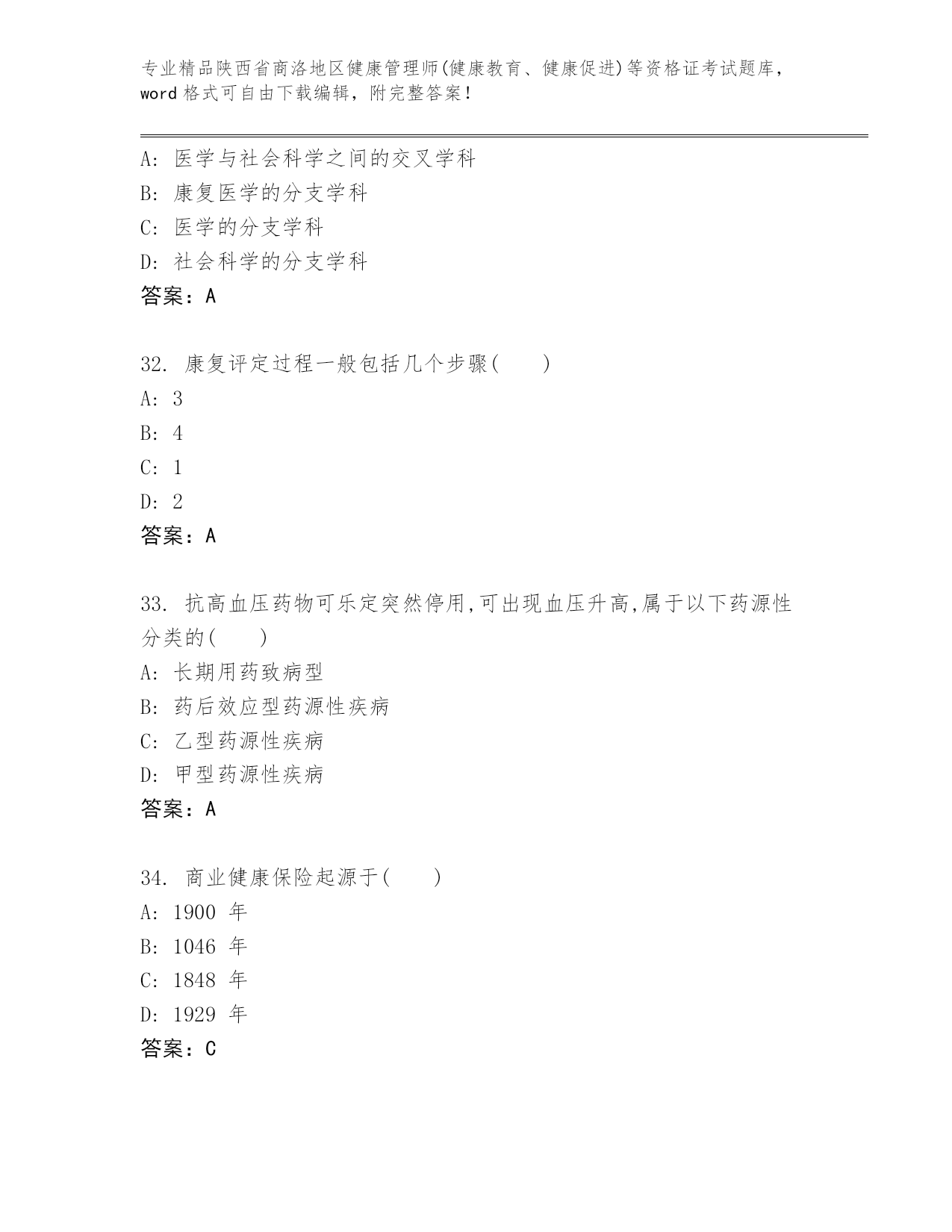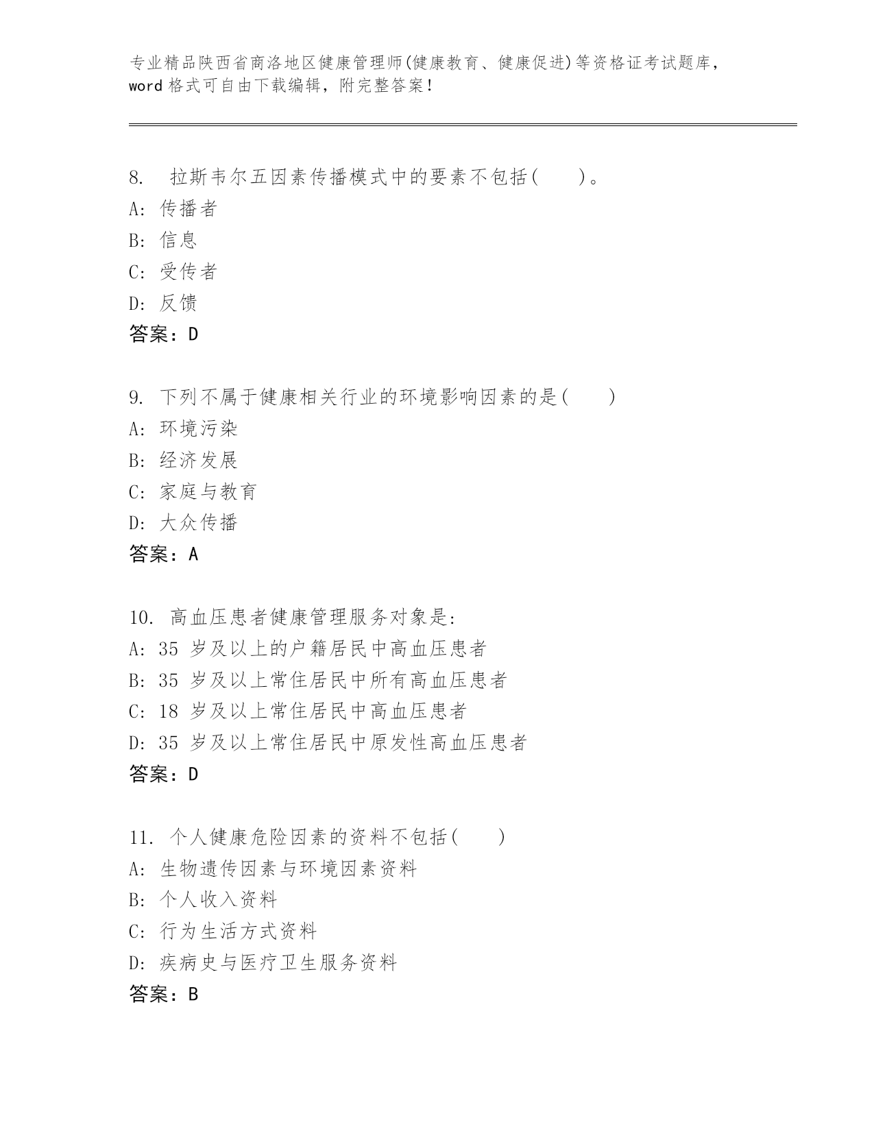 历年陕西省商洛地区健康管理师(健康教育、健康促进)等资格证考试王牌题库【含答案】.docx