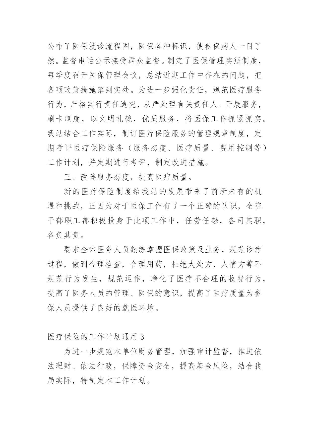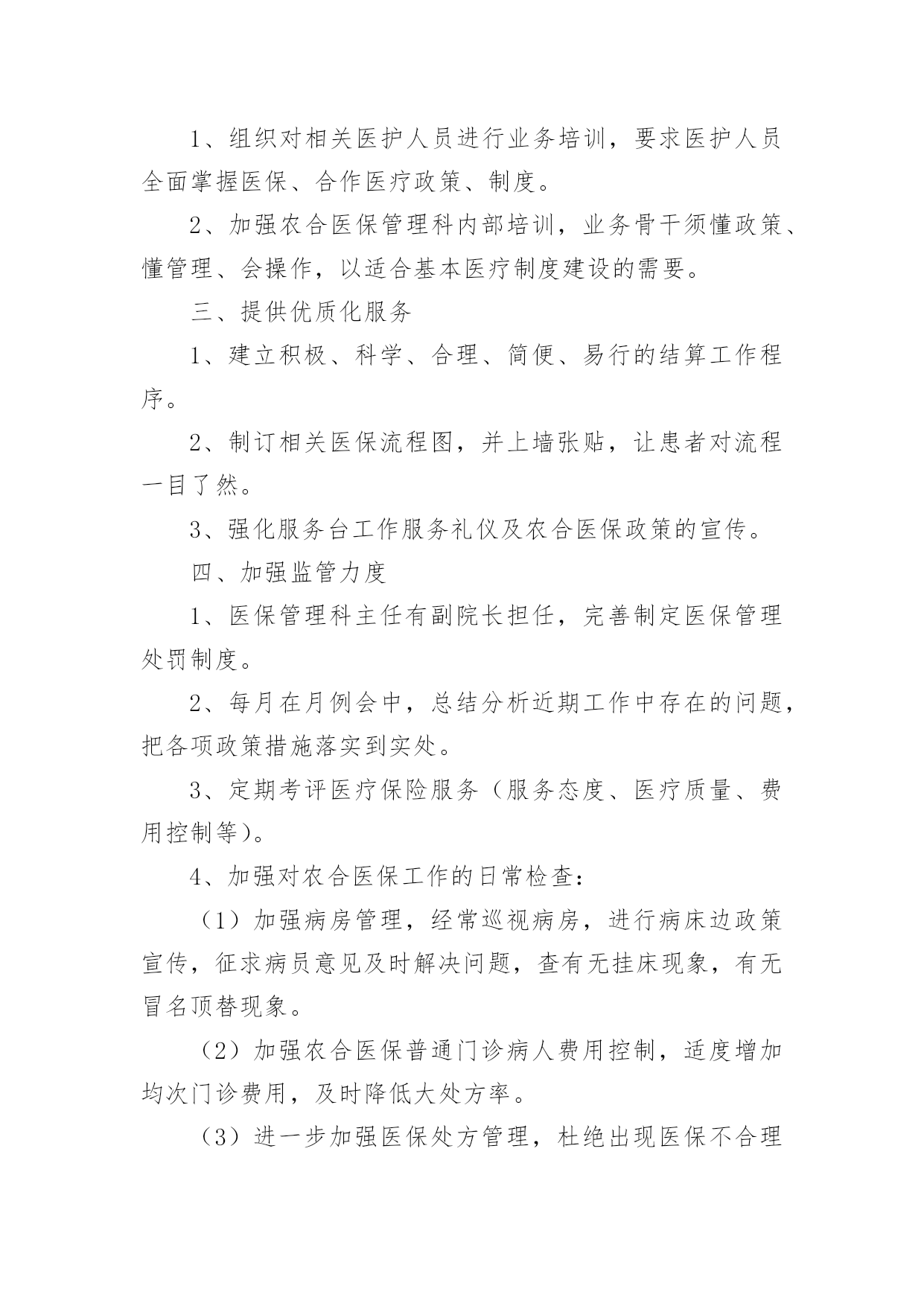 医疗保险的工作计划医疗保险的工作计划通用时间就如同白驹过隙般的流逝,成绩已属于过去,新一轮的工作即将来临,让我们一起来学习写计划吧。拟起计划来就毫无头绪?以下是小编为大家收集的医疗保险的工作计划通用,欢迎阅读,希望大家能够喜欢。医疗保险的工作计划通用1农合医保工作是政府管理职能的延伸,是医院中解决诸多社会矛盾的集中的地方,是医院医疗保险管理的核心。我院作为农合医保定点医院,不仅是医疗服务场所,而且是新农合医保运行的载体,是医、保、患三者的核心,是国家政府保障农合医保工作的桥梁,是保障社会稳定促进社会和谐的纽带,医保工作意义重大。为进一步提高农合医保管理质量,创新农合医保管理体制,确保农合医保各项工作落到实处,特制订20xx年度工作计划如下:一、定期进行政策宣传1、对医护人员进行农合医保政策宣传,及时传达新政策。2、定期对医护人员进行医保、农合工作反馈,让医护人员知晓医保局、农合办审核过程中发现的有关医疗质量的内容。二、强化业务培训1、组织对相关医护人员进行业务培训,要求医护人员全面掌握医保、合作医疗政策、制度。2、加强农合医保管理科内部培训,业务骨干须懂政策、懂管理、会操作,以适合基本医疗制度建设的需要。三、提供优质化服务1、建立积极、科学、合理、简便、易行的结算工作程序。2、制订相关医保流程图,并上墙张贴,让患者对流程一目了然。3、强化服务台工作服务礼仪及农合医保政策的宣传。四、加强监管力度1、医保管理科主任有副院长担任,完善制定医保管理处罚制度。2、每月在月例会中,总结分析近期工作中存在的问题,把各项政策措施落实到实处。3、定期考评医疗保险服务(服务态度、医疗质量、费用控制等)。4、加强对农合医保工作的日常检查:(1)加强病房管理,经常巡视病房,进行病床边政策宣传,征求病员意见及时解决问题,查有无挂床现象,有无冒名顶替现象。(2)加强农合医保普通门诊病人费用控制,适度增加均次门诊费用,及时降低大处方率。(3)进一步加强医保处方管理,杜绝出现医保不合理处方。特别加强对于抗菌药物的合理应用,切实降低住院病人的均次费用。(4)加强对科室的病历书写质量要求,减少在收费和记账工作中存在错误的可能。医疗保险的工作计划通用220xx年1月1日我门诊正式开始使用城镇职工医疗保险卡,在我门诊全体工作人员的高度重视下,按照市社保局的工作安排,遵循着“把握精神,吃透政策,大力宣传,稳步推进,狠抓落实”的总体思路,认真开展各项工作,经过全体医务人员的共同努力,我门诊的医保工作渐渐步入正轨,特制定以下20xx年工作计划:一、重视医保工作,加大宣传力度。为规范诊疗行为,控制医疗费用的不合理增长,以低廉的价格,优质的服务,保障医疗管理健康持续发展,我站全体医务人员,统一思想,明确目标,成立了负责人具体抓的医保工作领导小组。负责医保工作的全面管理。为使医务人员对新的医保政策及制度有较深的了解和全面的掌握,进行广泛的宣传教育和学习活动,加深大家对医保工作的认识。宣传医保政策,让广大医保人员,城镇居民、学生等真正了解到参保的好处,了解医保的运作模式,积极参保。二、措施得力,规章制度严格为使医保病人“清清楚楚就医,明明白白消费”,我站公布了医保就诊流程图,医保各种标识,使参保病人一目了然。监督电话公示接受群众监督。制定了医保管理奖惩制度,每季度召开医保管理会议,总结近期工作中存在的问题,把各项政策措施落到实处。为进一步强化责任,规范医疗服务行为,严格实行责任追究,从严处理有关责任人。开展服务,刷卡制度,以文明礼貌,优质服务,将医保工作抓紧抓实。我站结合工作实际,制订医疗保险服务的管理规章制度,定期考评医疗保险服务(服务态度、医疗质量、费用控制等)工作计划,并定期进行考评,制定改进措施。三、改善服务态度,提高医疗质量。新的医疗保险制度给我站的发展带来了前所未有的机遇和挑战,正因为对于医保工作有了一个正确的认识,全院干部职工都积极投身于此项工作中,任劳任怨,各司其职,各负其责。要求全体医务人员熟练掌握医保政策及业务,规范诊疗过程,做到合理检查,合理用药,杜绝大处方,人情方等不规范行为发生,规范运作,净化了医疗不合理的收费行为,提高了医务人员的管理、医保的意识,提高了医疗质量为参保人员提供了良好的就医环境。医疗保险的工作计划通用3为进一步规范本单位财务管理,加强审计监督,推进依法理财、依法行政,保障资金安全,提高基金风险,结合我局实际,特制定本工作计划。一、审计指导思想深入贯彻落实全国、全省、全州人力资源和社会保障工作会议精神,继续坚持服务于“发展、民生、和谐”的内部审计工作指导思想,准确定位,主动融入,切实履行审计职责,为促进我局财务管理,为降低社保风险而服务。二、审计项目计划重点对年度内社会保险基金的管理和使用情况进行审计调查,并对相关参保单位社会保险基金征