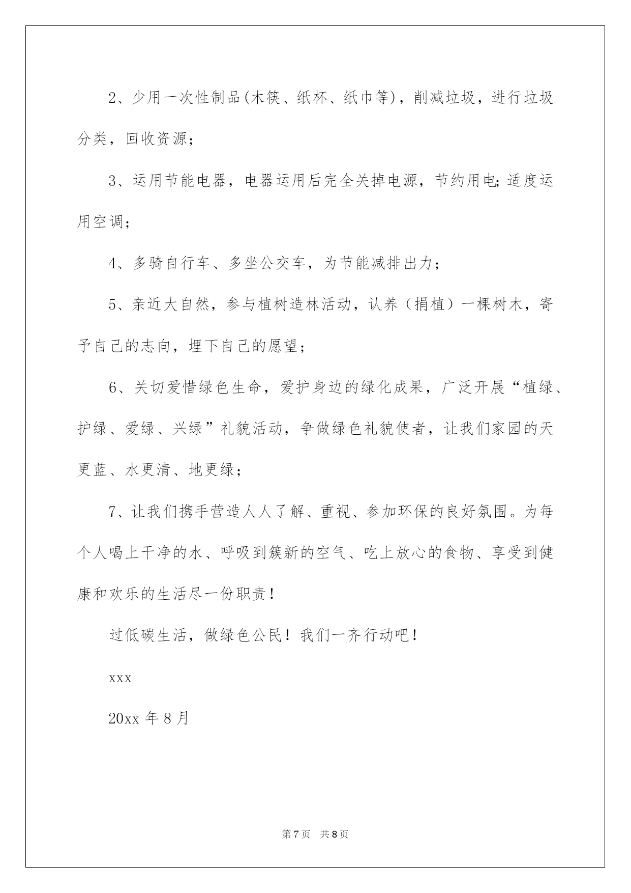 第PAGE\*Arabic\*MERGEFORMAT8页共NUMPAGES\*Arabic\*MERGEFORMAT8页第PAGE\*MERGEFORMAT8页共NUMPAGES\*MERGEFORMAT8页第PAGE\*MERGEFORMAT8页共NUMPAGES\*MERGEFORMAT8页第PAGE\*MERGEFORMAT8页共NUMPAGES\*MERGEFORMAT8页第PAGE\*MERGEFORMAT8页共NUMPAGES\*MERGEFORMAT8页第PAGE\*MERGEFORMAT8页共NUMPAGES\*MERGEFORMAT8页第PAGE\*MERGEFORMAT8页共NUMPAGES\*MERGEFORMAT8页第PAGE\*MERGEFORMAT8页共NUMPAGES\*MERGEFORMAT8页第PAGE\*MERGEFORMAT8页共NUMPAGES\*MERGEFORMAT8页第PAGE\*MERGEFORMAT8页共NUMPAGES\*MERGEFORMAT8页第PAGE\*MERGEFORMAT8页共NUMPAGES\*MERGEFORMAT8页2022低碳环保倡议书低碳环保倡议书4篇在现在的社会生活中,我们都可能会用到倡议书,倡议书具有响应者不确定性的特征。大家知道倡议书的格式吗?下面是我帮大家整理的低碳环保倡议书4篇,欢迎大家借鉴与参考,希望对大家有所帮助。低碳环保倡议书篇1敬爱的同学们:大家好!房间里长时间开着电灯、电视却空无一人;笔记本被顺手扔进了垃圾桶却只用了几页,你们是否经验过?大家是否想到过,自然资源是有限的。现在世界上的自然资源已经起先削减了。假如我们有爱护环境的意识,假如我们都能成为爱护环境的使者,世界将是另一番景象,为了爱护环境,爱护我们的家园,我提出如下建议:一、节约用水提倡运用脸盆洗脸,洗完脸或洗完衣服的水用来浇花,洗拖把。爱惜节水设施,关紧水龙头,自觉做到珍惜水源。二、节约用电建议尽量用自然光,顺手关灯、电脑等电设备,运用完后刚好断电,削减待机损耗,合理运用电器。三、绿色消费尽量少用一次性纸杯,提倡自带水杯,少且一次性塑料袋,建议用布袋,可以多次运用,削减“白色污染”。四、垃圾处理垃圾不要顺手扔在地上,尽量放在邻近的垃圾桶中,但要留意垃圾分类,矿泉水瓶能重复运用的尽量接着用。五、少砍伐、破坏多一些爱护、扶植,爱护森林中的小生物,让他们的生命持续。节约能源,削减污染;绿色消费,环保购物,重复运用;分类回收,循环再生;爱护环境,万物共存;同学们,假如我的建议相宜,大家可以接受。让我们为了地球的明天,献出一份力。倡议人:xxx20xx年xx月xx日低碳环保倡议书篇2“我低碳·我欢乐·我时尚”,美术学院团委青年志愿者服务队(爱心接力社)向全部同学发出倡议:以手绘、电脑制作等方式制作提倡低碳校内生活的小标贴,集中在校内中派发、张贴。号召高校生担当起爱护环境的责任,人人参加,打造欢乐、华蜜、时尚的低碳校内生活。或许你不了解在哥本哈根召开的联合国气候改变大会,但假如电影《20xx》的惊涛骇浪终会成真,你会恐惊吗?全球环境正在恶化这一不争的事实,让环保注定成为世界的`焦点。作为“地球村”一般居民的我们,究竟能为我们的地球、我们的将来、我们的现在,做些什么?“今日你减碳了没?”随着这句口头禅的广泛流行,“低碳生活”正在成为一种时尚的负责任的生活看法追求。思想觉悟高也好,盲目跟风也好,“低碳一族”正以自己生活细微环节的变更来证明:气候改变不只是都市白领、政府官员、专家学者关切的问题,还和每个人休戚相关。对于我们高校生来说,“低碳生活”是一种看法,可以从我们的点滴校内生活中做起。低碳是一种时尚:吃,宁少不多,多吃蔬菜水果少吃肉,上饭店少点菜削减奢侈;行,宁走少车,短途多走路,便利多骑车;用:宁复不一,多用可反复运用的生活小商品,不用、少用一次性筷子、餐巾纸、塑料袋;宁低不高,多用节能节油节水节电节气用品,拒绝高能耗用品……低碳生活不是空口号,我们不仅要爱自己,爱人人,更要酷爱我们这个赖以生存的地球。在此,美术学院团委青年志愿者服务队(爱心接力社)向全部同学征集号召低碳校内生活的小标贴,让低碳生活的创意充溢整个校内,让我们高校生走在低碳生活的前沿。让我们凝合青春力气,为我们的地球而努力,为我们美化的将来生活而努力。让低碳成为时尚,让低碳成为生活。请有意参加的同学,制作设计以“打造低碳校内生活”为主题的小标贴;尺寸要求:宽为10—15厘米,长为20—30厘米;表现形式不限:手绘、电脑设计均可。活动截止日期为4月15日。电脑设计作品请