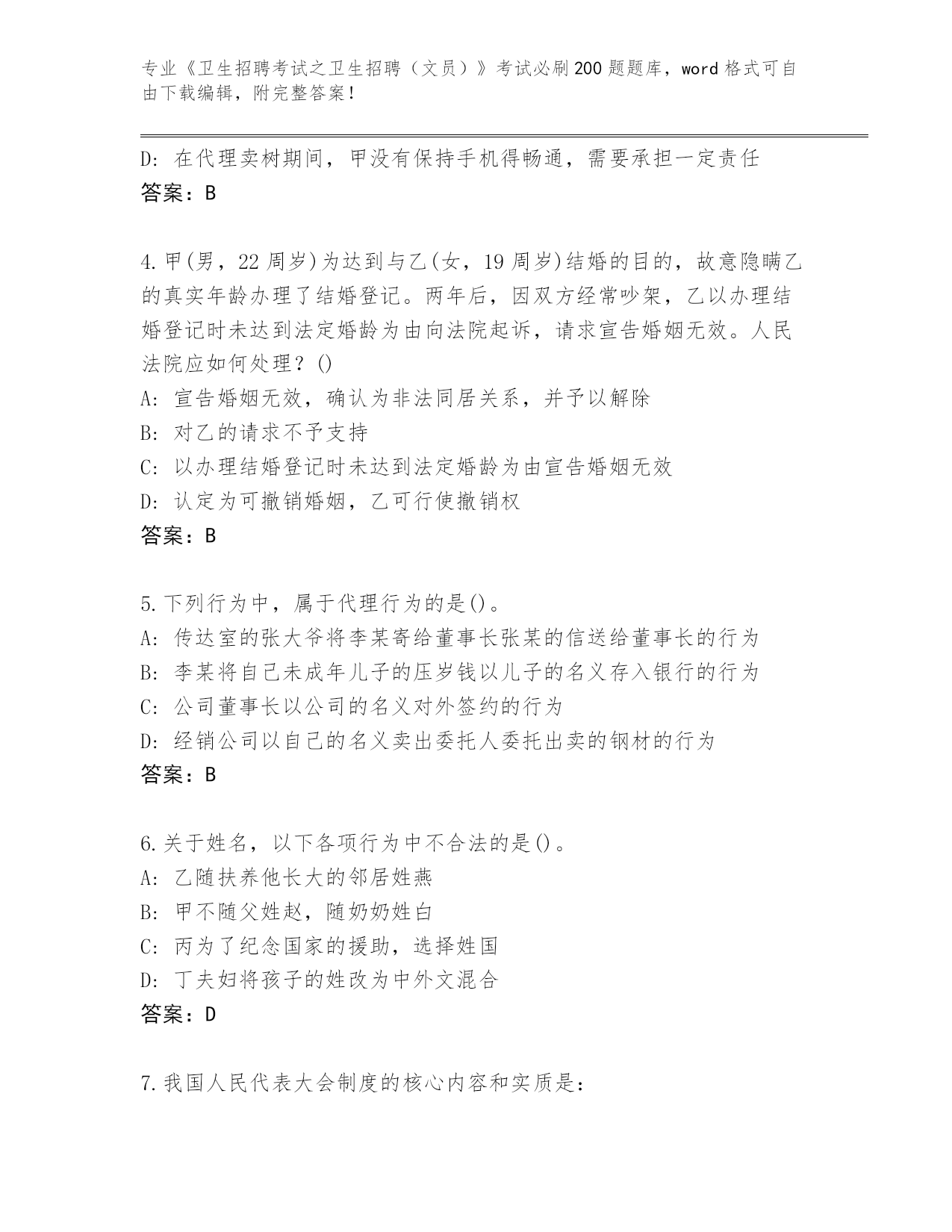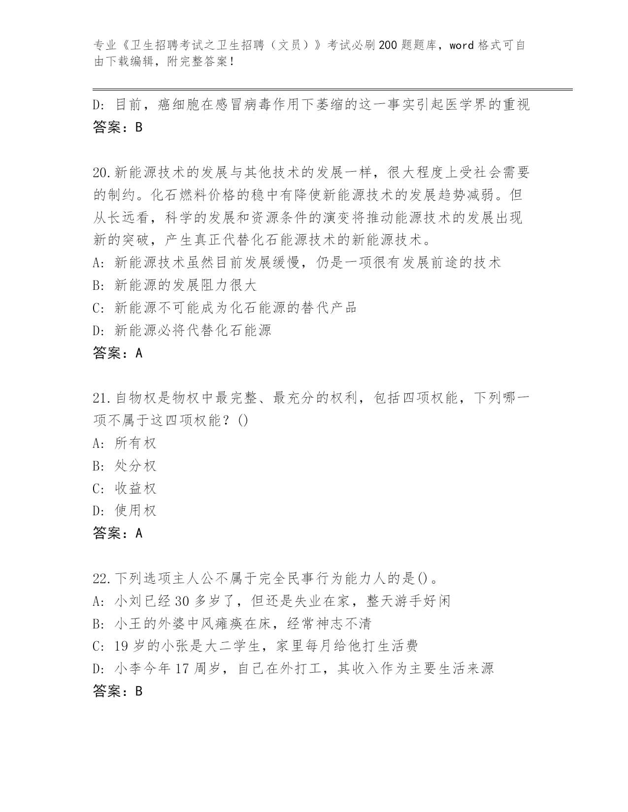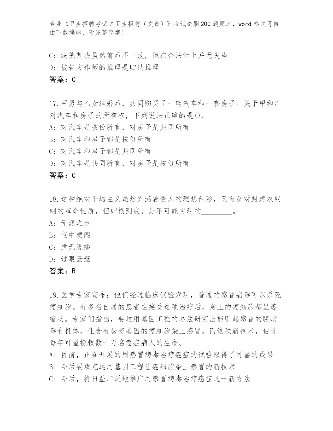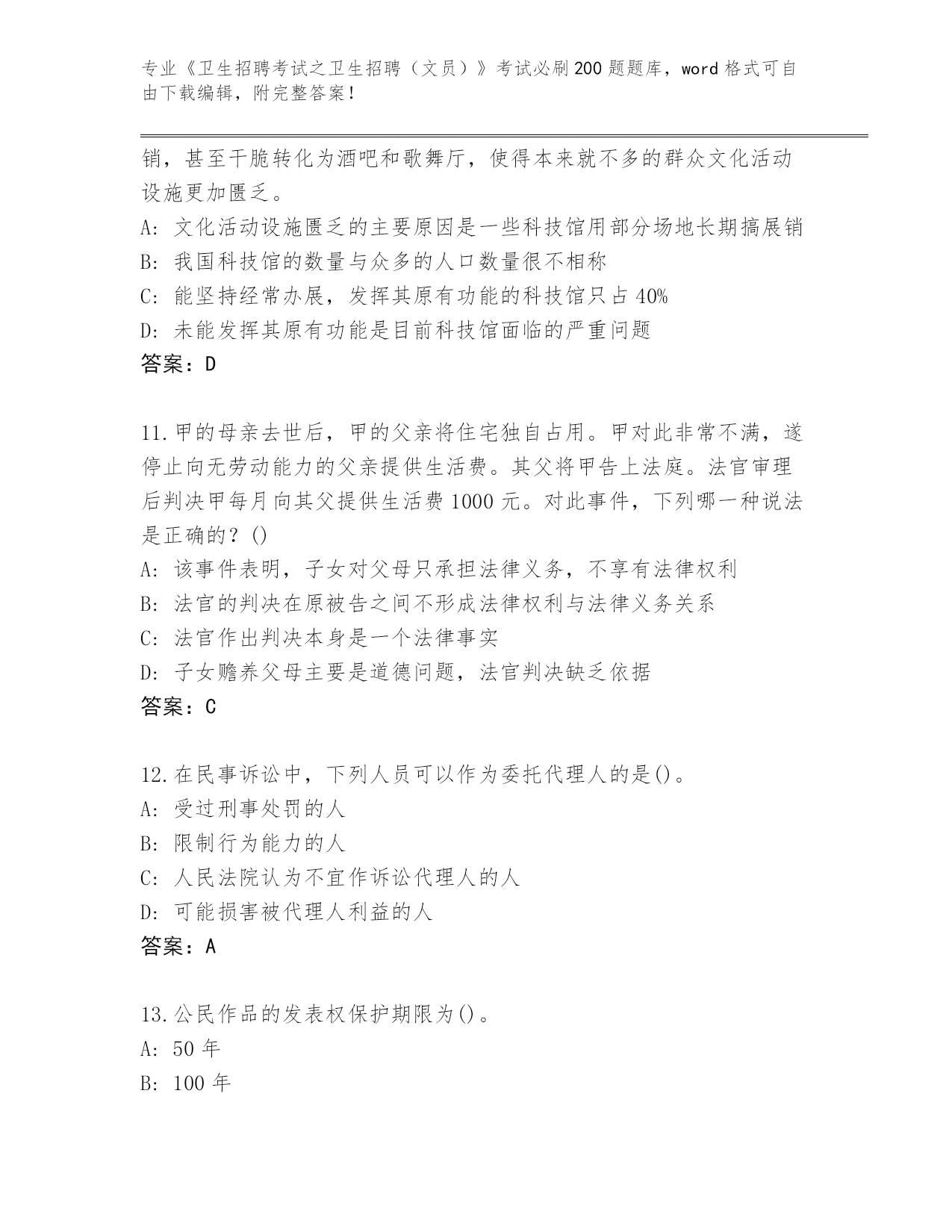 整理江苏省《卫生招聘考试之卫生招聘(文员)》考试必刷200题真题题库及答案【真题汇编】