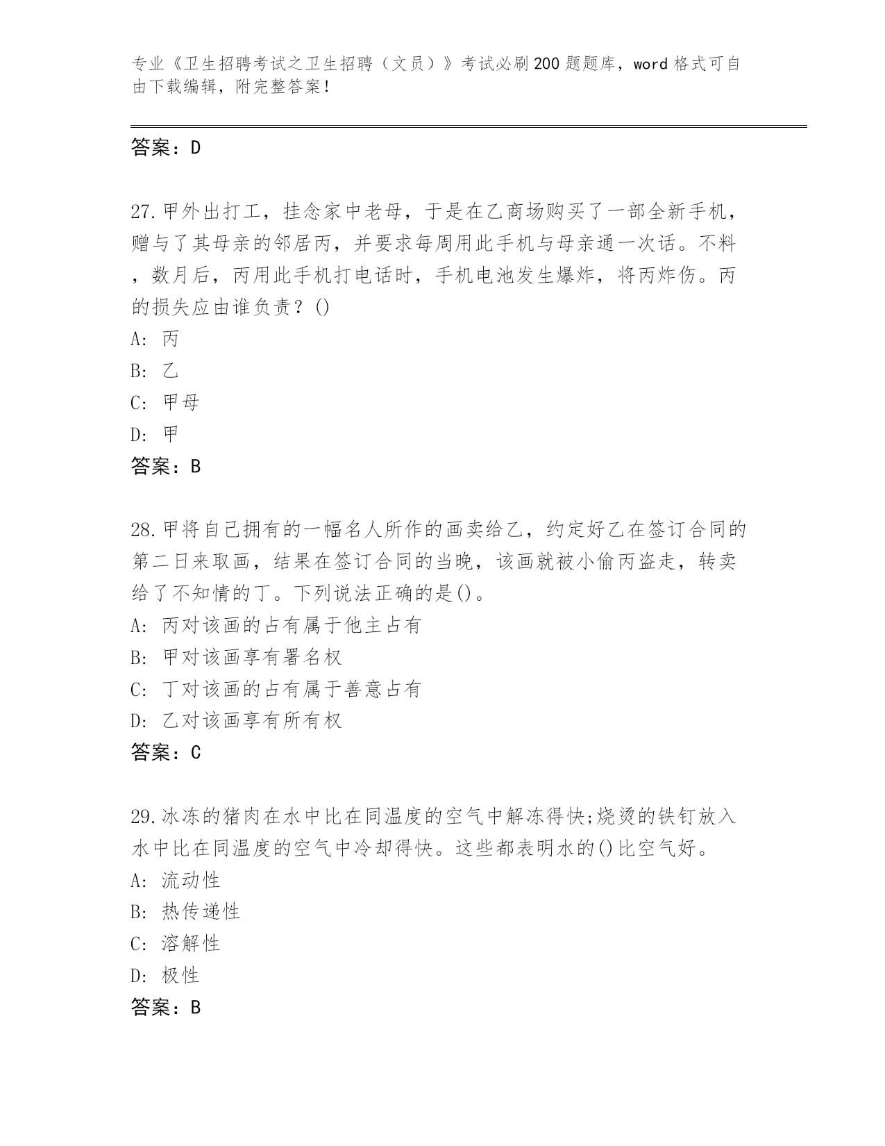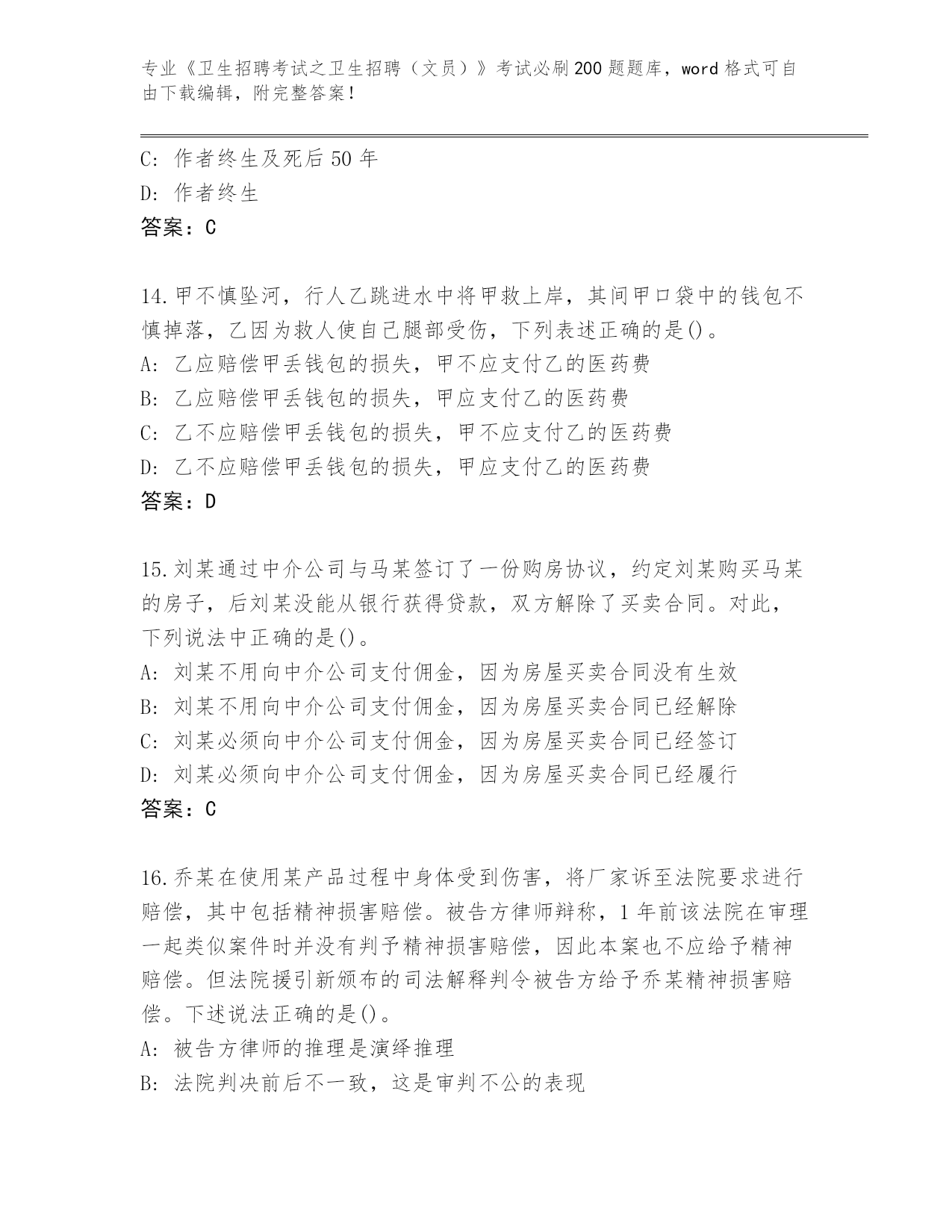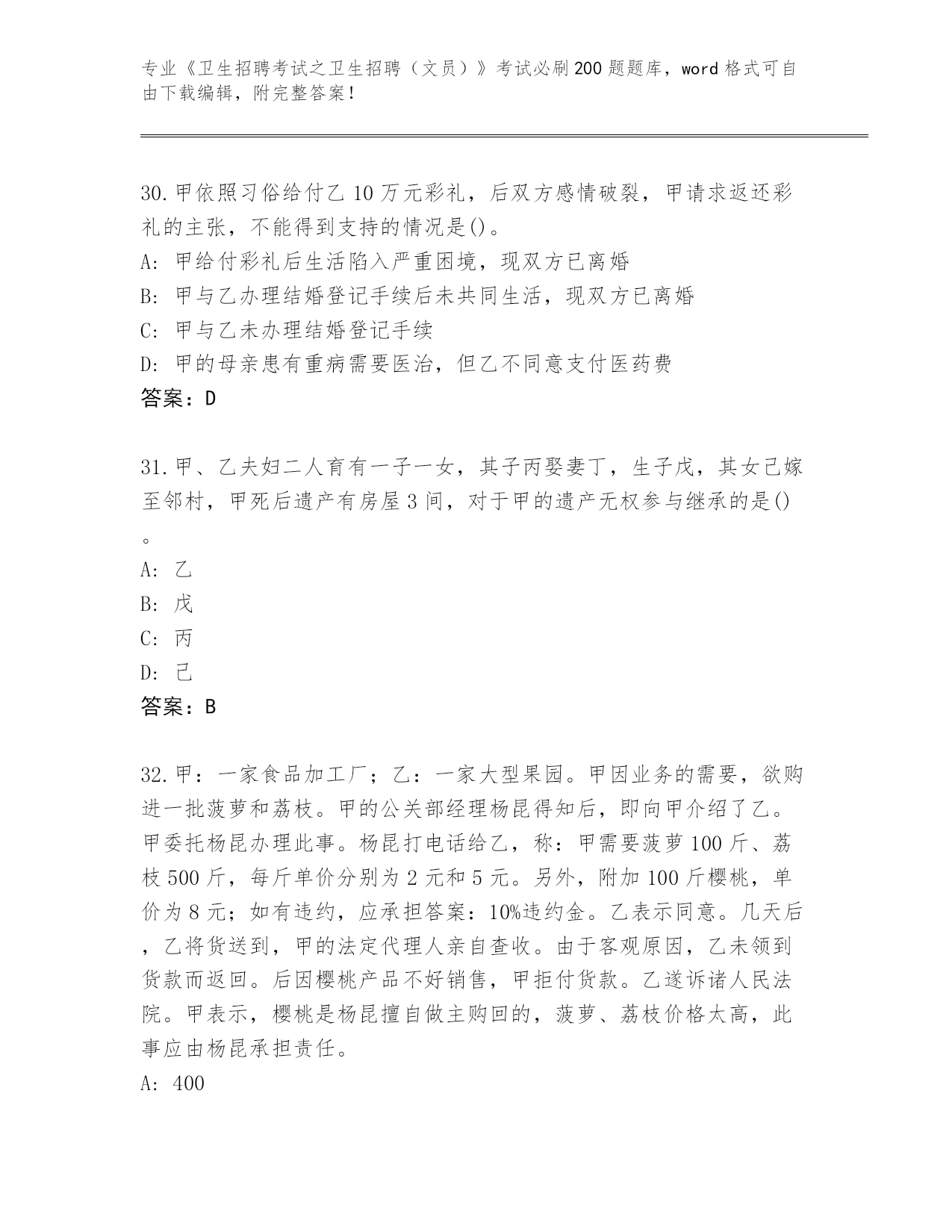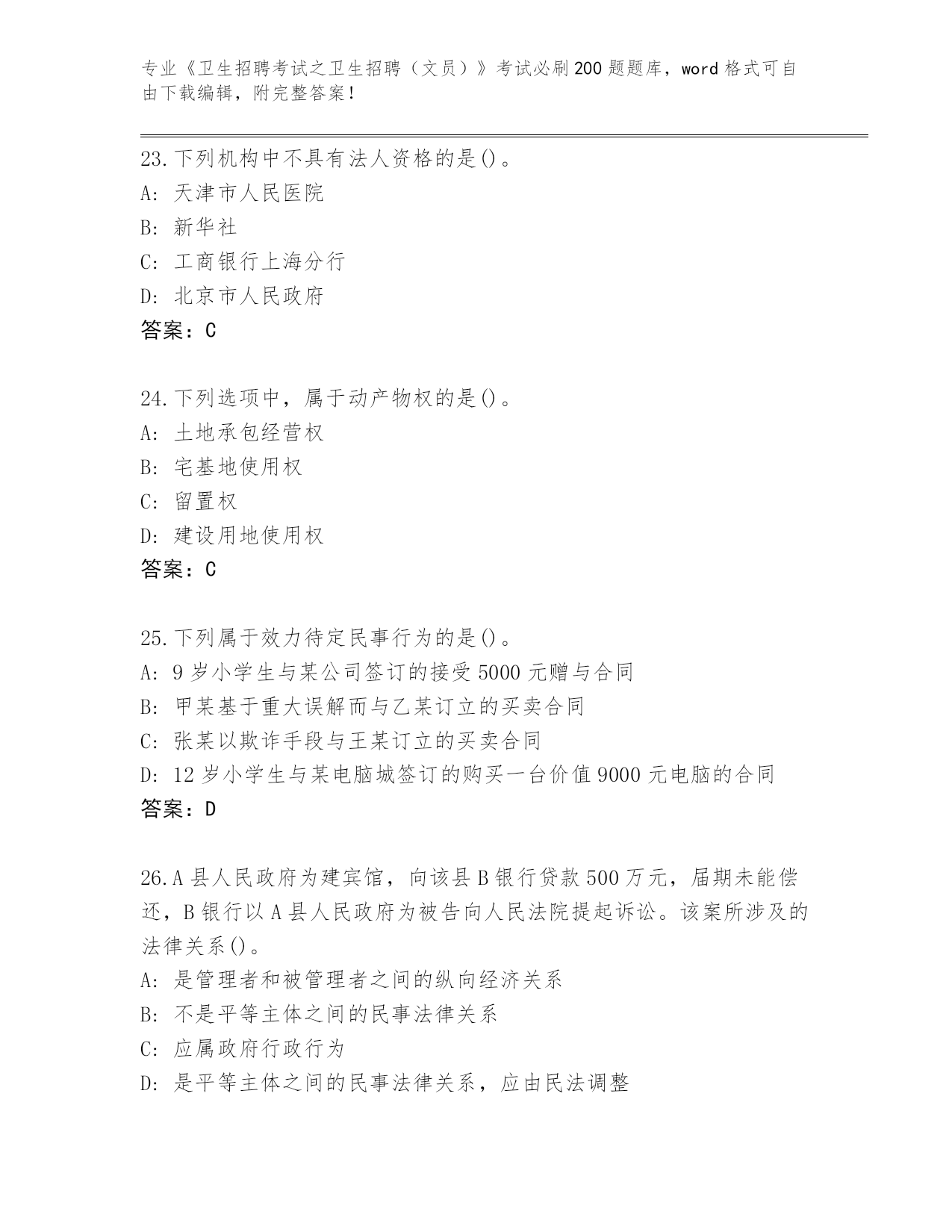 整理江苏省《卫生招聘考试之卫生招聘(文员)》考试必刷200题真题题库完整