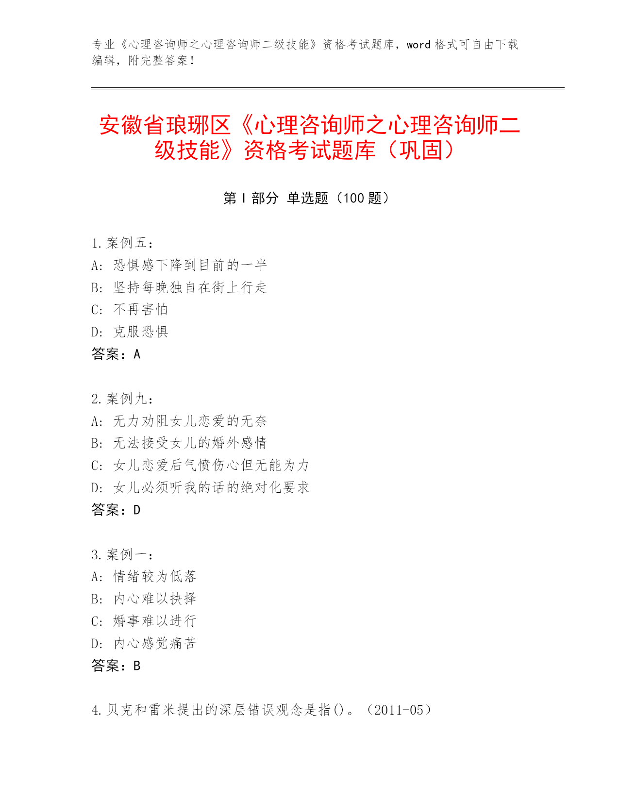 安徽省琅琊区《心理咨询师之心理咨询师二级技能》资格考试题库(巩固).docx