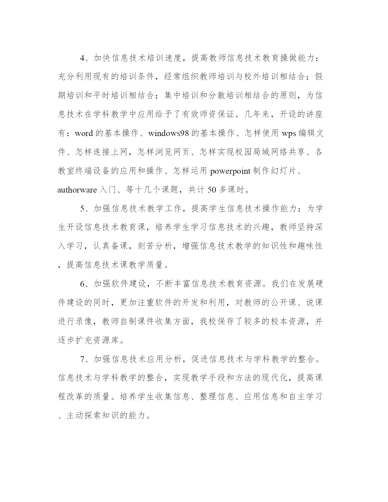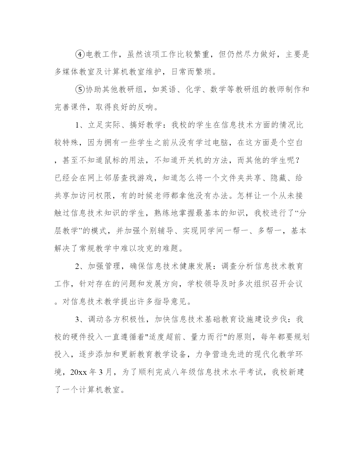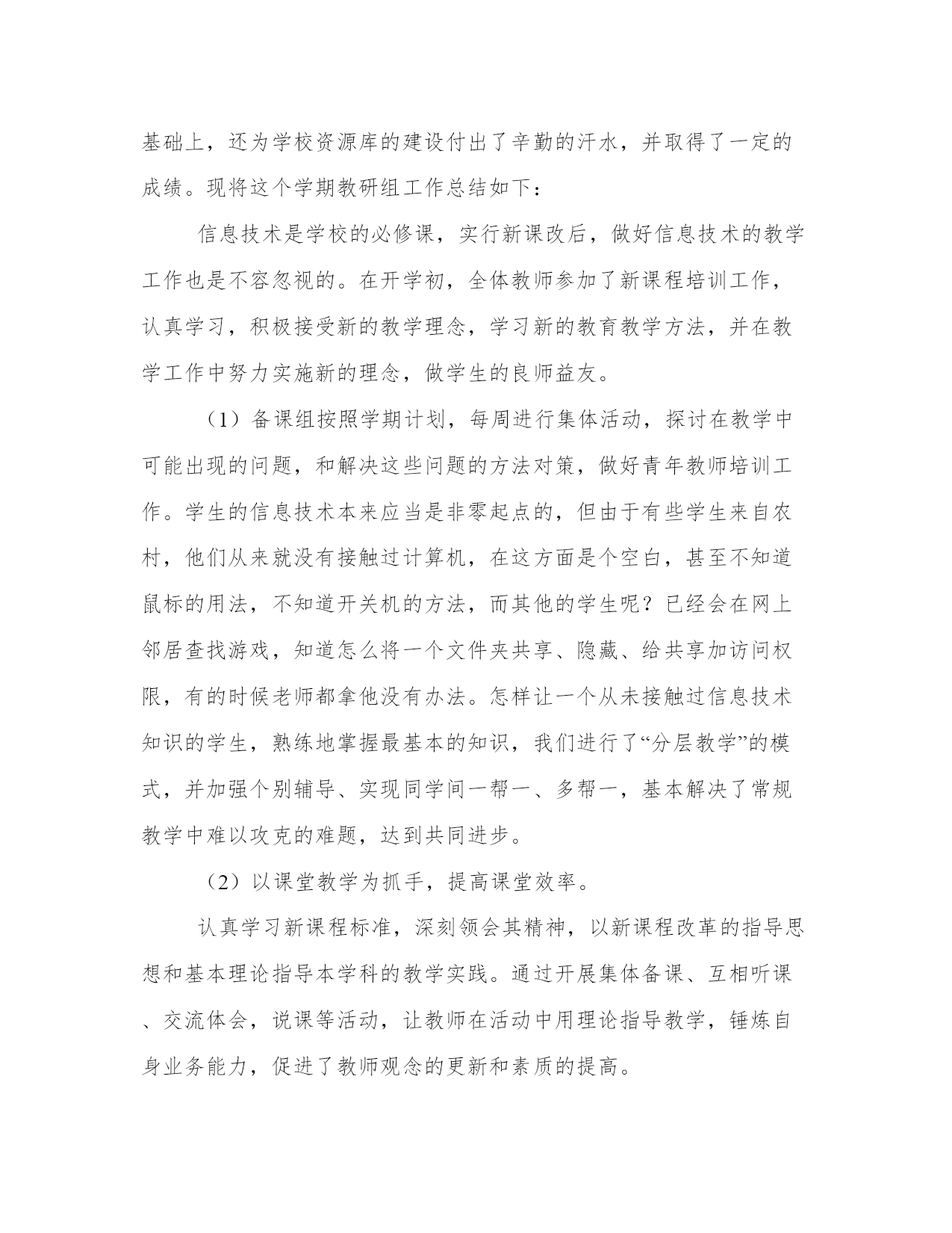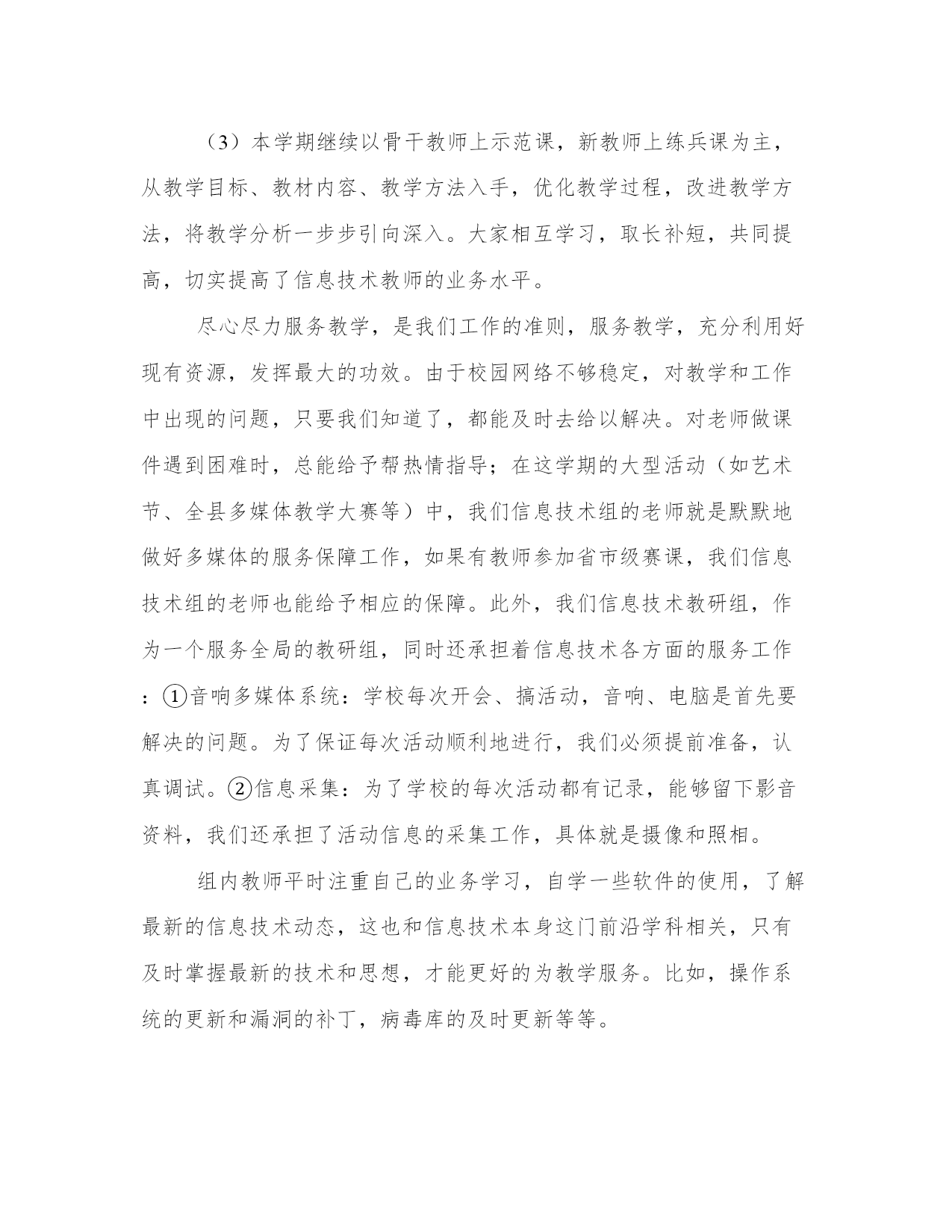 信息技术教研工作总结网站(十篇)总结是写给人看的,条理不清,人们就看不下去,即使看了也不知其所以然,这样就达不到总结的目的。相信许多人会觉得总结很难写?下面是小编带来的优秀总结范文,希望大家能够喜欢!信息技术教研工作总结网站篇一开学初,按照学校的统一要求,召开了教研会议,学习学校在本学期的工作计划和校教导处的工作安排,明确了工作目标,总结上学期的成绩与不足,制订了本教研组本学期的工作计划。1、认真完成常规教学:按学校要求实行电子备课,电子备课的条理清晰、认真细致,能按要求认真完成。作业方面:基本是上机操作随堂完成。听课方面:教研组教师采取互听互评的方式,不断提高自身教学水平,并积极学习其它教研组教研活动的先进经验。2、做好网络电教工作:①教研组教师利用远教资源开发和组建校本教育资源网站,汇集教学课件、习题专集等,供全校教师教学使用。②继续完善ftp服务器和内网的维护工作,实现校园网上公文通知往来和无纸化办公。③做好学生机房和网络中心的设备维护工作,并协力完成班级、办公室电脑的维修,保证教学工作的正常进行。④电教工作,虽然该项工作比较繁重,但仍然尽力做好,主要是多媒体教室及计算机教室维护,日常而繁琐。⑤协助其他教研组,如英语、化学、数学等教研组的教师制作和完善课件,取得良好的反响。1、立足实际、搞好教学:我校的学生在信息技术方面的情况比较特殊,因为拥有一些学生之前从没有学过电脑,在这方面是个空白,甚至不知道鼠标的用法,不知道开关机的方法,而其他的学生呢?已经会在网上邻居查找游戏,知道怎么将一个文件夹共享、隐藏、给共享加访问权限,有的时候老师都拿他没有办法。怎样让一个从未接触过信息技术知识的学生,熟练地掌握最基本的知识,我校进行了“分层教学”的模式,并加强个别辅导、实现同学间一帮一、多帮一,基本解决了常规教学中难以攻克的难题。2、加强管理,确保信息技术健康发展:调查分析信息技术教育工作,针对存在的问题和发展方向,学校领导及时多次组织召开会议。对信息技术教学提出许多指导意见。3、调动各方积极性,加快信息技术基础教育设施建设步伐:我校的硬件投入一直遵循着"适度超前、量力而行"的原则,每年都要规划投入,逐步添加和更新教育教学设备,力争营造先进的现代化教学环境,20xx年3月,为了顺利完成八年级信息技术水平考试,我校新建了一个计算机教室。4、加快信息技术培训速度,提高教师信息技术教育操做能力:充分利用现有的培训条件,经常组织教师培训与校外培训相结合;假期培训和平时培训相结合;集中培训和分散培训相结合的原则,为信息技术在学科教学中应用给予了有效师资保证。几年来,开设的讲座有:word的基本操作、windows98的基本操作、怎样使用wps编辑文件、怎样连接上网,怎样浏览网页、怎样实现校园局域网络共享、各教室终端设备的应用和操作、怎样运用powerpoint制作幻灯片、authorware入门、等十几个课题,共计50多课时。5、加强信息技术教学工作,提高学生信息技术操作能力:为学生开设信息技术教育课,培养学生学习信息技术的兴趣,教师坚持深入学习,认真备课,刻苦分析,增强信息技术教学的知识性和趣味性,提高信息技术课教学质量。6、加强软件建设,不断丰富信息技术教育资源。我们在发展硬件建设的同时,更加注重软件的开发和利用,对教师的公开课、说课进行录像,教师自制课件收集方面,我校保存了较多的校本资源,并逐步扩充资源库。7、加强信息技术应用分析,促进信息技术与学科教学的整合。信息技术与学科教学的整合,实现教学手段和方法的现代化,提高课程改革的质量。培养学生收集信息、整理信息、应用信息和自主学习、主动探索知识的能力。我们虽然取得一些工作成效,但由于信息技术教育正处于发展阶段,同时也存在一些问题,归纳起来有以下3点:1、信息技术在教育教学管理的作用还没有完全发挥出来。2、信息技术与学科教学的整合还远远不够。一是能够做到整合的教师数量还比较少,二是还没有做到经常化。信息技术与学科教学整合要求领导和教师不但要有这方面的能力和水平,而且还要求教师具有不怕困难、努力工作的奉献精神。开展信息技术与学科教学整合工作每天需要花费大量的时间,这就为坚持应用信息技术带来一定困难,所以造成软件开发和现有软件应用还不够。3、信息技术设备维护和应用还存在死角。教师坚持学习应用还不够,由于没有专职教师进行维护,计算机等电教设备出现故障时不能及时排除。以上这些问题都需要我们在今后工作中加以克服和完善。1.今后的教育教学工作中,将加强学生的思想教育,提高学生的教、研、学素质和探索精神。2.加强基础知识和基本技能的教学,提高学生的上机操作能力。注意教学方法的运用,采用形式多样的教学手段,充分调动学生的学习积极性和主动性,激发学生的求知