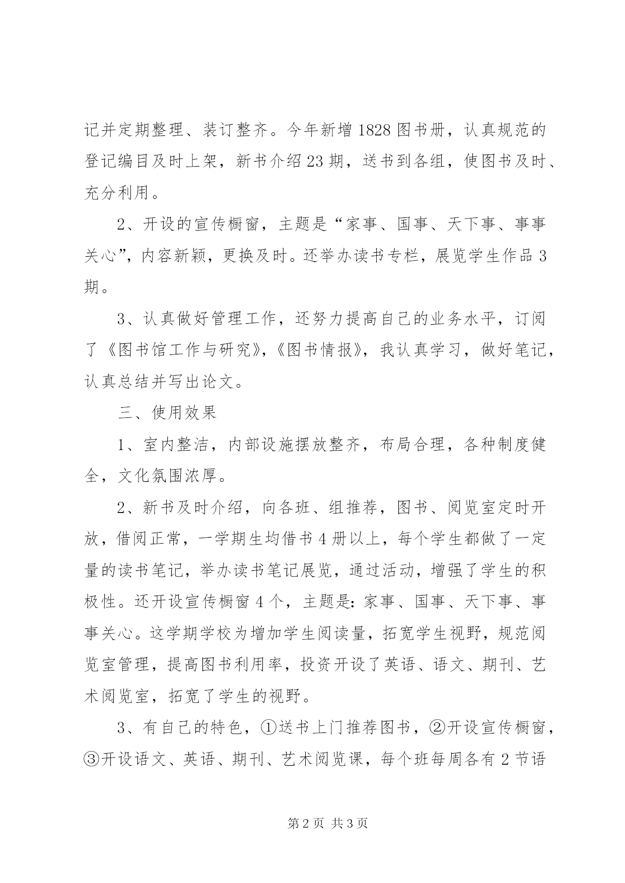 第PAGE\*Arabic\*MERGEFORMAT3页共NUMPAGES\*MERGEFORMAT3页中学图书室工作计划★本学期工作已经结束,学校图书****工作在县教委、校领导的正确领导下,脚踏实地的工作,使工作都落到实处,认真安排,抓管理,抓效率,使图书****工作再创佳绩。图书****工作获得县先进单位。回顾过去,展望未来,今年的工作总结如下:一、地位条件1、学校成立了图书工作领导小组,各种制度健全装裱上墙,图书****工作列入目标管理,领导对工作进行检查指导十三次,促进了图书****工作。2、我校图书室,书橱,出纳台,阅览室面积、内部设施均达到要求,今年学校新增书架9个,阅览室面积达231平方米,设语文、英语、期刊、艺术四个阅览室,质量高,规格符合标准。3、学校加大图书配备,今年学校投资27000余元,购进1828图书册,这些书有文学名著、英汉对照,对于提高学生的英语阅读口语和文学水平,起到了重要的作用。4、学校对县图书****站的工作积极支持配合,对县站安排的工作及时完成,对县站要求订阅的书刊报纸按时订购,且交款及时无欠款,是全县唯一一所学校无欠款的,并受到县站的表彰。二、管理与研究1、严格按规章制度办事,定期核对帐务,帐务相符,簿册齐全,工作手续规范严格。对学校订购的报刊,收发借阅严格登记并定期整理、装订整齐。今年新增1828图书册,认真规范的登记编目及时上架,新书介绍23期,送书到各组,使图书及时、充分利用。2、开设的宣传橱窗,主题是“家事、国事、天下事、事事关心”,内容新颖,更换及时。还举办读书专栏,展览学生作品3期。3、认真做好管理工作,还努力提高自己的业务水平,订阅了《图书馆工作与研究》,《图书情报》,我认真学习,做好笔记,认真总结并写出论文。三、使用效果1、室内整洁,内部设施摆放整齐,布局合理,各种制度健全,文化氛围浓厚。2、新书及时介绍,向各班、组推荐,图书、阅览室定时开放,借阅正常,一学期生均借书4册以上,每个学生都做了一定量的读书笔记,举办读书笔记展览,通过活动,增强了学生的积极性。还开设宣传橱窗4个,主题是:家事、国事、天下事、事事关心。这学期学校为增加学生阅读量,拓宽学生视野,规范阅览室管理,提高图书利用率,投资开设了英语、语文、期刊、艺术阅览室,拓宽了学生的视野。3、有自己的特色,①送书上门推荐图书,②开设宣传橱窗,③开设语文、英语、期刊、艺术阅览课,每个班每周各有2节语文、1节英语、1节期刊阅览课进个阅览室阅读,课外活动四室对学生全面开放。总之,本学期图书阅览、图书****工作顺利进行,满足了教育教学的应用,极大的扩大了学生的知识面,各项素质得到了很大的提高,受到教委的表彰,在今后的工作中,将更加努力的工作,为教育教学服务。
