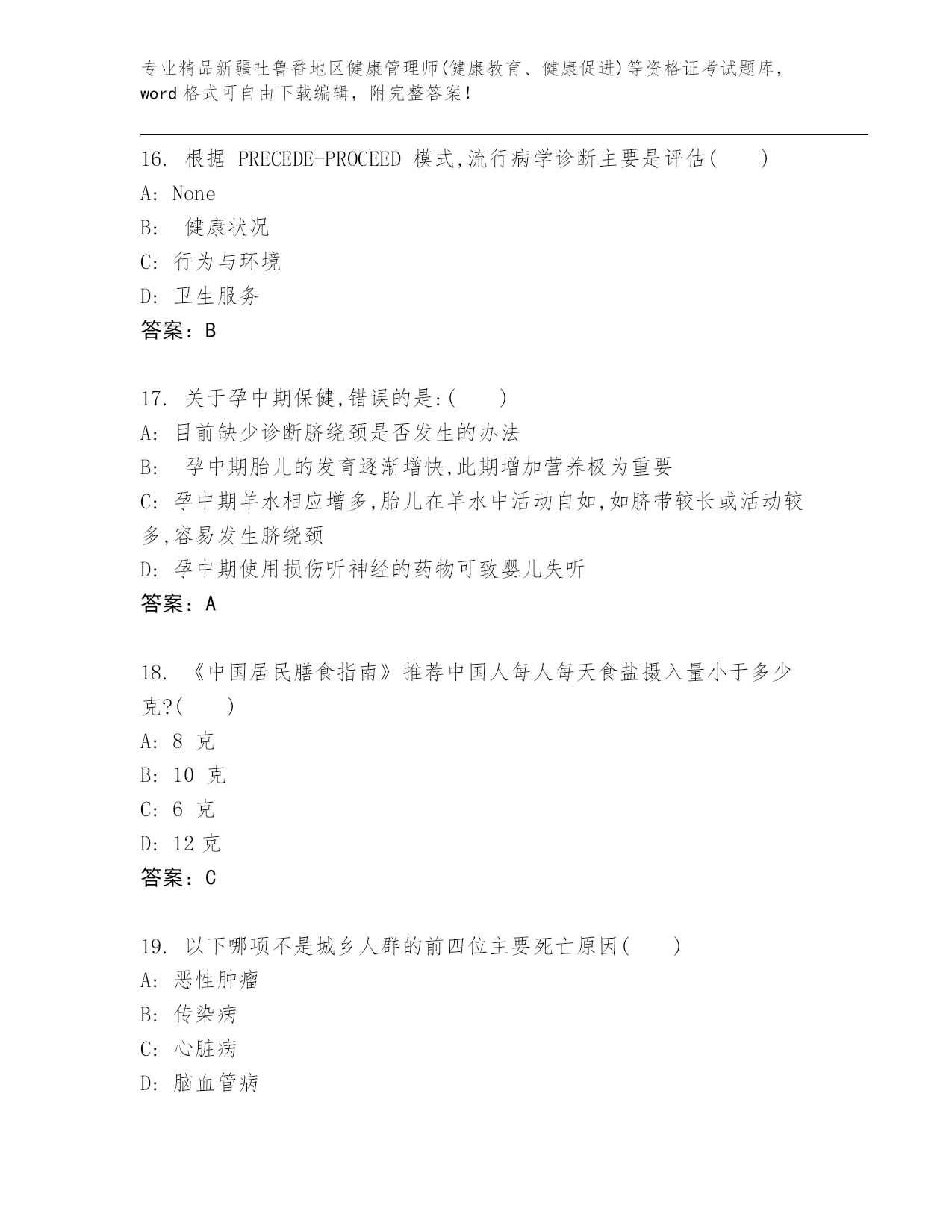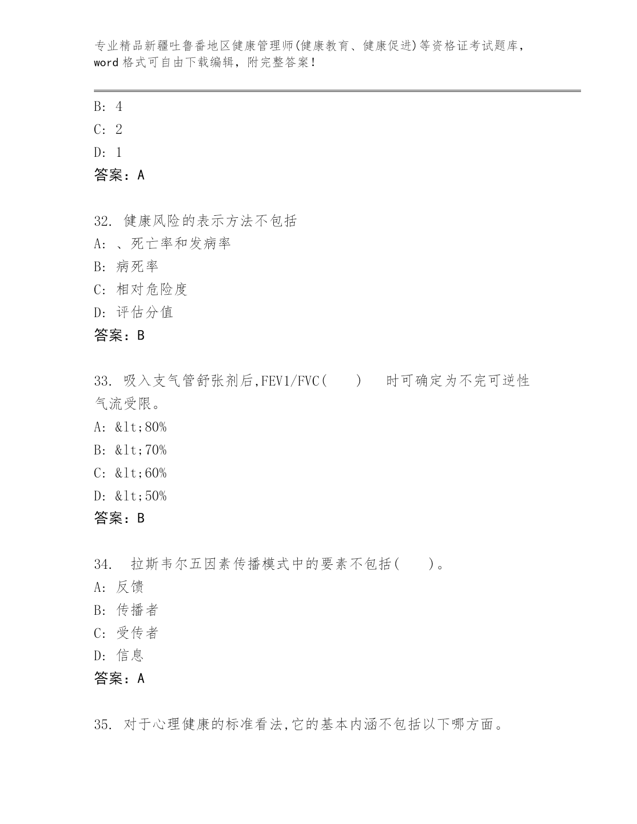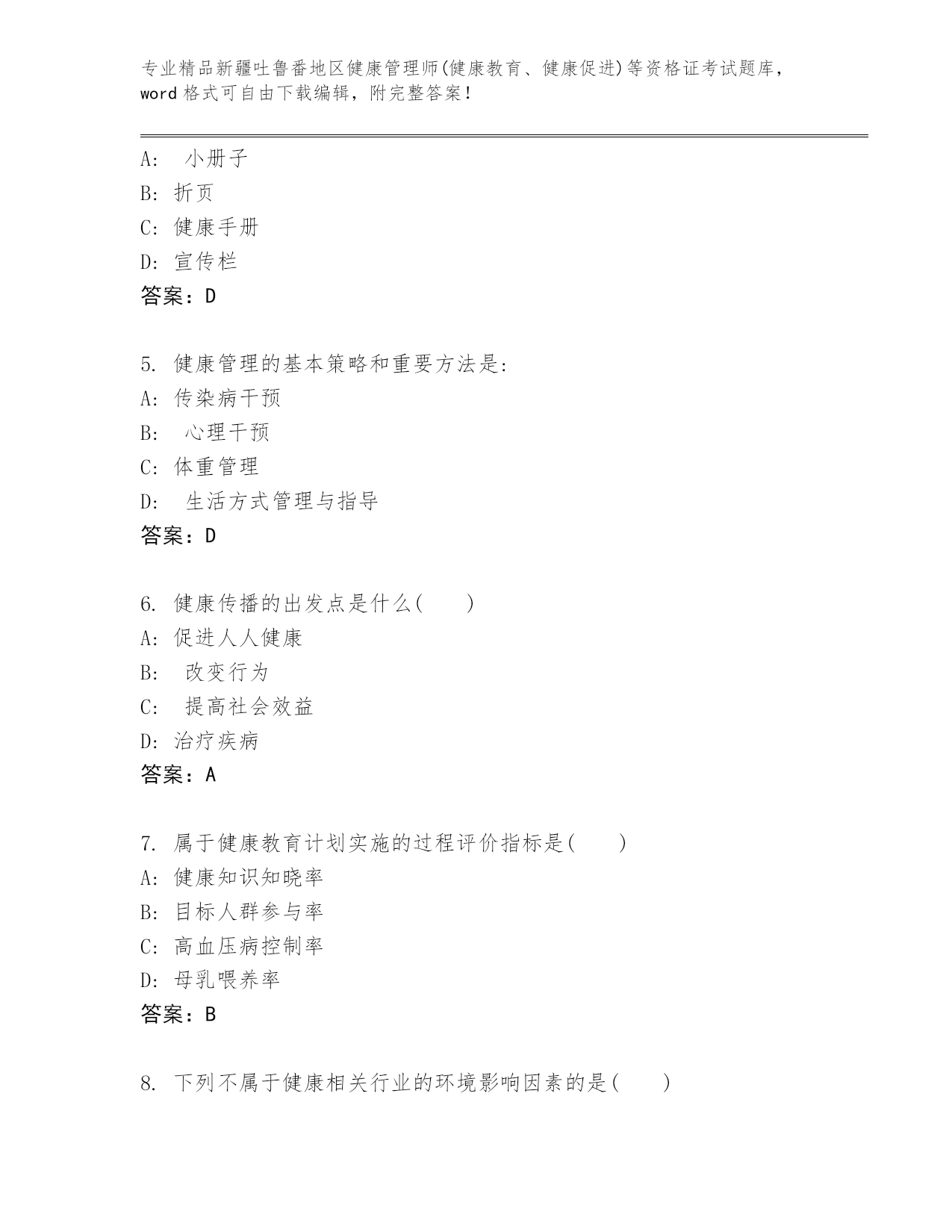 新疆吐鲁番地区健康管理师(健康教育、健康促进)等资格证考试a4版打印.docx