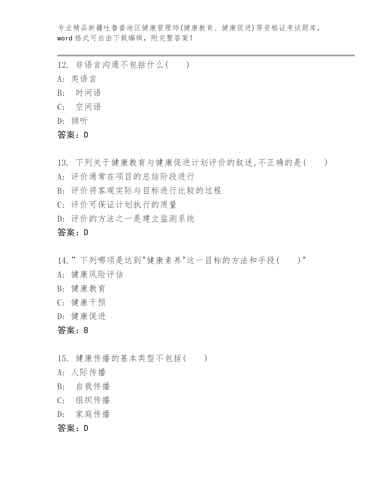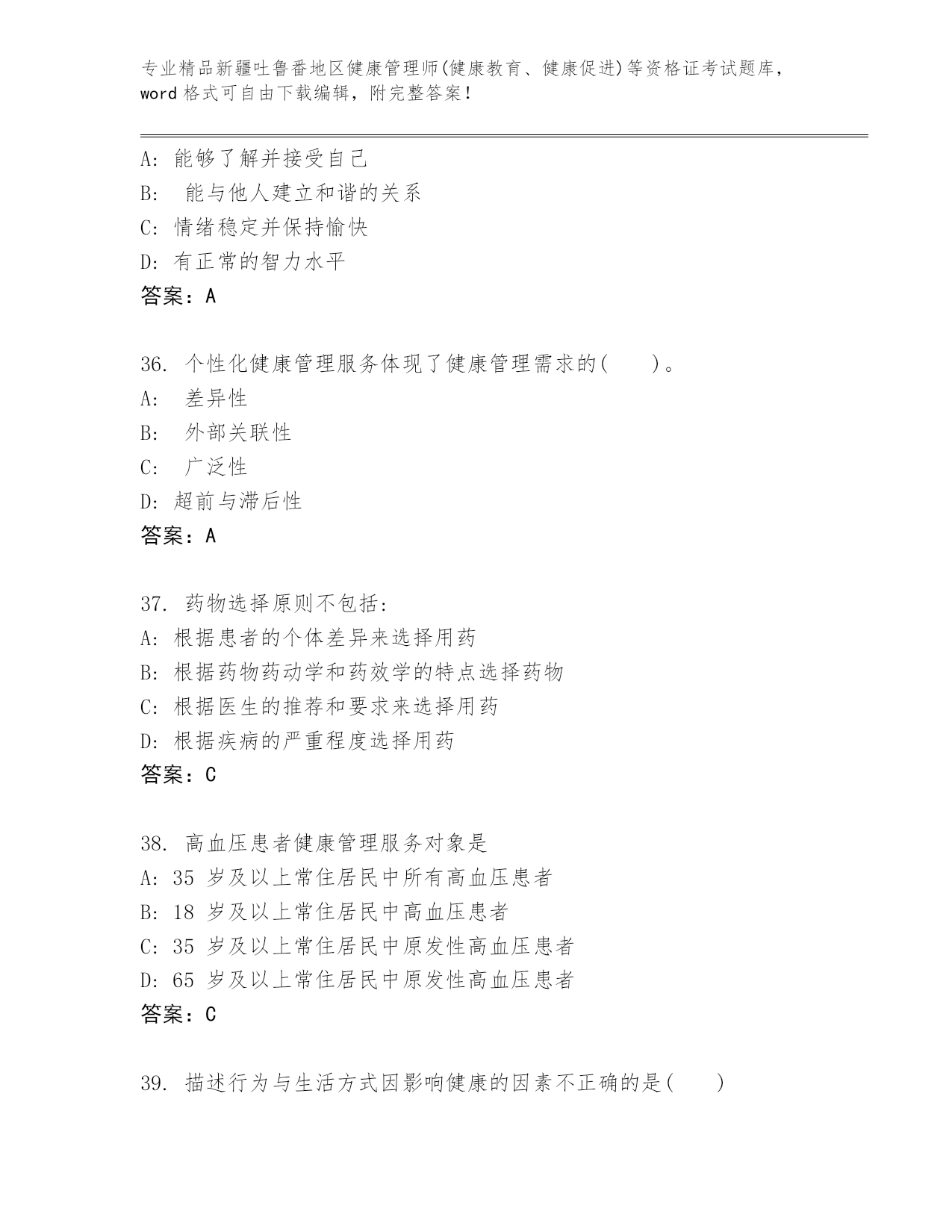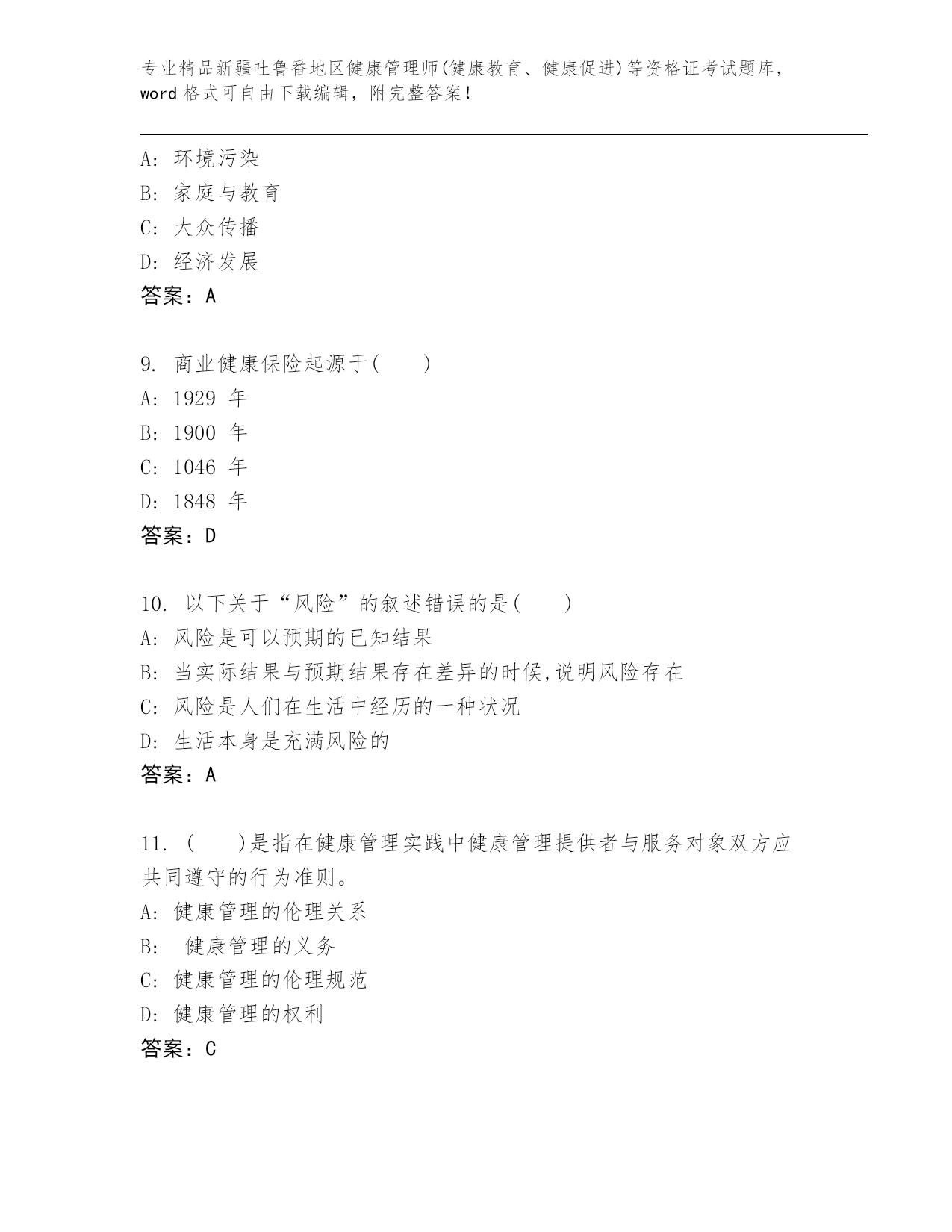 新疆吐鲁番地区健康管理师(健康教育、健康促进)等资格证考试a4版打印.docx