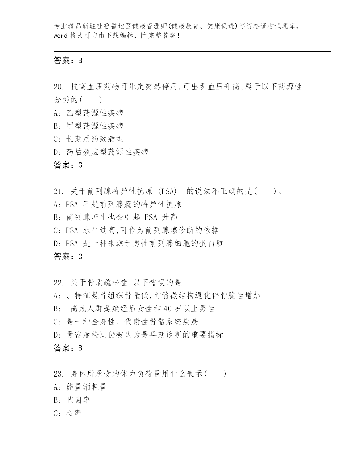 新疆吐鲁番地区健康管理师(健康教育、健康促进)等资格证考试a4版打印