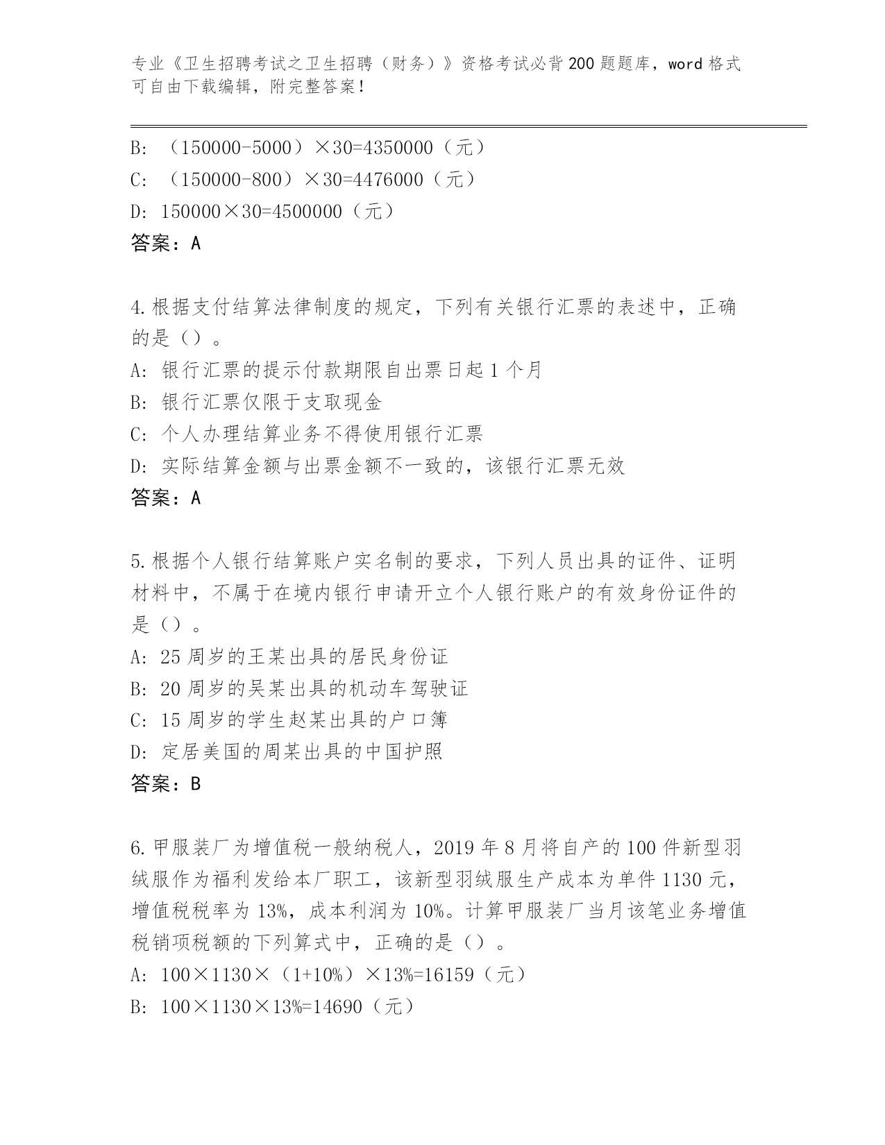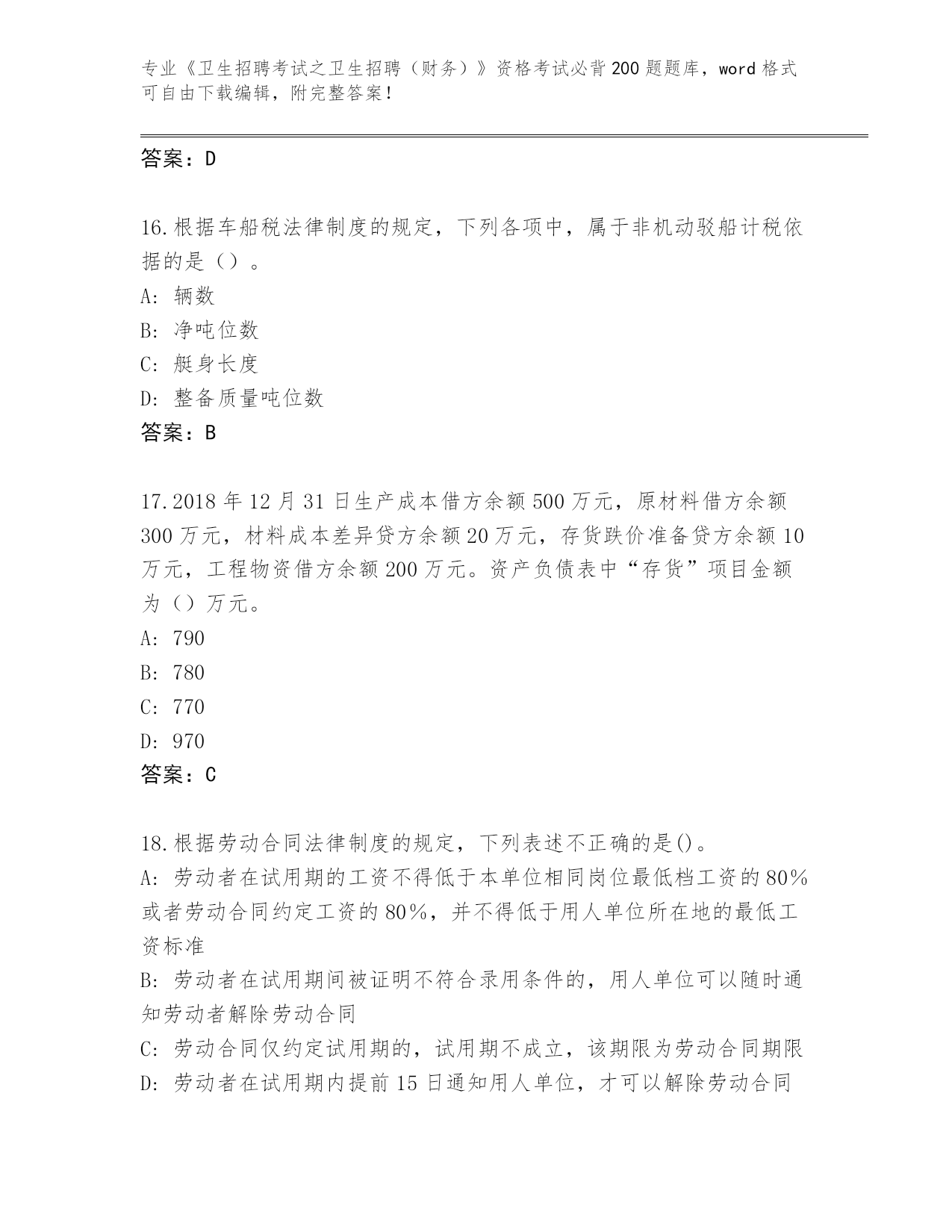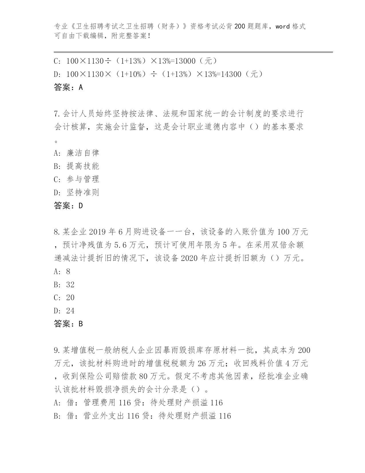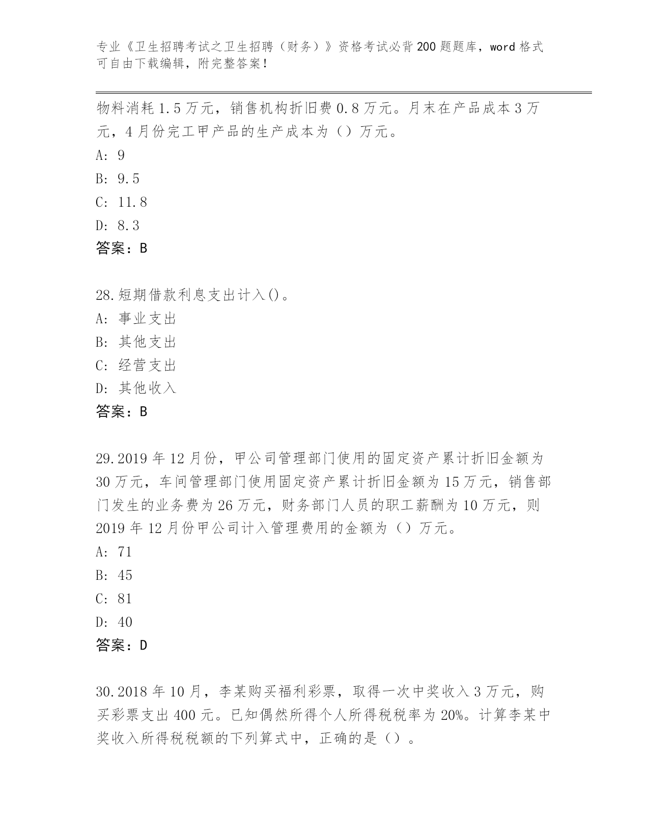 历年黑龙江省《卫生招聘考试之卫生招聘(财务)》资格考试必背200题题库可打印