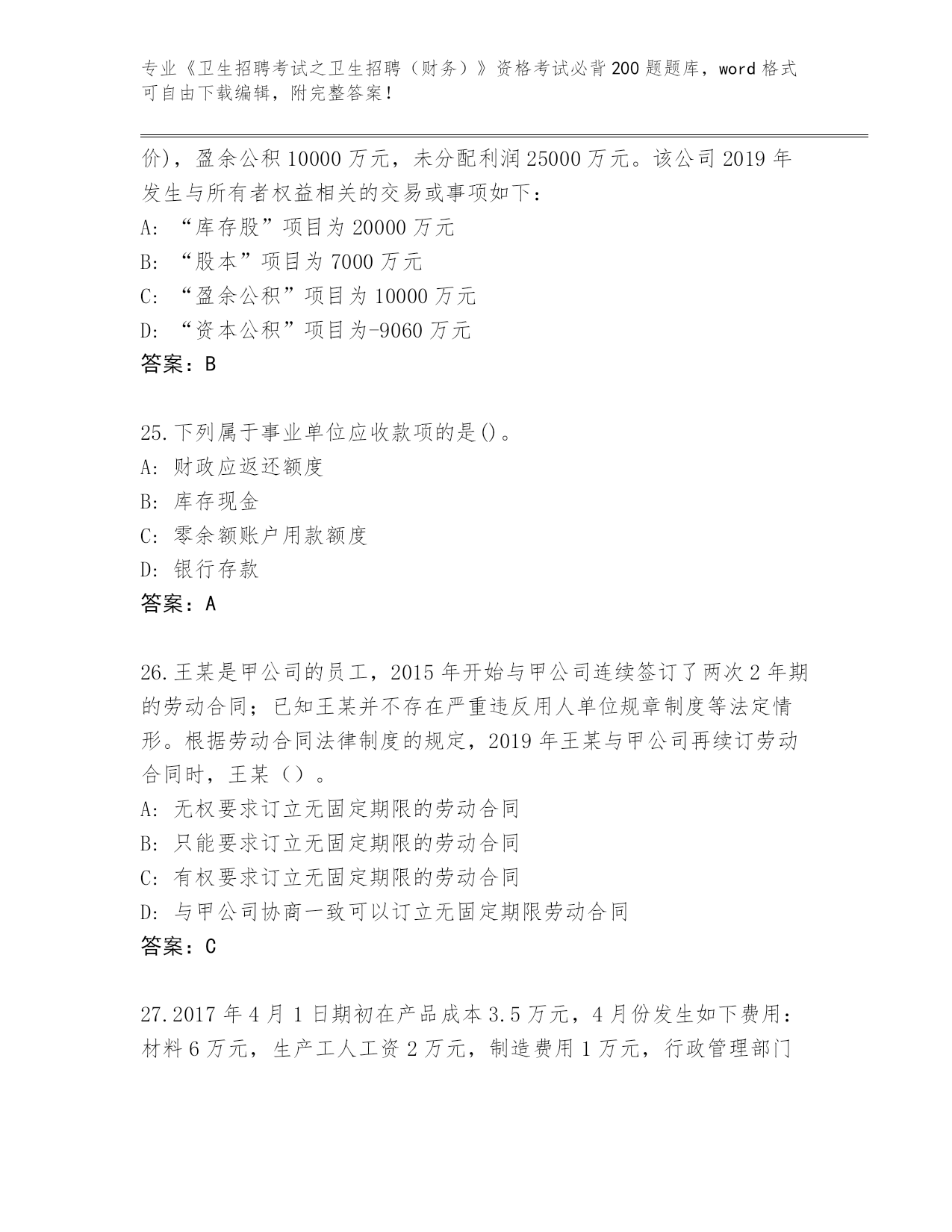 历年河北省《卫生招聘考试之卫生招聘(财务)》资格考试必背200题【精练】