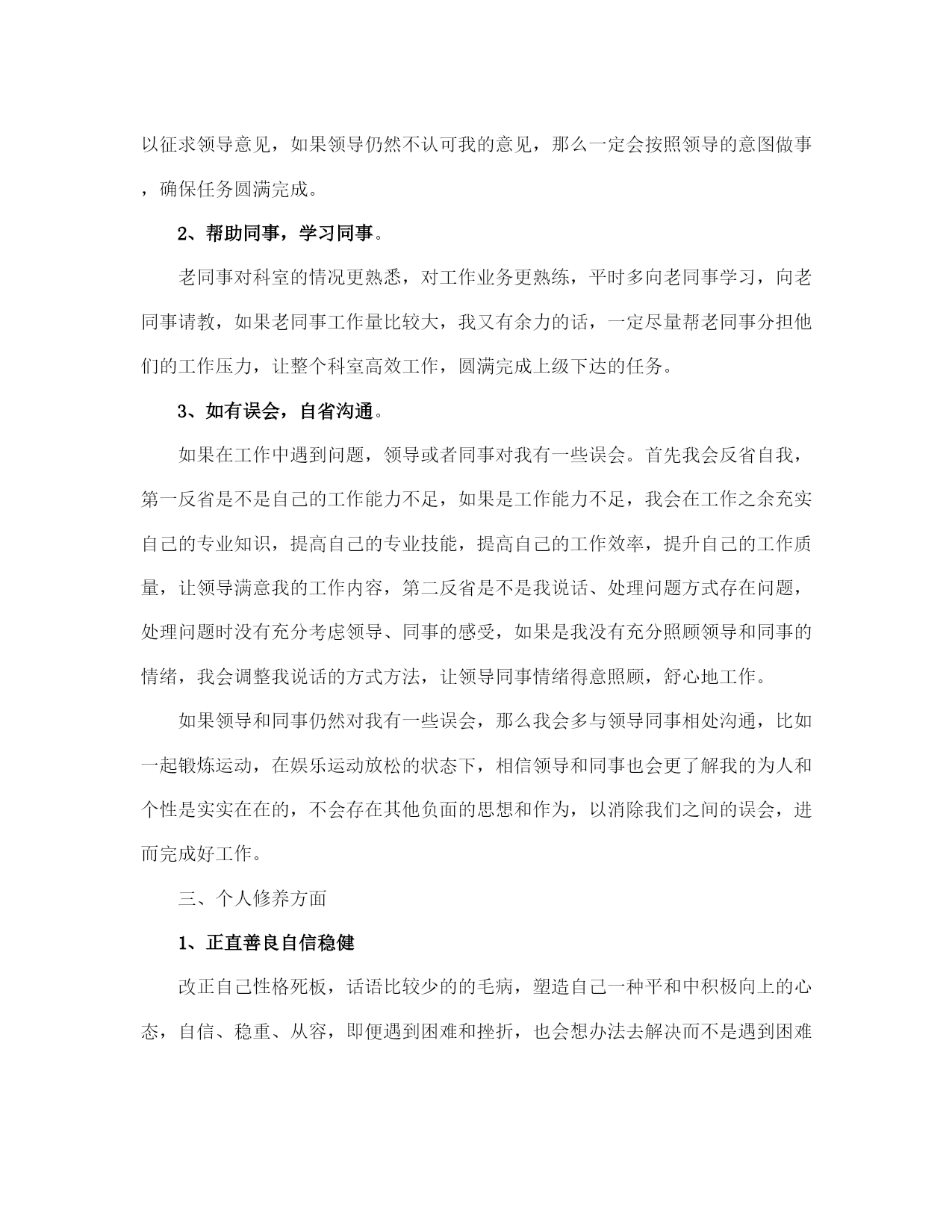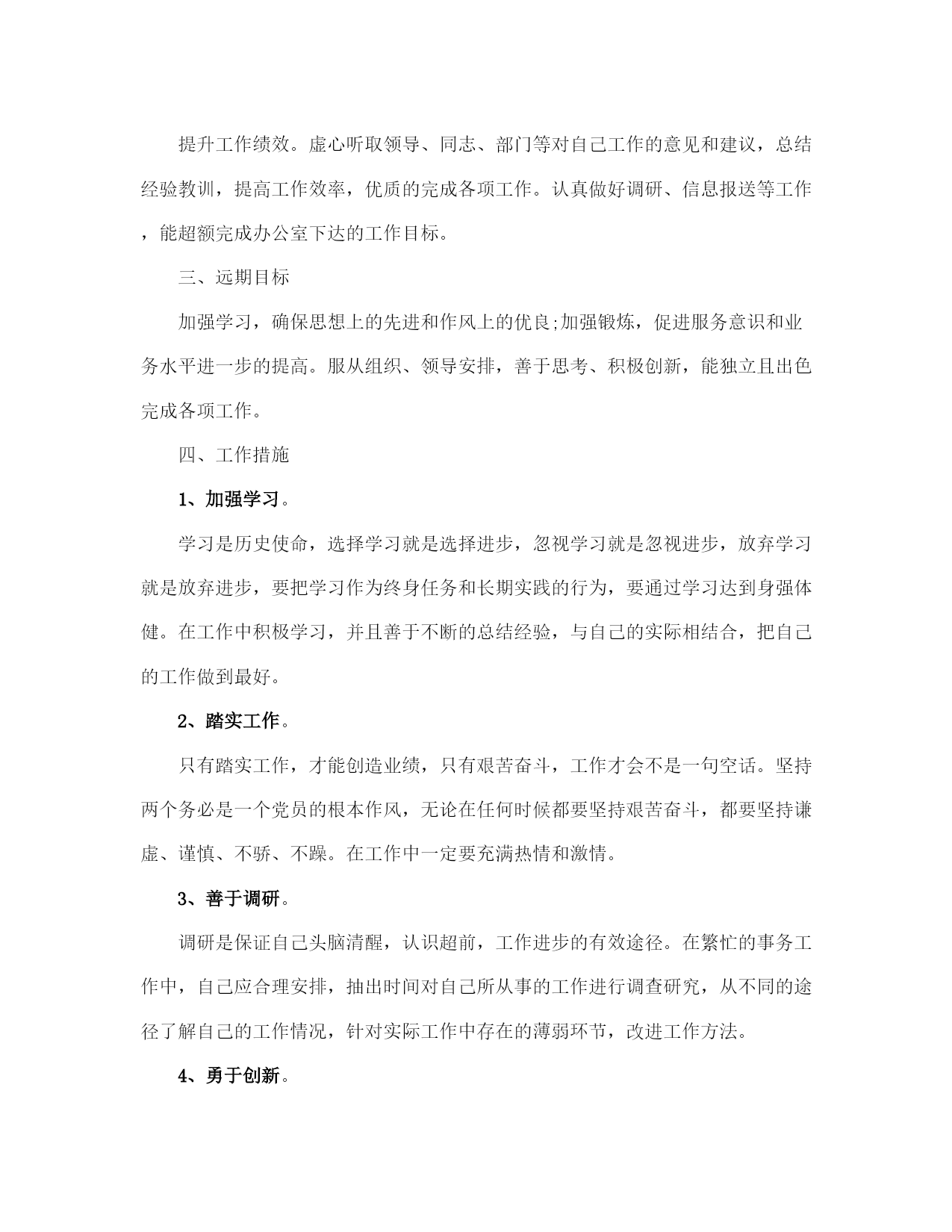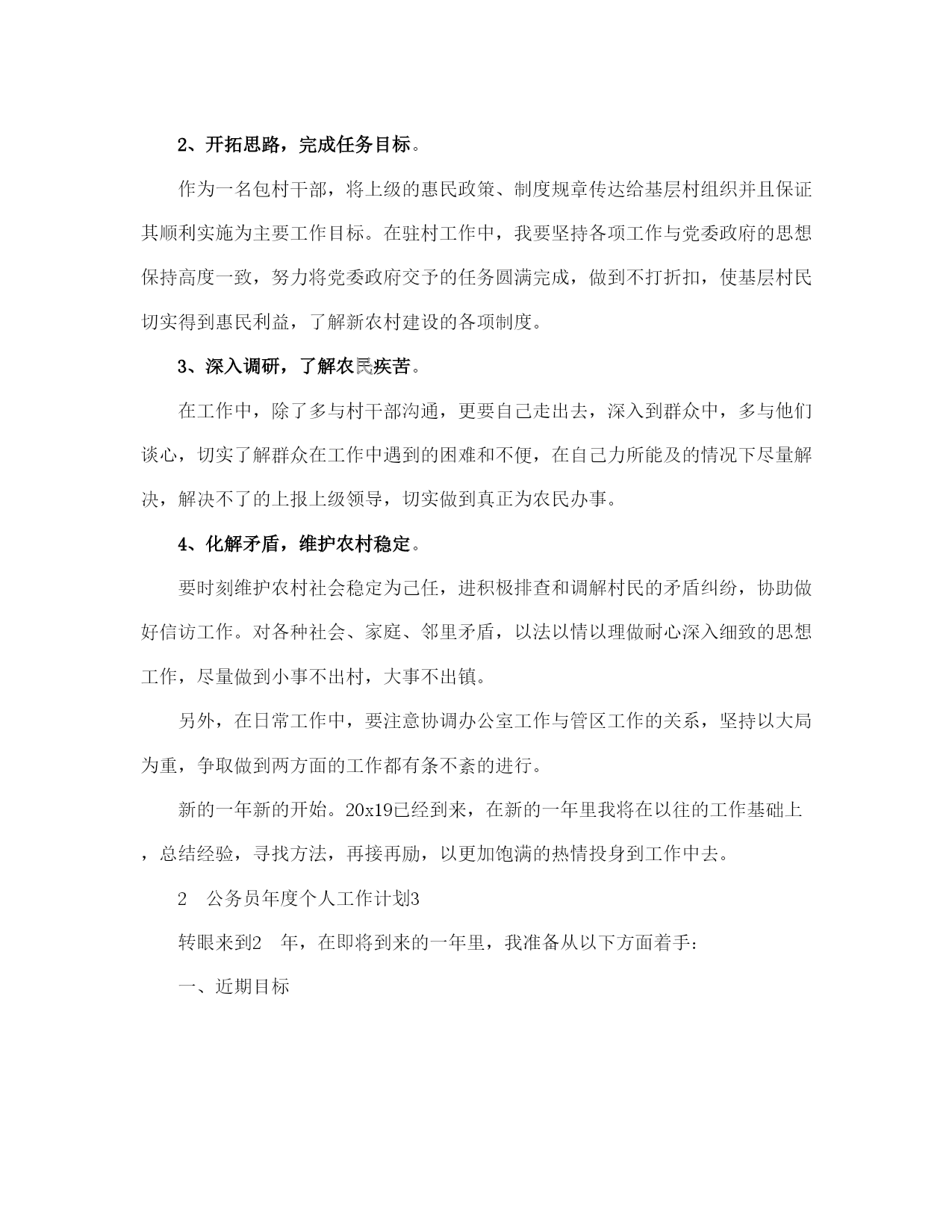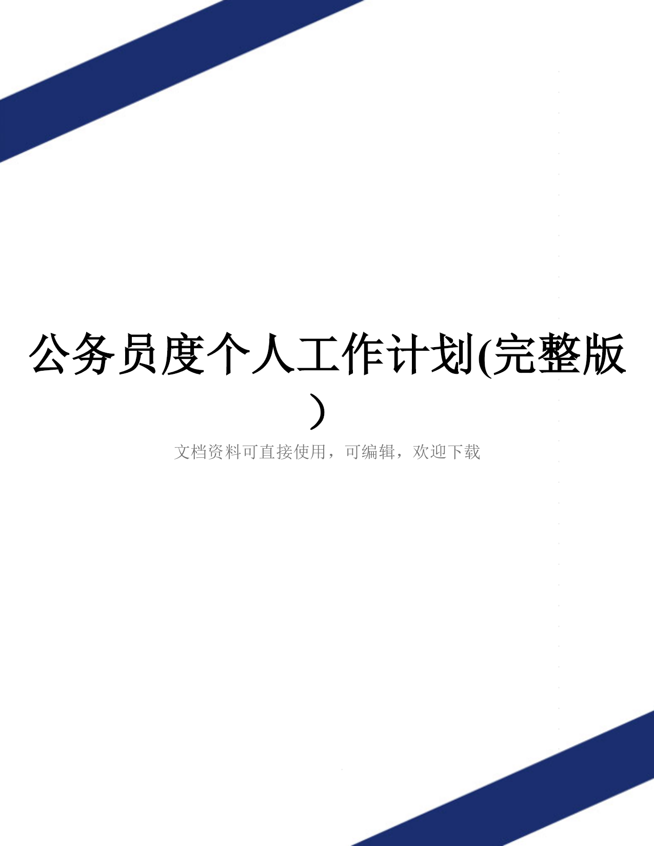 公务员度个人工作计划(完整版)文档资料可直接使用,可编辑,欢迎下载2公务员年度个人工作计划2公务员年度个人工作计划1考入公务员工作系统,一路走来,历尽坎坷,有辛苦有感动,工作机会来之不易,我一定会加倍珍惜这个工作,发挥我踏实本分的这个特点,尊重领导,做好本职工作,让领导更省心,让同事更舒心。面对即将到来的2年工作,我会认真对待,从以下几个方面着手准备:一、工作规划方面1、提高认识充满热情地方志有着记载历史、教育后代、为后人从政治层面提供借鉴等作用,所以意义重大,我要从历史的视角认识到地方志工作的重要性,只有这样,才能安守住枯燥的书写工作,才能更好地将求真务实的作风运用到具体工作中,才能保持足够的热情投入到具体工作中,才能在深耕细作中找到乐趣、找到价值感,更好的地完成领导交代给我的任务。2、加强学习夯实基础第一、通过互联网搜索地方志办公室具体的工作内容和大致方向。在xx了解学习xx的历史轨迹、地理环境、气候现状、资源分布、行政区域划分、人口民族状况、经济环境、政治、社会建设等相关xx省的背景知识,进一步了解市历史轨迹、自然地理环境、资源分布、工业、农业、服务业、社会建设等相关的背景知识,以便为今后的工作打下坚实的知识基础。第二、通过xx查阅地区志,市年鉴,了解市年鉴的大致内容情况,比如分为细化层级为篇、章、节,从篇的层级来看大概有市委、市政府、人大、工会妇联共青团、军事、法制、经济管理、社会等等,具体的行文风格,数据来源,什么是重点内容,大致了解后方便以后工作进一步细化、完善,以后今后工作少走弯路。第三、作为新人,要在志鉴论坛、志鉴纵横、修志法苑中阅读、学习前辈们对地方志工作的观点、看法、要求,吸取精华,了解写志人未来的工作内容、大致方向,可能犯的错误,在未来的实践中不断修正、完善,确保今后的工作让领导和组织满意。第四、通过互联网等新媒体平台了解党最新的动态。比如浏览xx的时政频道—高层动态栏目,了解党和国家领导人的动态,包括外交、参与会议、重大部署等,掌握党的最新形势,以便在今后的工作能紧跟党的指示;让今后的工作更有高度、深度、广度。第五、阅读国务院20xx年下发的《地方志工作条例》,了解国务院对地方志工作的要求,比如对整体工作的规则大致了解,为以后工作能更顺利打下基础。二、人际处理方面1、尊重领导,踏实做事。做好自己份内的工作,实在做事,实在做人,多看他人的优点,少看他人的缺点,对自己要求高一点,对别人宽容大度一点,相信工作氛围就会更融洽团结,工作任务也会完成的更圆满。领导的工作能力和为人处事都是新人学习的榜样,要充分了解领导对工作的具体要求,按照领导的要求按时完成工作,让领导放心,做领导的得力帮手。但是,工作中一定会遇到一些问题,如有些具体的工作的问题我领会不清,或者有自己的看法,会委婉地向领导表达我的看法和意见,在充分尊重领导的前提下以征求领导意见,如果领导仍然不认可我的意见,那么一定会按照领导的意图做事,确保任务圆满完成。2、帮助同事,学习同事。老同事对科室的情况更熟悉,对工作业务更熟练,平时多向老同事学习,向老同事请教,如果老同事工作量比较大,我又有余力的话,一定尽量帮老同事分担他们的工作压力,让整个科室高效工作,圆满完成上级下达的任务。3、如有误会,自省沟通。如果在工作中遇到问题,领导或者同事对我有一些误会。首先我会反省自我,第一反省是不是自己的工作能力不足,如果是工作能力不足,我会在工作之余充实自己的专业知识,提高自己的专业技能,提高自己的工作效率,提升自己的工作质量,让领导满意我的工作内容,第二反省是不是我说话、处理问题方式存在问题,处理问题时没有充分考虑领导、同事的感受,如果是我没有充分照顾领导和同事的情绪,我会调整我说话的方式方法,让领导同事情绪得意照顾,舒心地工作。如果领导和同事仍然对我有一些误会,那么我会多与领导同事相处沟通,比如一起锻炼运动,在娱乐运动放松的状态下,相信领导和同事也会更了解我的为人和个性是实实在在的,不会存在其他负面的思想和作为,以消除我们之间的误会,进而完成好工作。三、个人修养方面1、正直善良自信稳健改正自己性格死板,话语比较少的的毛病,塑造自己一种平和中积极向上的心态,自信、稳重、从容,即便遇到困难和挫折,也会想办法去解决而不是遇到困难只会急躁,生气,那只是无能的表现,多与领导同事沟通,让其他人增进对我的了解,了解我的善良、正直的品质,不会采取不正直的手段去伤害他人。2、胸怀宽广优质工作塑造大格局心态,我们应该有海纳百川的胸怀,新的时代,应该有全球性的视野和格局,充分尊重不同的价值观,即便跟自己的价值观有冲突,但只要不伤害他人、不危害社会,我们就应该包容其他人的个性价值观,而不是否定和打压,只有这样,我们才能充满创造力,更好的在