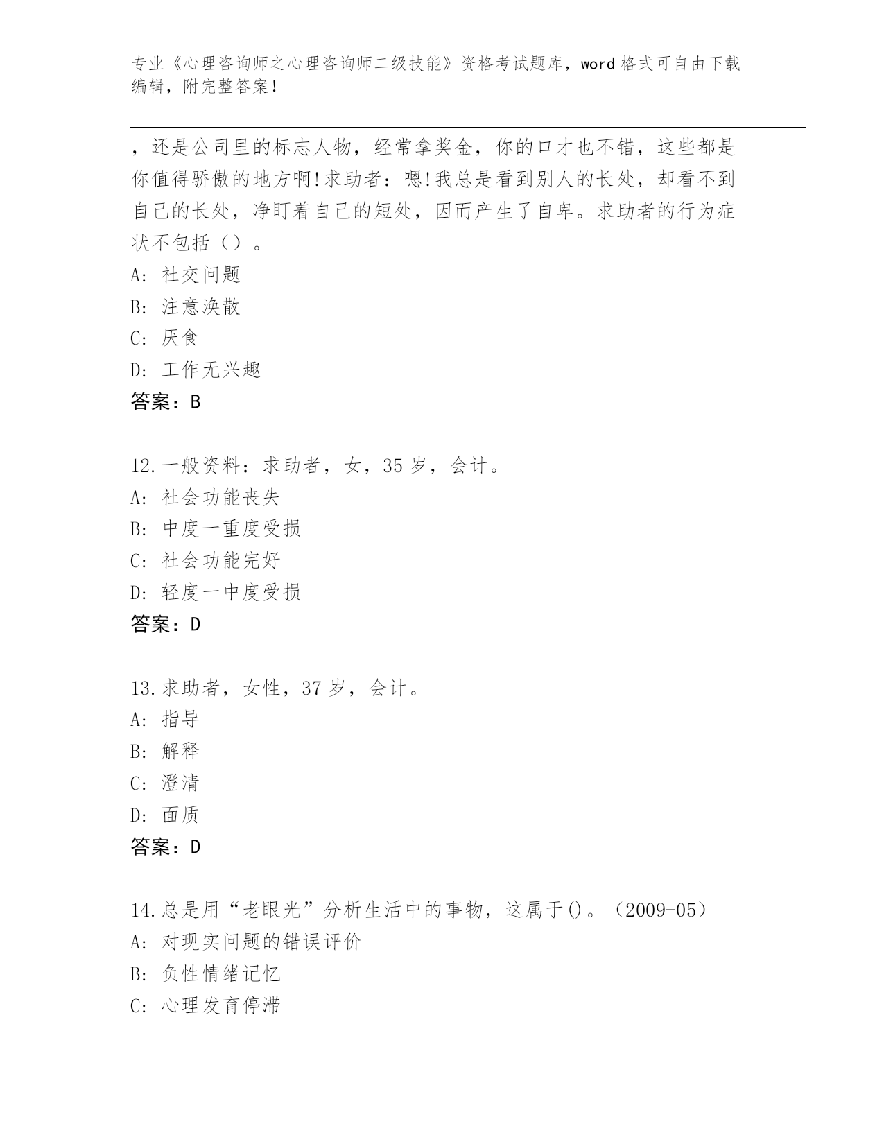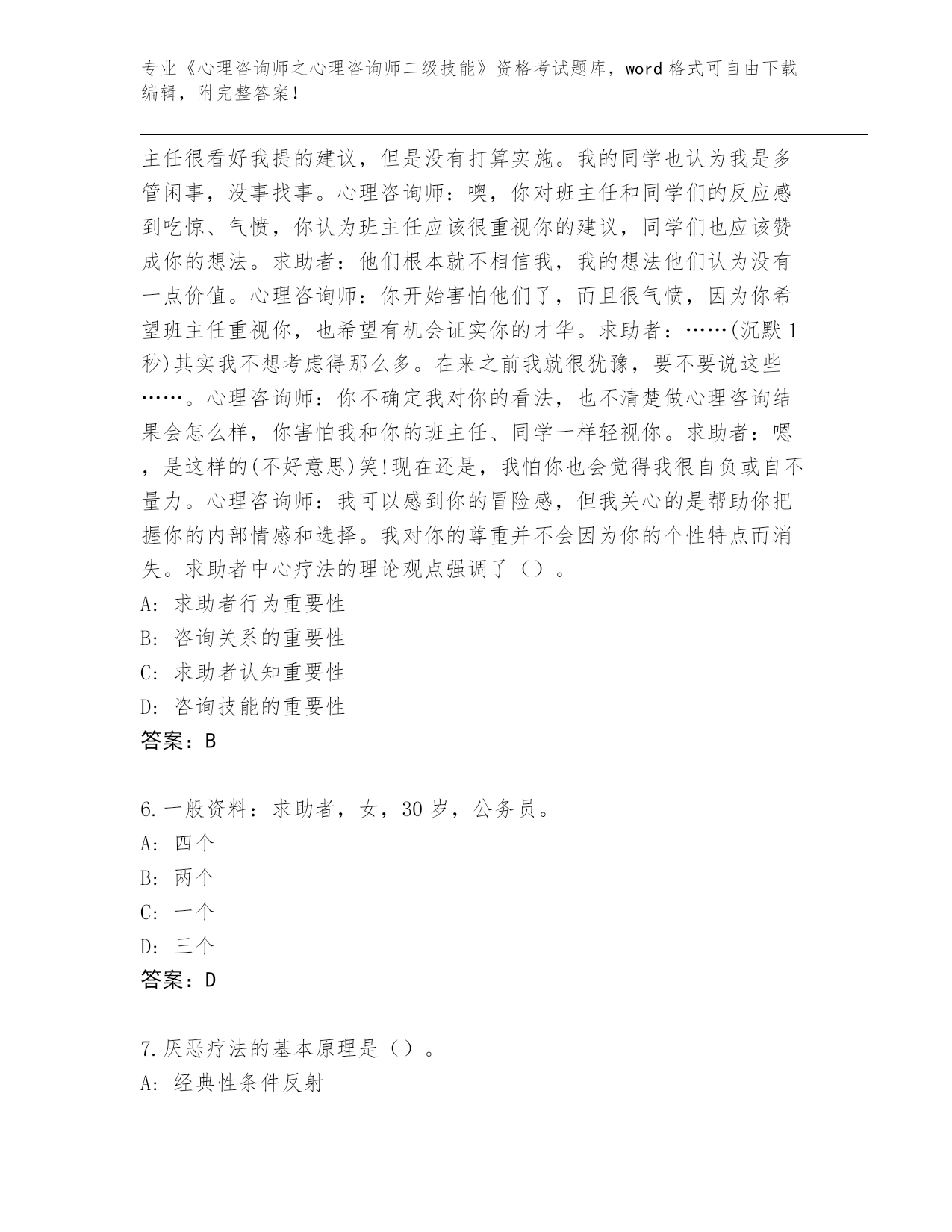 湖南省岳阳楼区完整版《心理咨询师之心理咨询师二级技能》考试必考200题真题加答案解析