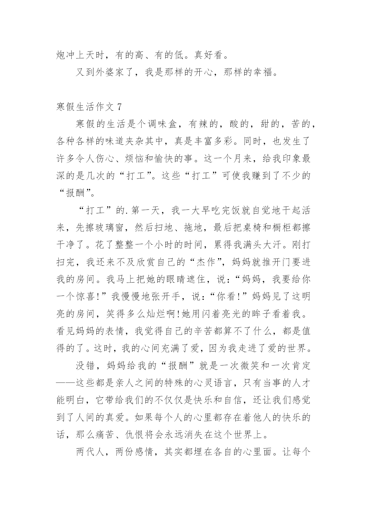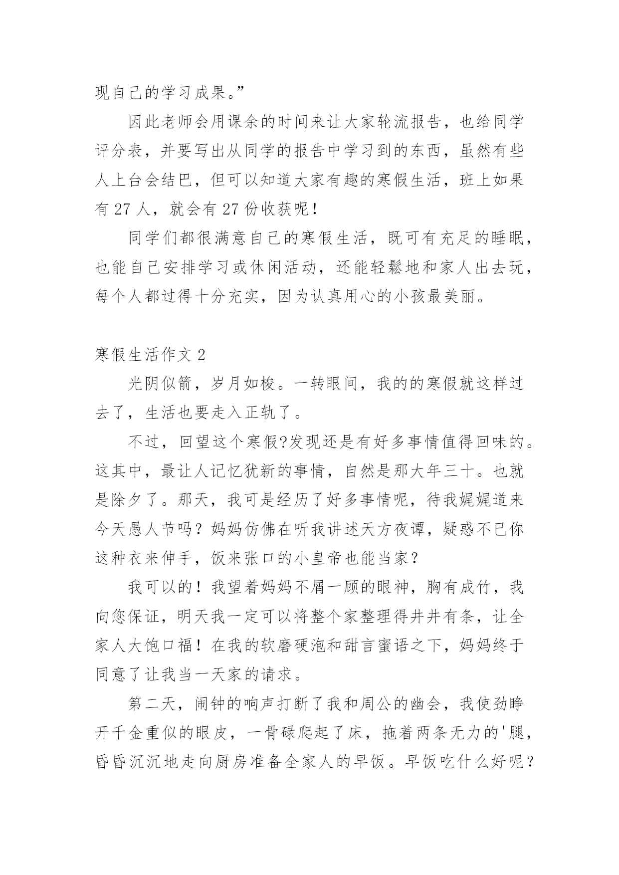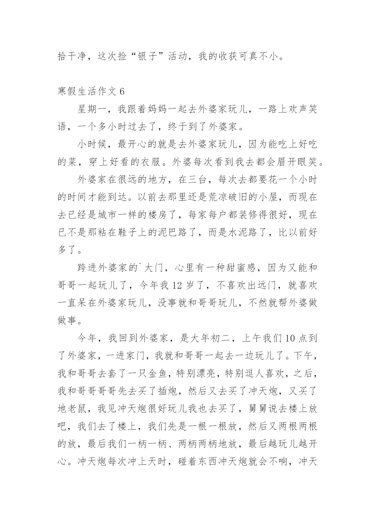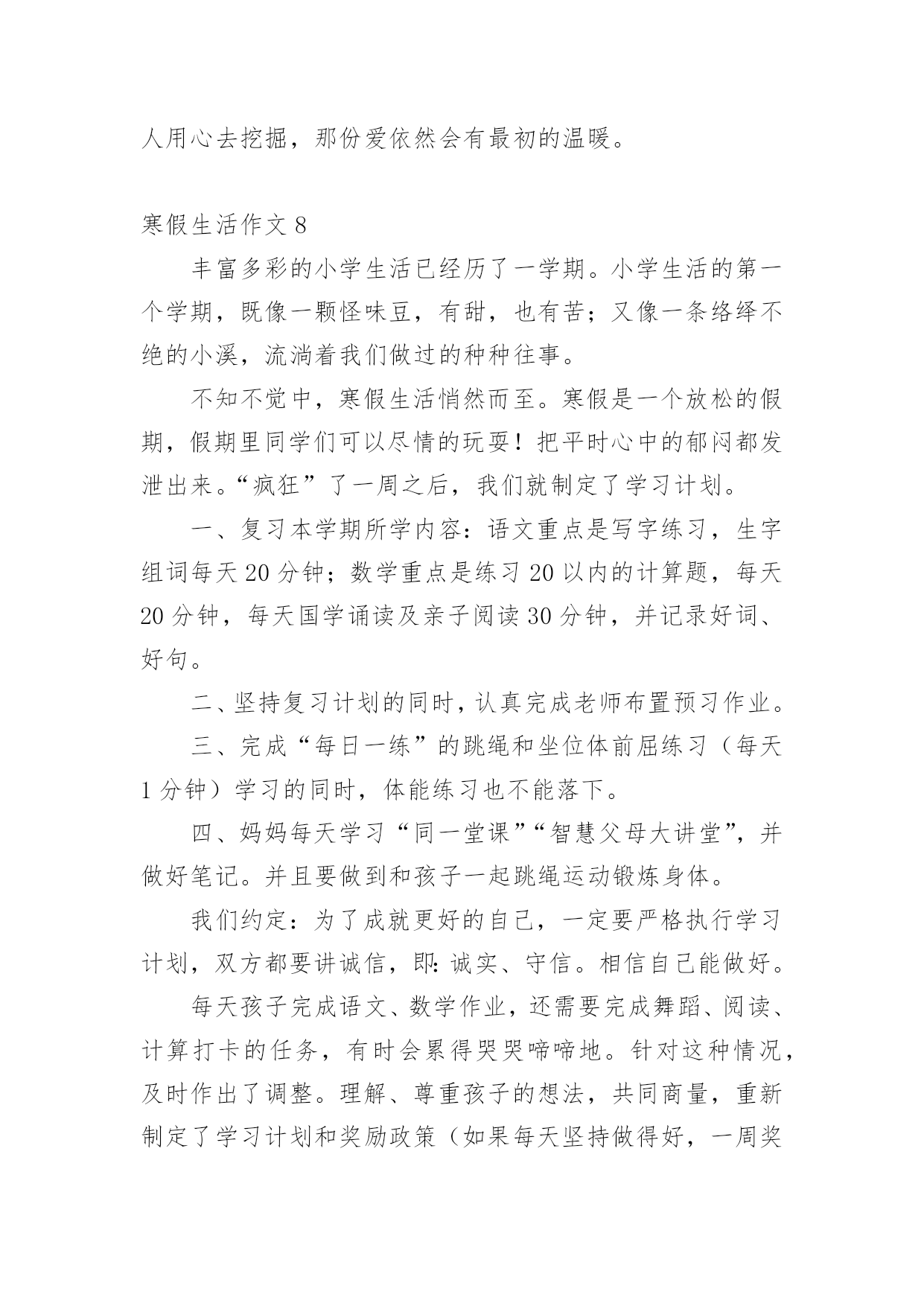 寒假生活作文寒假生活作文共15篇在我们平凡的日常里,大家都有写作文的经历,对作文很是熟悉吧,作文可分为小学作文、中学作文、大学作文(论文)。作文的注意事项有许多,你确定会写吗?下面是小编收集整理的寒假生活作文,供大家参考借鉴,希望可以帮助到有需要的朋友。寒假生活作文1我就读于阳光小学,目前六年级,虽然学校是没有指定寒假作业,我记得以前有寒暑假作业时,其实也没有很多,但各处室的作业都很有趣。现在,老师常用寒假自主学习单来让我们自己安排,等于是自己出作业给自己完成。在班级上有很多人都善用3C产品,利用PPT来呈现自己的寒假生活,有少数几人会和我一样利用书面报告,把参观展览的票根、表演的节目册、劳作作品等等都放进资料夹,纪录着整个寒假的历程,也写下心得纪录。不管如何呈现,寒假作业都是代表成长的纪录,也有同学认为假期中原本就会安排各种自己喜欢的学习活动或是想做的事,寒假作业只是一种要刻意呈现给别人看的记录,像纪璇同学就表示:“我认为学习是自己的事,学了什么,学到哪里,有时未必需要让别人知道,所以学校若是能安排寒假学习经验交流的活动,让大家可以用不同的'方式去呈现自己的学习成果。”因此老师会用课余的时间来让大家轮流报告,也给同学评分表,并要写出从同学的报告中学习到的东西,虽然有些人上台会结巴,但可以知道大家有趣的寒假生活,班上如果有27人,就会有27份收获呢!同学们都很满意自己的寒假生活,既可有充足的睡眠,也能自己安排学习或休闲活动,还能轻鬆地和家人出去玩,每个人都过得十分充实,因为认真用心的小孩最美丽。寒假生活作文2光阴似箭,岁月如梭。一转眼间,我的的寒假就这样过去了,生活也要走入正轨了。不过,回望这个寒假?发现还是有好多事情值得回味的。这其中,最让人记忆犹新的事情,自然是那大年三十。也就是除夕了。那天,我可是经历了好多事情呢,待我娓娓道来今天愚人节吗?妈妈仿佛在听我讲述天方夜谭,疑惑不已你这种衣来伸手,饭来张口的小皇帝也能当家?我可以的!我望着妈妈不屑一顾的眼神,胸有成竹,我向您保证,明天我一定可以将整个家整理得井井有条,让全家人大饱口福!在我的软磨硬泡和甜言蜜语之下,妈妈终于同意了让我当一天家的请求。第二天,闹钟的响声打断了我和周公的幽会,我使劲睁开千金重似的眼皮,一骨碌爬起了床,拖着两条无力的'腿,昏昏沉沉地走向厨房准备全家人的早饭。早饭吃什么好呢?不如直接热牛奶吧,省时又省力。心里打好小算盘后,我连忙烧开了水,将几瓶牛奶往里面一放,以迅雷不及掩耳盗铃之势,冲向客厅,打开电视机,津津有味地看起了我最喜欢的电视剧。咕噜咕噜什么声音?沉醉在精彩至极的电视剧的我才猛然想起:我还在热牛奶!我拖鞋都顾不得穿,让暖暖的脚丫子冬天冰冷的地板上四处跑动,来到厨房,虽然牛奶并没有撑破肚皮溢出来,但水娃娃已经蹦出了锅,整个厨房一片狼藉。我立刻收拾了残局,才与爸爸妈妈一起吃早饭。女儿啊,中午饭做好点啊,菜和肉都在冰箱里,我会从单位赶过来尝尝毕竟我是第一次当家,妈妈很是不放心,滔滔不绝地念着紧箍咒。我认真地点着头,将妈妈的话牢记在心。寒假生活作文3寒假的时候,我去图书馆办了张借书证,只见管理员阿姨递给我一张纸,我仔细一看,原来是招小图书管理员。学一样,会一样。既可以学会一样本领,又可以多记借几本书,何乐不为呢?我就迫不及待得填好了表格,管理员叫我回家等电话。我盼星星盼月亮终于把这一天给盼来了,第二天早上9点,我准时来到了图书馆,乘着电梯上到5楼,我和妈妈来到了一个宽敞的教室,里面非常安静,没有一个人说话,我也很快地融入了这个集体。所有的人到齐了,开始上课了,老师先给我们讲了一些馆的分布、馆的各种作用和书的分类。最后一步就是怎么把书放回“家”里,老师说:“先看字母,按照字母表A—Z的`顺序排,后面数字中,有横线比没的先,小的比大的先,如果一样,可以看第二排。老师出了道比大小,我很快就想出来了。当大家都学会了接下来就开始实践,我按照老师教的办法认真找,一本本书终于像迷路的小孩被警察叔叔送回了家。真是一分耕耘一分收获啊!经过了一个半小时工作,我把四五车书送回了“家”,真为自己感到自豪!其实我的工作还很多,比如“制止吵闹,帮助找书等等。下次你来台州图书馆看到一位胸前挂着“小小图书管理员”的牌子的小男孩,那可能就是我,我很乐意为你服务哦!寒假生活作文4要开学了,大家也要把心思放到学习上了,不应该在像寒假那样玩了,要言归正传了,立刻就要进入小学非常重要的时候了——小学六年级下册,立刻就要进入初中,立刻就要进入少年年代了。抓紧时间开始学习,抓紧这一分一秒来学习,不可以费时,在一个多月的寒假里大家也在学习,当然也在玩了,目前大家就要学习了。在这个寒假中我也挺想我的同学的,时不时的我也会给几个好朋友打打电话、聊聊天。立刻就要开学了,又可以见到我的同学了,心里有一种说