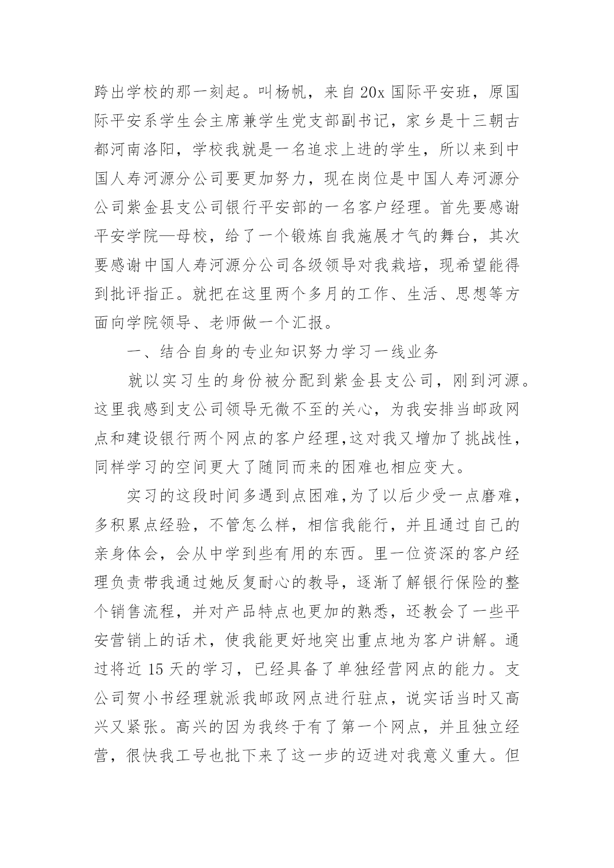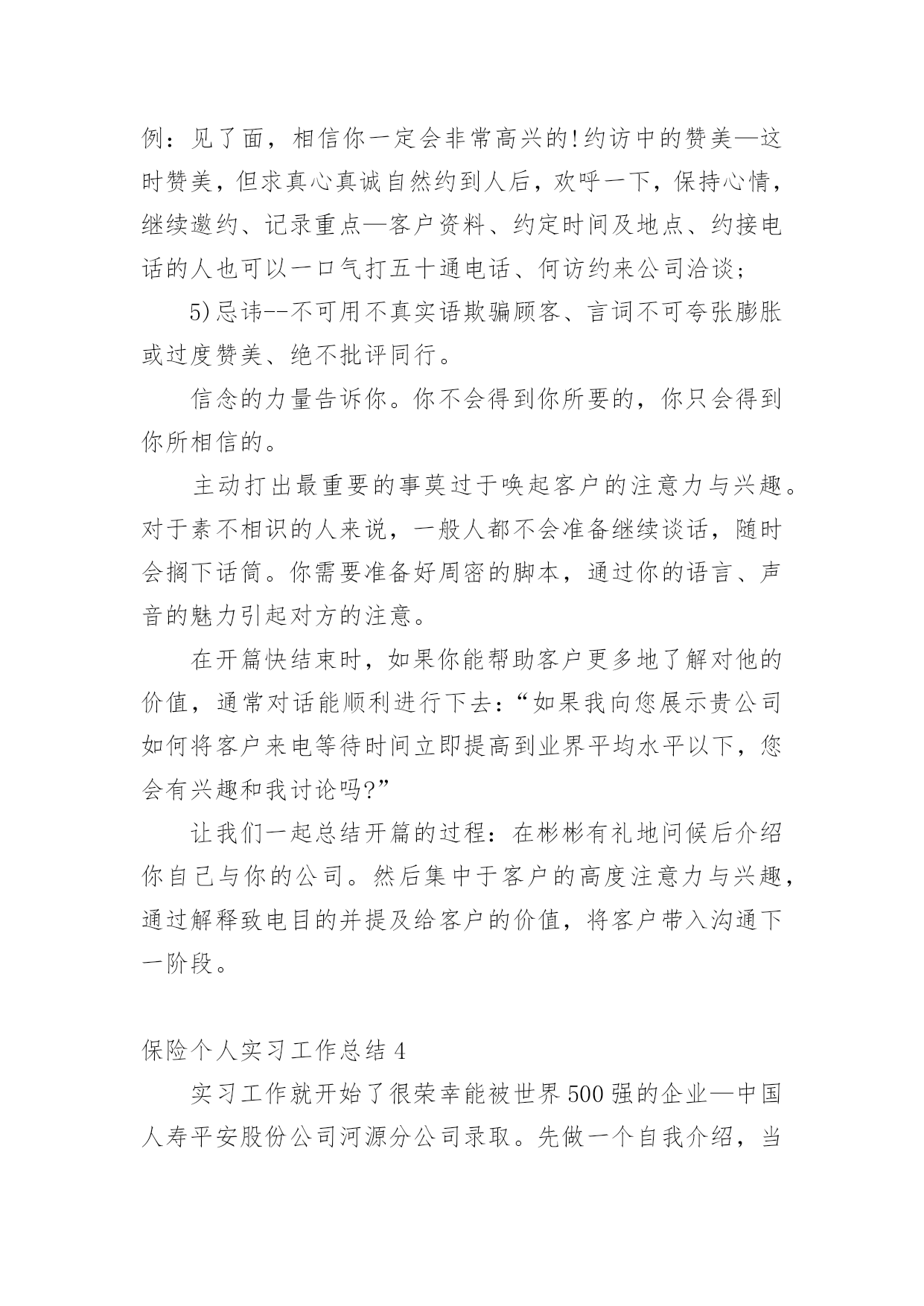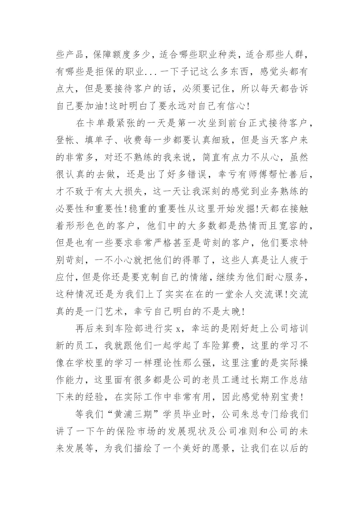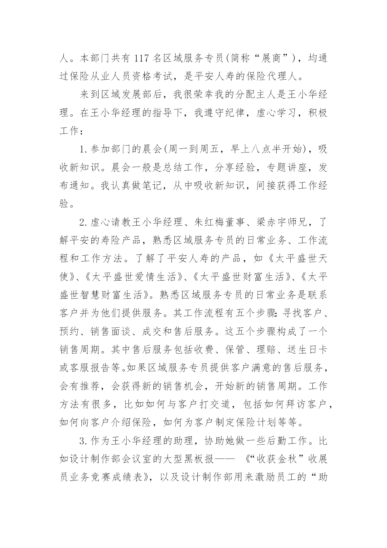 保险个人实习工作总结总结是对取得的成绩、存在的问题及得到的经验和教训等方面情况进行评价与描述的一种书面材料,它可以提升我们发现问题的能力,不如静下心来好好写写总结吧。总结怎么写才是正确的呢?下面是小编精心整理的保险个人实习工作总结,欢迎大家借鉴与参考,希望对大家有所帮助。保险个人实习工作总结1暑假第一次留在进行实x,有幸能够来到x保险代理公司接受了一个月的锻炼,直接深入到社会职场中,与客户面对面的接触与交流,一方面把自己所学知识与实践直接相结合,另一方面又学到了许多学校里所学不到的经验与教训,从而使自己对自己有了更加全面的了解,因为自己学的是金融进入保险有些不情愿,但是一个暑假的实习结束,自己觉得其实这样的经历才是自己最想要的!7月13号正式来到x,老总热情的接待我们,然后我就被安排到了卡单部实x,”卡单”这个概念是第一次接触,其实就是短期意外险的另一种说法,这是最先让我觉得新鲜的东西。然后开始学习如何填写保单,第一天就填错了几张保单,发现自己原来是这么粗心,好在公司对我们都非常宽容,让我非常感动。这时明白了什么是宽容!接下来的几天我就一直在卡单部实x,每天每天要背卡单产品的信息,哪家保险公司有哪些产品,保障额度多少,适合哪些职业种类,适合那些人群,有哪些是拒保的职业...一下子记这么多东西,感觉头都有点大,但是要接待客户的话,必须要记住,所以每天都告诉自己要加油!这时明白了要永远对自己有信心!在卡单最紧张的一天是第一次坐到前台正式接待客户,登帐、填单子、收费每一步都要认真细致,但是当天客户来的非常多,对还不熟练的我来说,简直有点力不从心,虽然很认真的去做,还是出了好多错误,幸亏有师傅帮忙善后,才不致于有太大损失,这一天让我深刻的感觉到业务熟练的必要性和重要性!稳重的重要性从这里开始发掘!天都在接触着形形色色的客户,他们中的大多数都是热情而且宽容的,但是也有一些要求非常严格甚至是苛刻的客户,他们要求特别苛刻,一不小心就把他们的得罪了,这些人真是让人疲于应付,但是你还是要克制自己的情绪,继续为他们耐心服务,这种情况还是为我们上了实实在在的一堂余人交流课!交流真的是一门艺术,幸亏自己明白的不是太晚!再后来到车险部进行实x,幸运的是刚好赶上公司培训新的员工,我就跟他们一起学起了车险算费,这里的学习不像在学校里的学习一样理论性那么强,这里注重的是实际操作能力,这里面有很多都是公司的老员工通过长期工作总结下来的经验,在实际工作中非常有用,因此感觉特别宝贵!等我们“黄浦三期”学员毕业时,公司朱总专门给我们讲了一下午的保险市场的发展现状及公司准则和公司的未来发展等,为我们描绘了一个美好的愿景,让我们在以后的工作中既不至于太盲目,也不至于没有动力!公司现在与中国石化合作在很多加油站点开了一些车险的直销网点,这在全国乃至全世界都是一个创新,而且在公司良好的管理方式的运作下,正在有条不紊的开展,让人感觉到创新的力量!真的非常佩服老总的头脑!这在我们以前接触保险的时候根本就没有想过的事情,想不到竟然在市场上悄然萌发,并展现出强大的生命力,真是震撼在以后的学习中告诉自己一定要懂得活学活用,读死书,死读书竟会变得没有未来!自己在x的每一天更多的是在发现自己,加速自己的成长,但是这种锻炼也是要付出代价的,自己每天早上挤公交从武昌到汉口,下午在从武昌到汉口,每天这么轮回!搞到自己现在看到汽车都有点晕,好在还知道坚持!坚持去发现美好的东西,学习有用的知识,虽然有点苦,但是痛并快乐着!保险个人实习工作总结2一、实习的目的和要求毕业实习的目的是接触现实,了解社会,增强劳动观点、社会主义奉献精神和责任感;学习业务知识和管理知识,巩固所学理论,获取本专业的实践知识,培养初步的实际工作能力和专业技能。具体要求1.培养从事经纪中介工作的业务能力。了解和熟悉保险代理人的日常业务和工作流程,学会工作。2.理论联系实际,学会运用所学的基础理论、基础知识和基本技能解决经纪实务中的具体问题。3.虚心学习,全面提高综合素质。在实践中,要虚心学习他们的好素质、好作风、好作风,提高他们的综合素质,把自己培养成合格的经济工作者。4.培养艰苦奋斗精神和社会责任感,形成热爱职业、热爱劳动的良好品德。5.预习,准备就业。找出自己的情况与社会的实际需求之间的差距,在后期学习期间及时补充相关知识,以充足的知识和能力为求职和正式工作做准备。二.实习内容在参加了平安人寿湛江中心支公司的“锦绣人生”业务简报和为期两天的新人培训后,公司安排我们去其中一个部门————区域发展部进行实地演练。区域扩张,又称区域会展,是人寿保险的一种区域营销模式,源于家庭服务的理念。公司派出区域服务专员,在固定区域为客户提供上门服务,就像一个移动商店,通过一个渠道将客户与公司的关系有机结合起来。区域服务工作是保险和综合服务