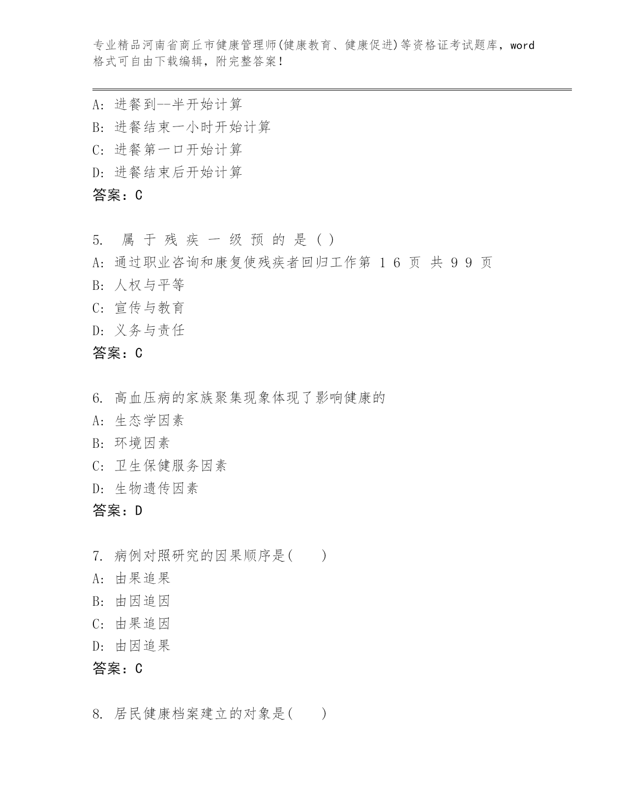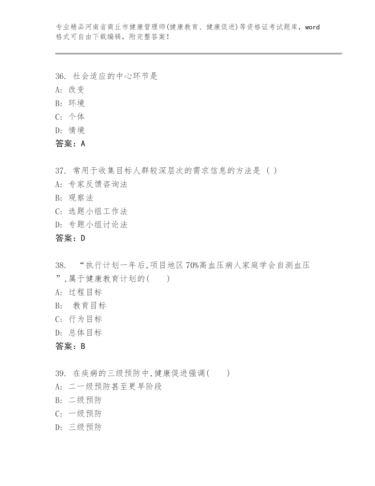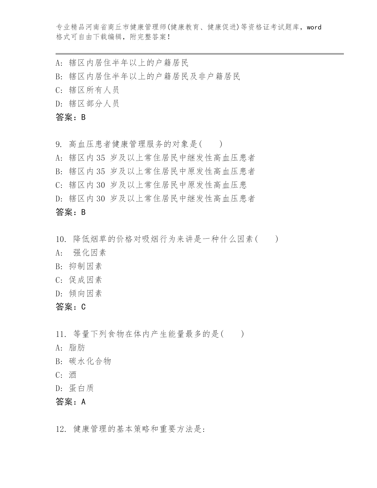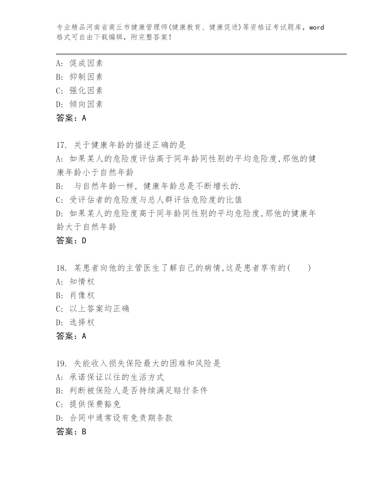 精品河南省商丘市健康管理师(健康教育、健康促进)等资格证考试精选题库【精品】.docx
