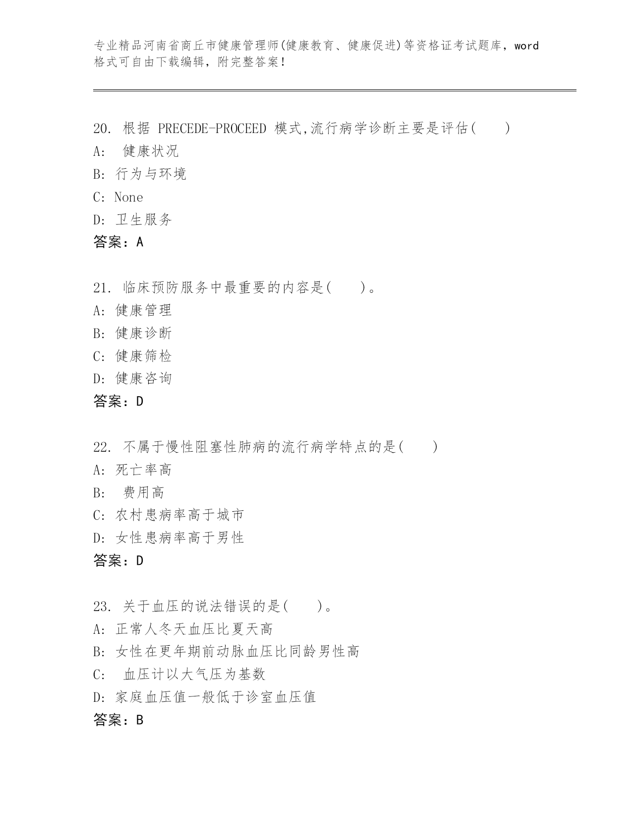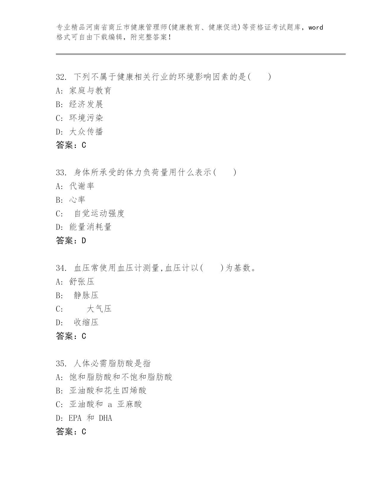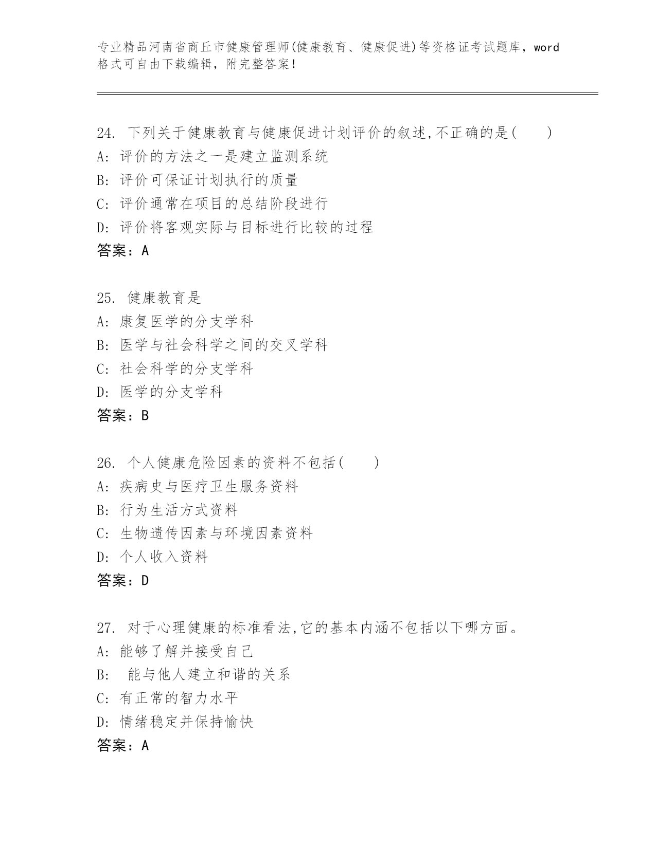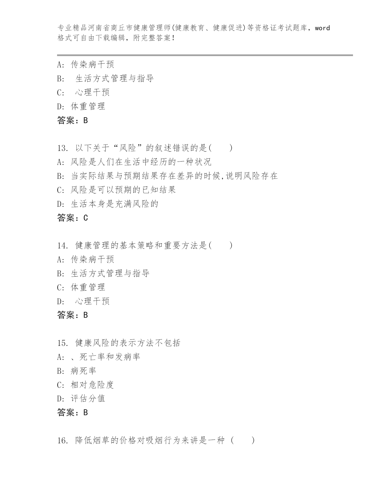 精品河南省商丘市健康管理师(健康教育、健康促进)等资格证考试精选题库【精品】