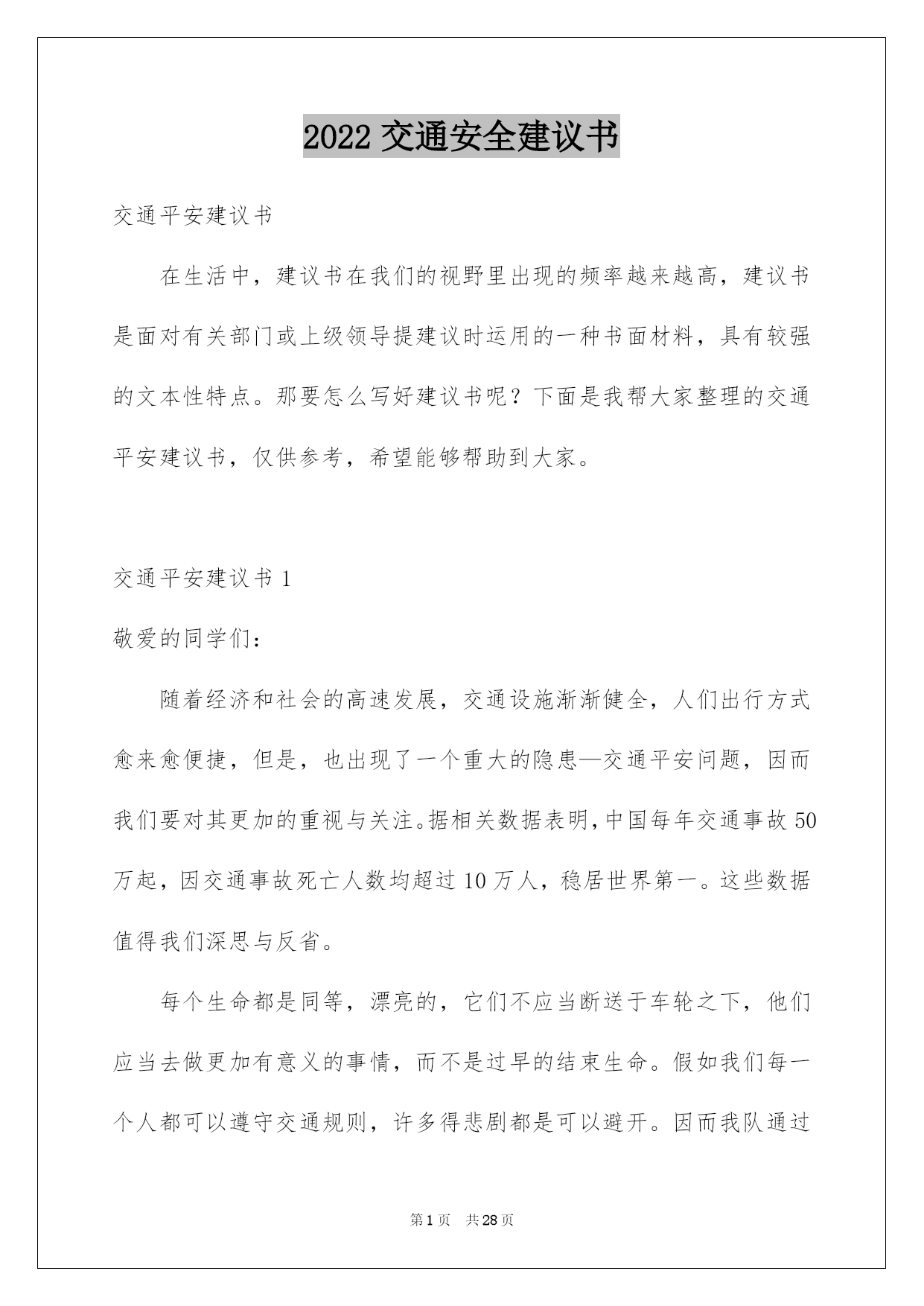 2022交通安全建议书(推荐)编辑最新整理.docx