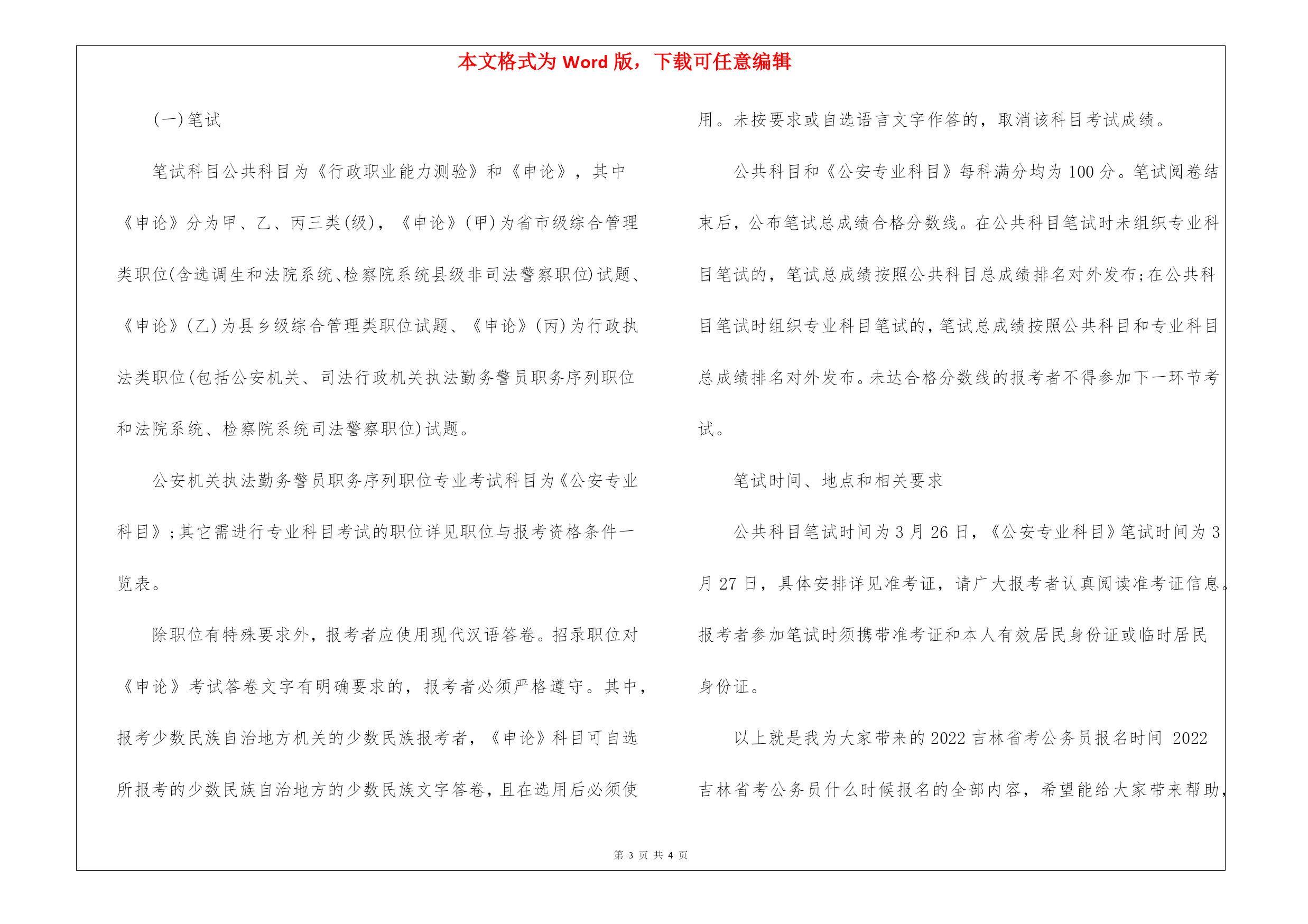 2022吉林省考公务员报名时间-2022吉林省考公务员什么时候报名.docx