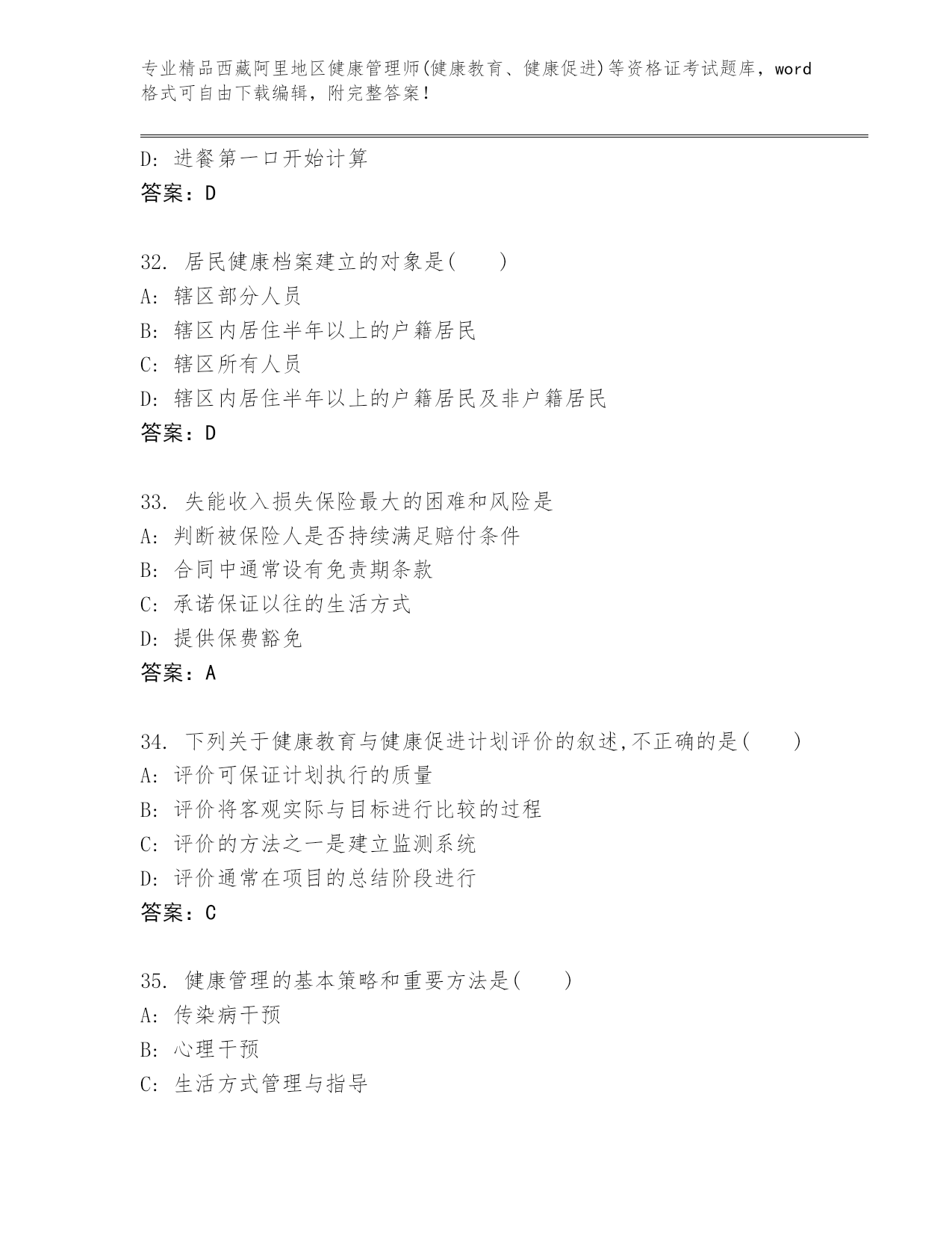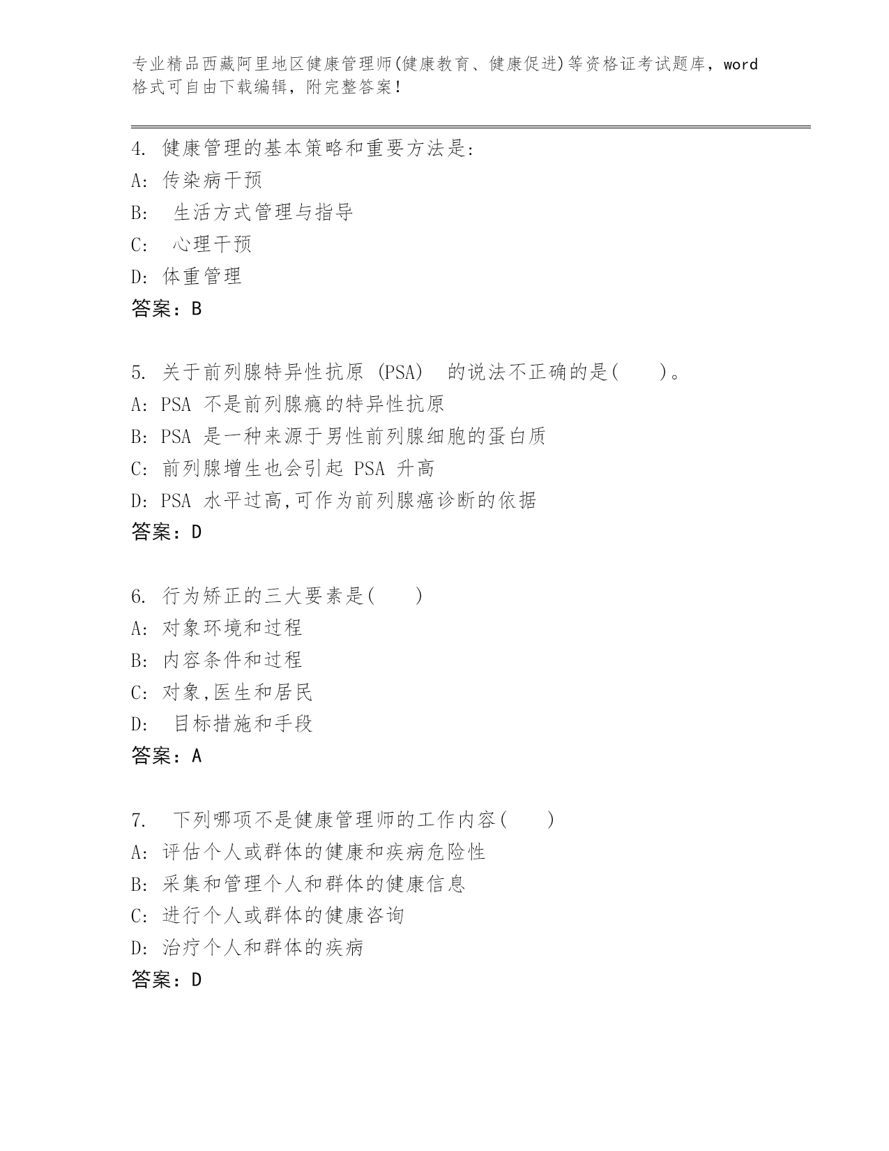 西藏阿里地区健康管理师(健康教育、健康促进)等资格证考试完整题库(综合卷).docx