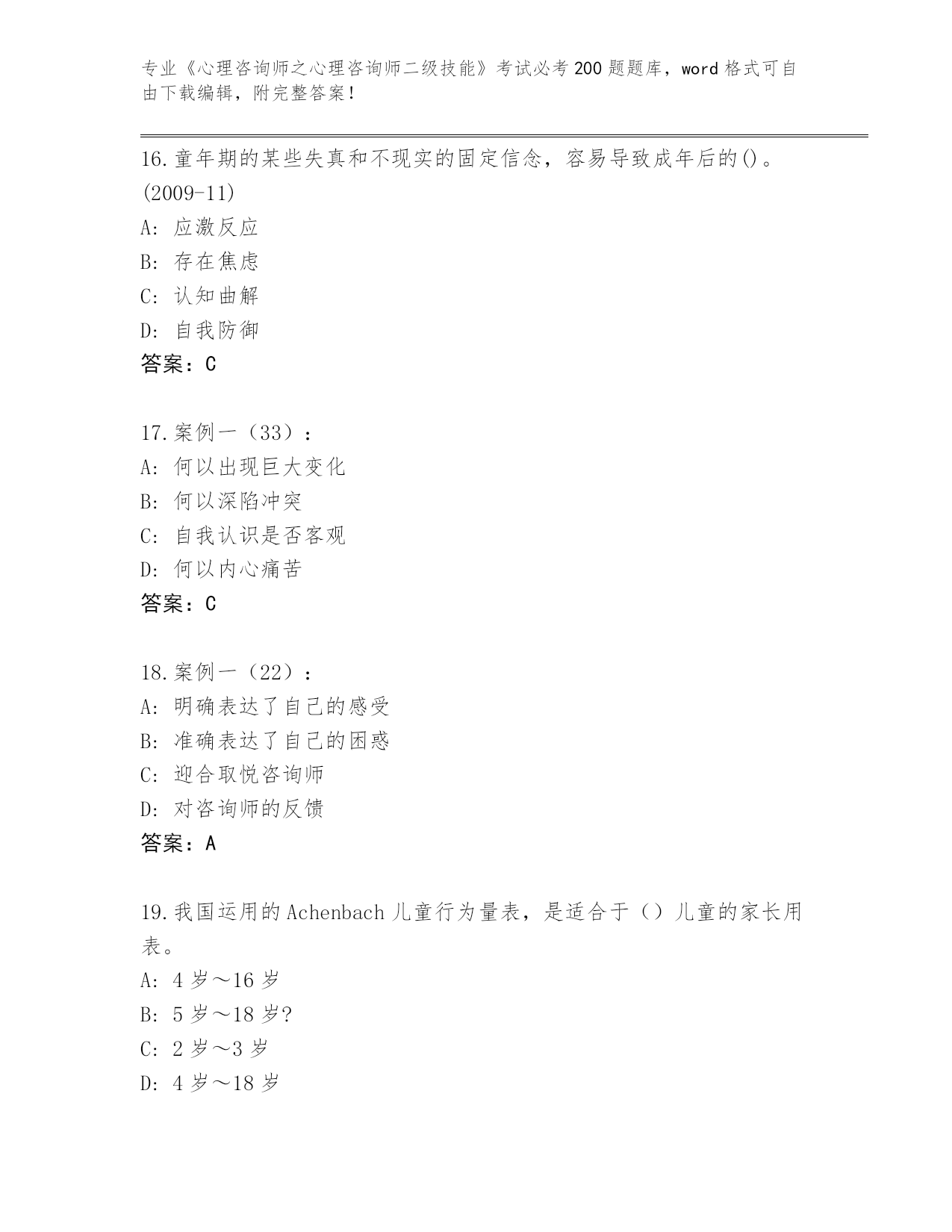 山西省夏县《心理咨询师之心理咨询师二级技能》考试必考200题王牌题库含答案(新)
