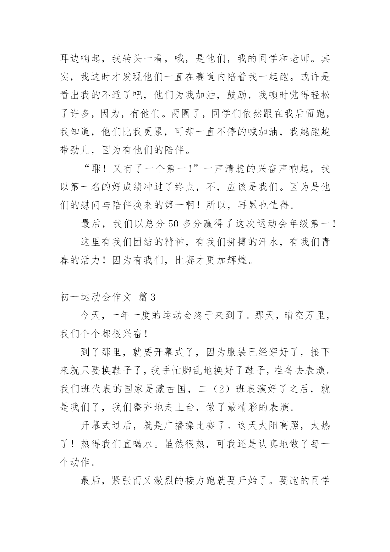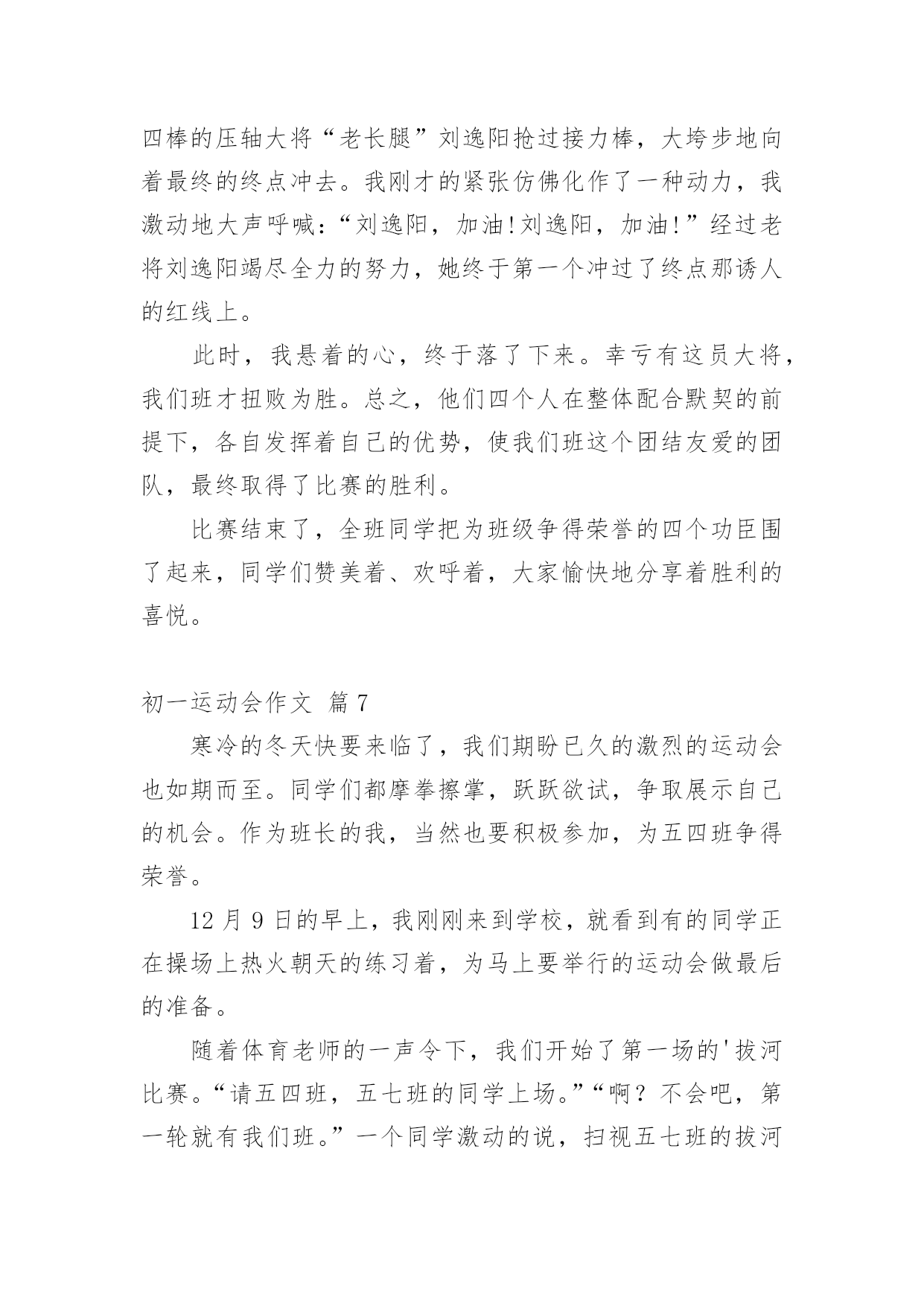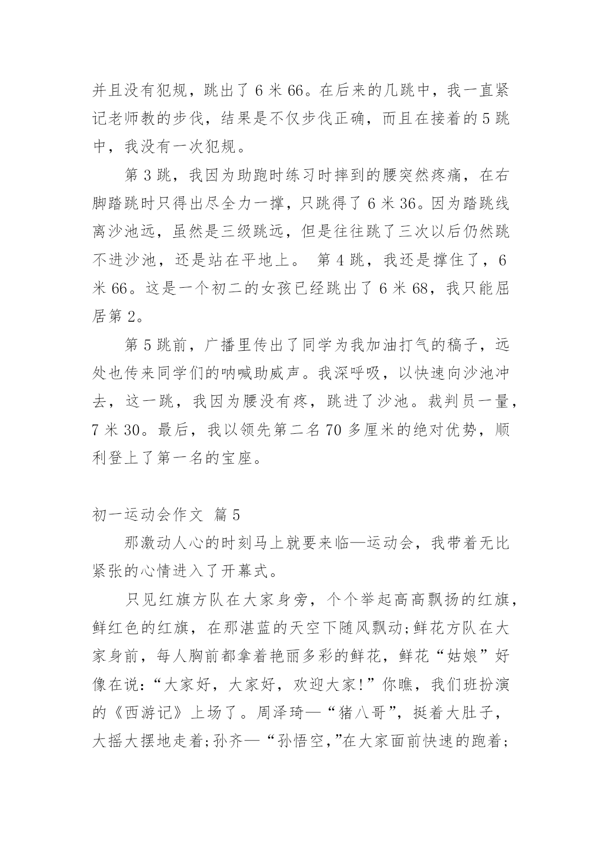 初一运动会作文在生活、工作和学习中,许多人都有过写作文的经历,对作文都不陌生吧,写作文是培养人们的观察力、联想力、想象力、思考力和记忆力的重要手段。还是对作文一筹莫展吗?以下是小编整理的初一运动会作文10篇,希望能够帮助到大家。初一运动会作文篇1今天开运动会,大家都很激动,我们都希望我们班能得到第一名。运动会开始了,铃声一响,老师就叫我们出去站队,我们都是穿着校服戴着红领巾。先是一、二年级比赛,然后才是三、四年级。等到广播说三四班请走到操场上时,我们按着队形走向操场,广播体操音乐响起,大家开始做操,有些动作很难,我以前学好了,所以这些动作变得很简单。操做完了,大家从激动变成平静,我们走向教室的时候,心里在想:希望我们班能得到第一名。这次运动会,我永远也忘不掉,后来学校说我们班得了第三名,以后我会更努力。初一运动会作文篇2“加油!加油!”呐喊声一浪高过一浪,在这丹桂飘香的金秋十月,我们迎来了欢快精彩的趣味田径运动会。在这天,我们努力,我们拼搏,一起享受了硕果的芬香。清晨,我们穿着干净整洁的校服,排着整齐划一的队伍,迎着朝阳,伴着彩旗,与全校35个班级一同参加了隆重的运动会开幕仪式。各班喊着各自的口号,志气高昂,精神抖擞,尤其是我们班,口号声最响亮最雄伟!当校长宣布运动会正式开始时,全场都沸腾了,紧张激烈的`运动会来了!你看,现在是男子200米短跑,随着发令枪“砰”的一声,运动员们如离弦的箭一般,向终点冲击。看台上的观众为他们呐喊助阵,啦啦队们的加油声为他们赞美打气。“哦耶!”一声尖叫,原来在这场比赛中,我们的选手一举得冠,为下面的比赛开了个好头呀!全班无人不兴奋。再看看其他项目,场上的运动员们也都跃跃欲试,谁都不让谁,跳远选手一个跳得比一个远,投铅球的成绩也越投越高,他们手中的铅球仿佛都变成了一个个充满希望的许愿球,不断追逐着自己的梦想……经过中午的短暂休息,最让我们期待的长跑800米的项目开始了!作为800米长跑比赛中的一员,看着高手如林的选手们,心里不经有些打退堂鼓,毕竟长跑虽不及短跑那样要有强大的爆发力,但要有足够高的身体素质。快了,快了,轮到我了,我站上了跑道,枪声响起来了,我如受了惊的兔子一样奋力向前跑去。刚一开跑,同学们就站在跑道边为我喊加油,狂跑了一圈后,渐渐将对手们远远地甩在了身后,可我也有点体力不支。“加油,加油,你能行的!”一声声打气声在我耳边响起,我转头一看,哦,是他们,我的同学和老师。其实,我这时才发现他们一直在赛道内陪着我一起跑。或许是看出我的不适了吧,他们为我加油,鼓励,我顿时觉得轻松了许多,因为,有他们。两圈了,同学们依然跟在我后面跑,我知道,他们比我更累,可却一直不停的喊加油,我越跑越带劲儿,因为有他们的陪伴。“耶!又有了一个第一!”一声清脆的兴奋声响起,我以第一名的好成绩冲过了终点,不,应该是我们。因为是他们的慰问与陪伴换来的第一啊!所以,再累也值得。最后,我们以总分50多分赢得了这次运动会年级第一!这里有我们团结的精神,有我们拼搏的汗水,有我们青春的活力!因为有我们,比赛才更加辉煌。初一运动会作文篇3今天,一年一度的运动会终于来到了。那天,晴空万里,我们个个都很兴奋!到了那里,就要开幕式了,因为服装已经穿好了,接下来就只要换鞋子了,我手忙脚乱地换好了鞋子,准备去表演。我们班代表的国家是蒙古国,二(2)班表演好了之后,就是我们了,我们整齐地走上台,做了最精彩的表演。开幕式过后,就是广播操比赛了。这天太阳高照,太热了!热得我们直喝水。虽然很热,可我还是认真地做了每一个动作。最后,紧张而又激烈的接力跑就要开始了。要跑的同学屏住呼吸,全神贯注地在起跑线上做好了起跑前的'一切准备。“预备—跑!”地一声,顿时打破了此时的宁静。那四位同学都像一匹匹奔跑的小骏马,飞快地跃出了起跑线。当快要轮到我跑的时候,我的心几乎都要跳到嗓子眼儿里去了,终于轮到我了,我屏住呼吸,一下子冲了过去。可是最后我们还是得了最后一名。但是,没关系,因为我们大家努力了呀!反正明年还会有接力跑的。通过这次运动会,我知道了团结的力量有多大。初一运动会作文篇426日,就只剩下麦转笑和陈广杰的400米预决赛,我的三级跳远,薛群英的80米跨栏和女子全能铅球,叶晓聪,胡婉华,林敏雯的60米短跑。早上是麦转笑和陈广杰的400米预赛,我的三级跳,80米跨栏,全能铅球,60米短跑。陈广杰以第2组第3名进入下午的决赛。薛群英的80米跨栏第4,胡婉华以第2组第3进入决赛,林敏雯在60米短跑中,输了给舍长,第二组第四名,又一次与决赛权擦肩而过。叶晓聪60米战败。麦转笑以第二组第一名顺利进入决赛,我的三级跳远夺得冠军。麦转笑的400米预赛:本来麦转笑是报了200米和100米短跑的,但是我自作主张替她多报了一项400米和跳远,没想到她在我主张的两项上都取得了好