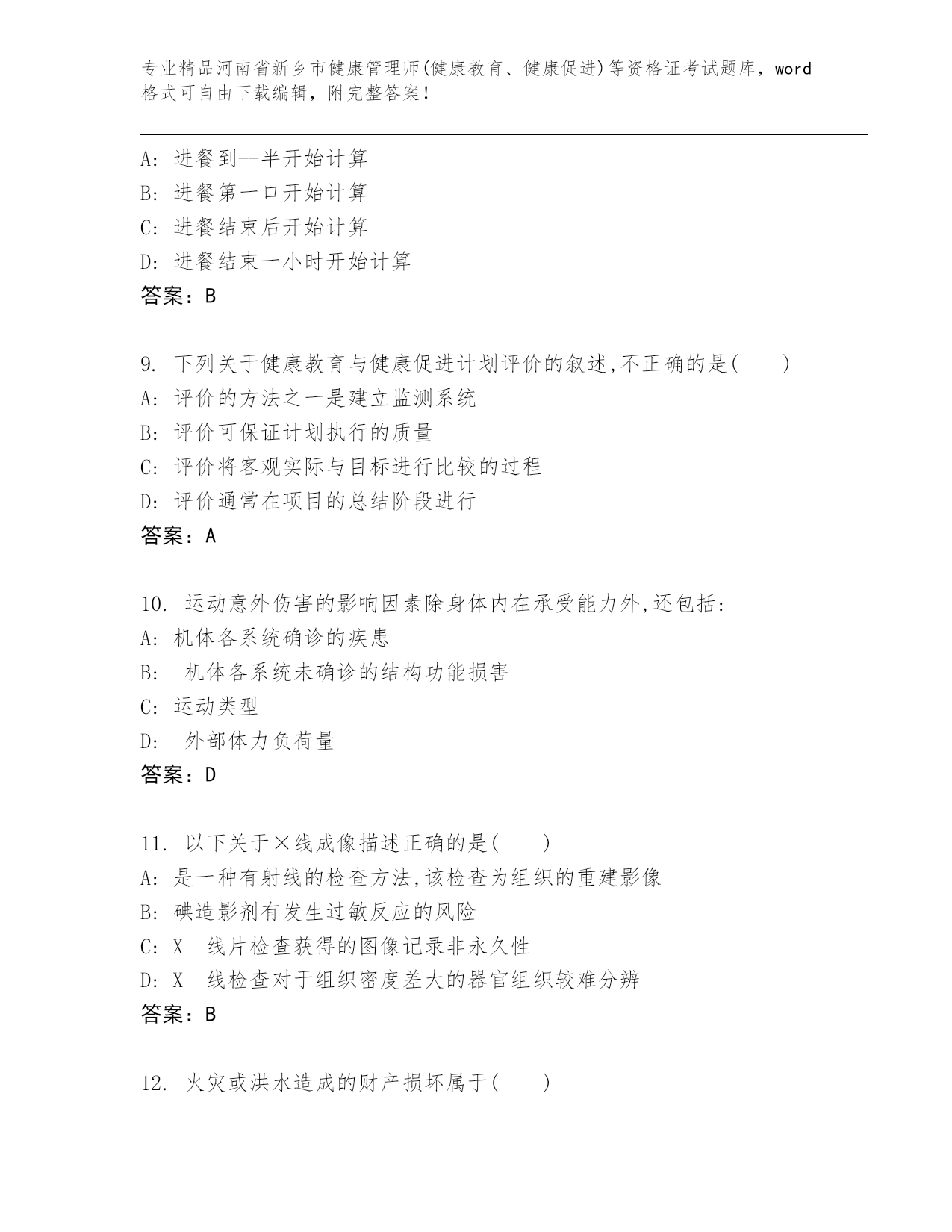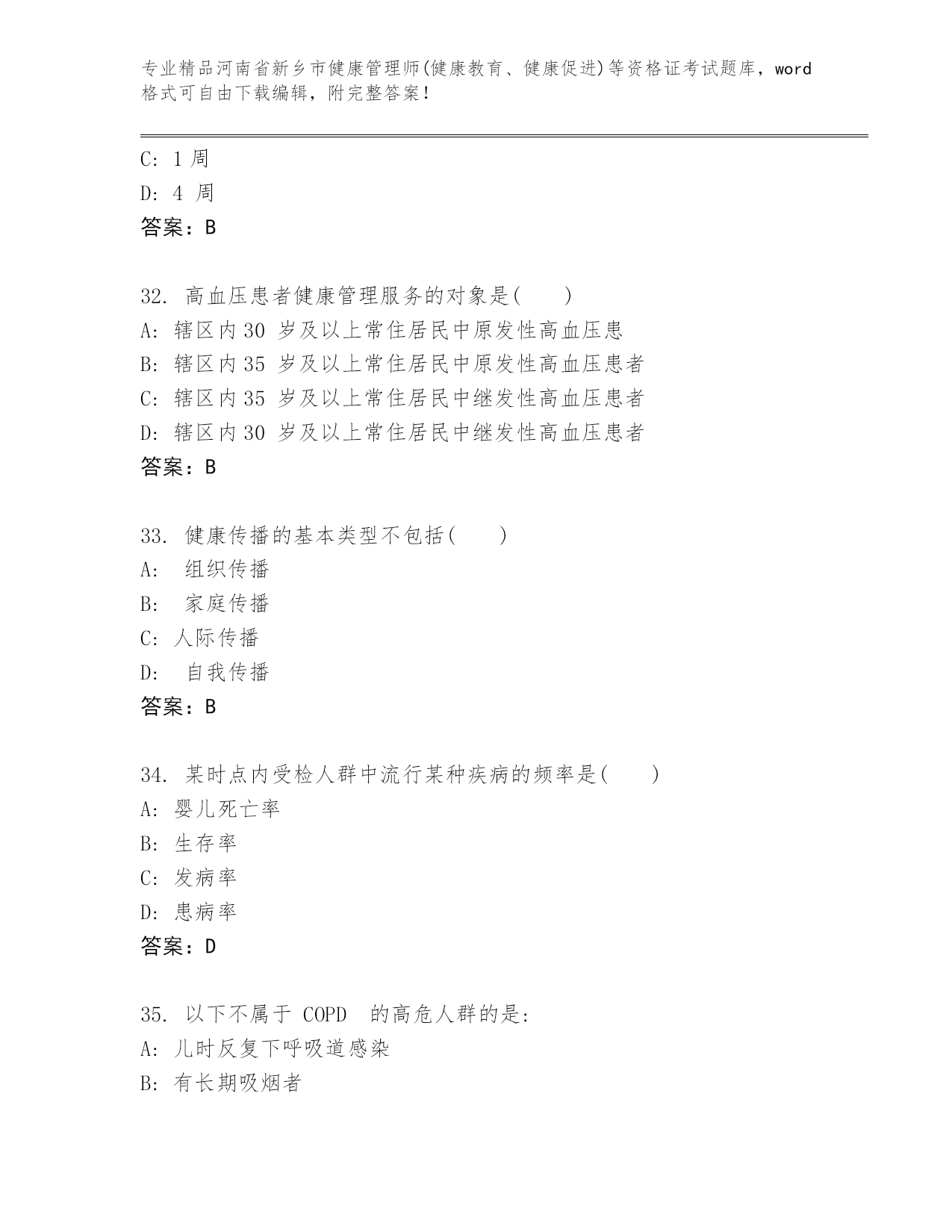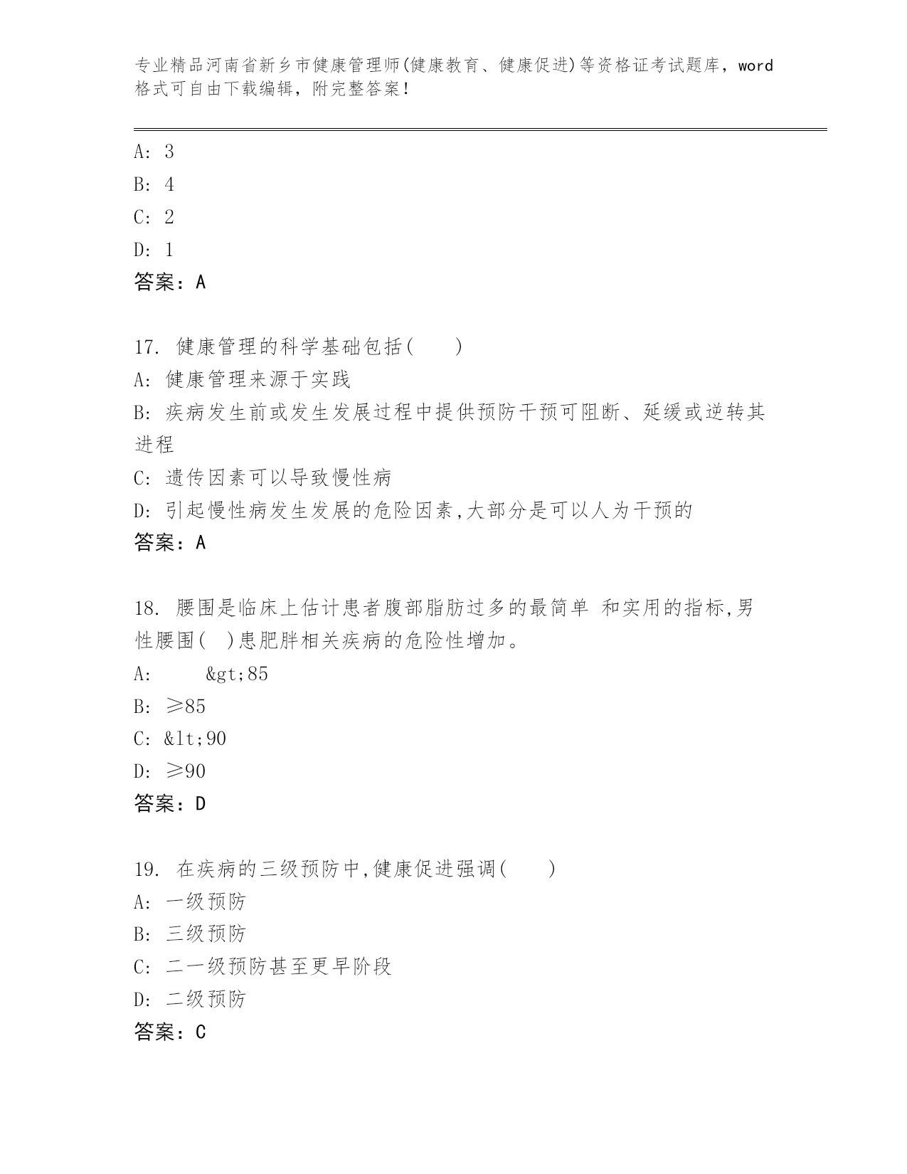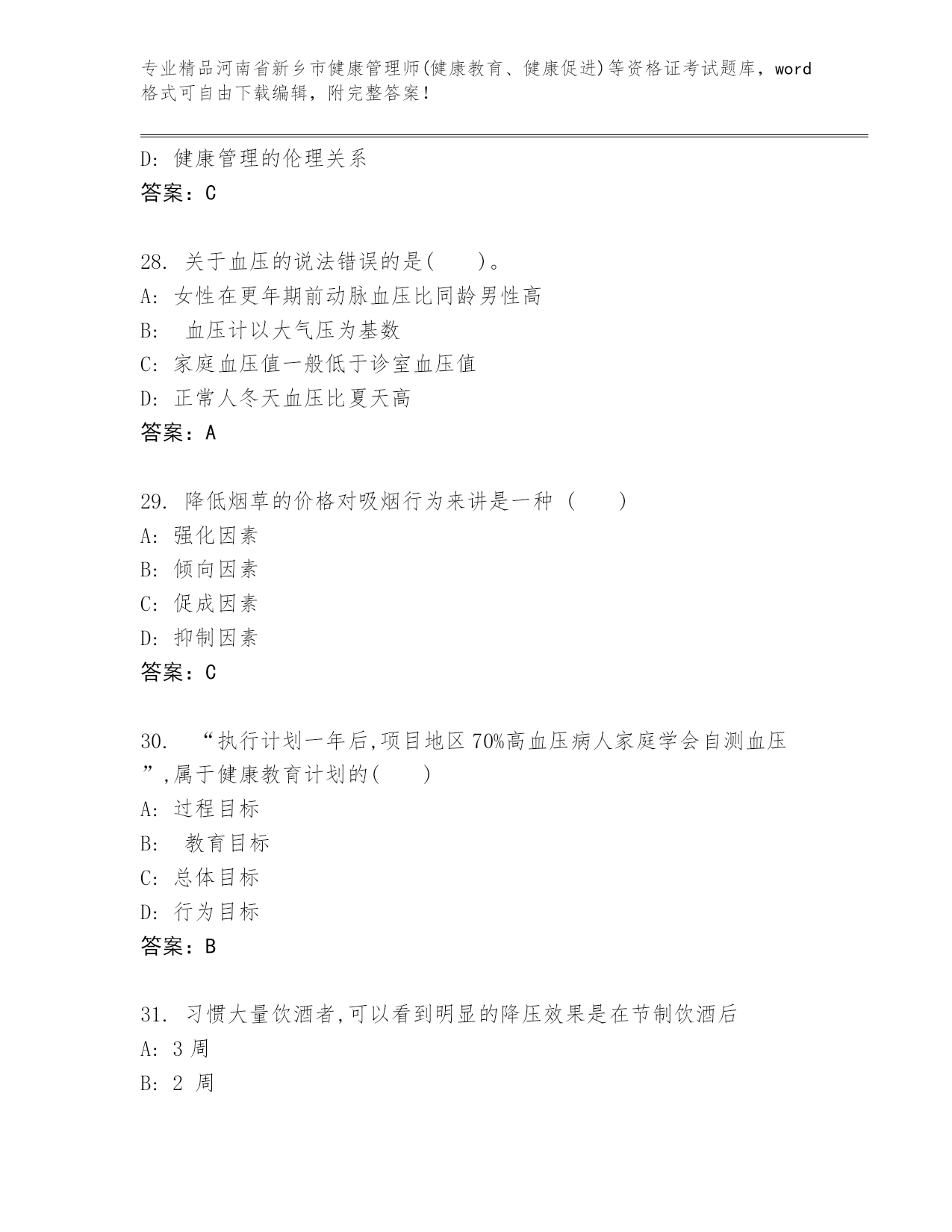 最新河南省新乡市健康管理师(健康教育、健康促进)等资格证考试真题题库【培优】