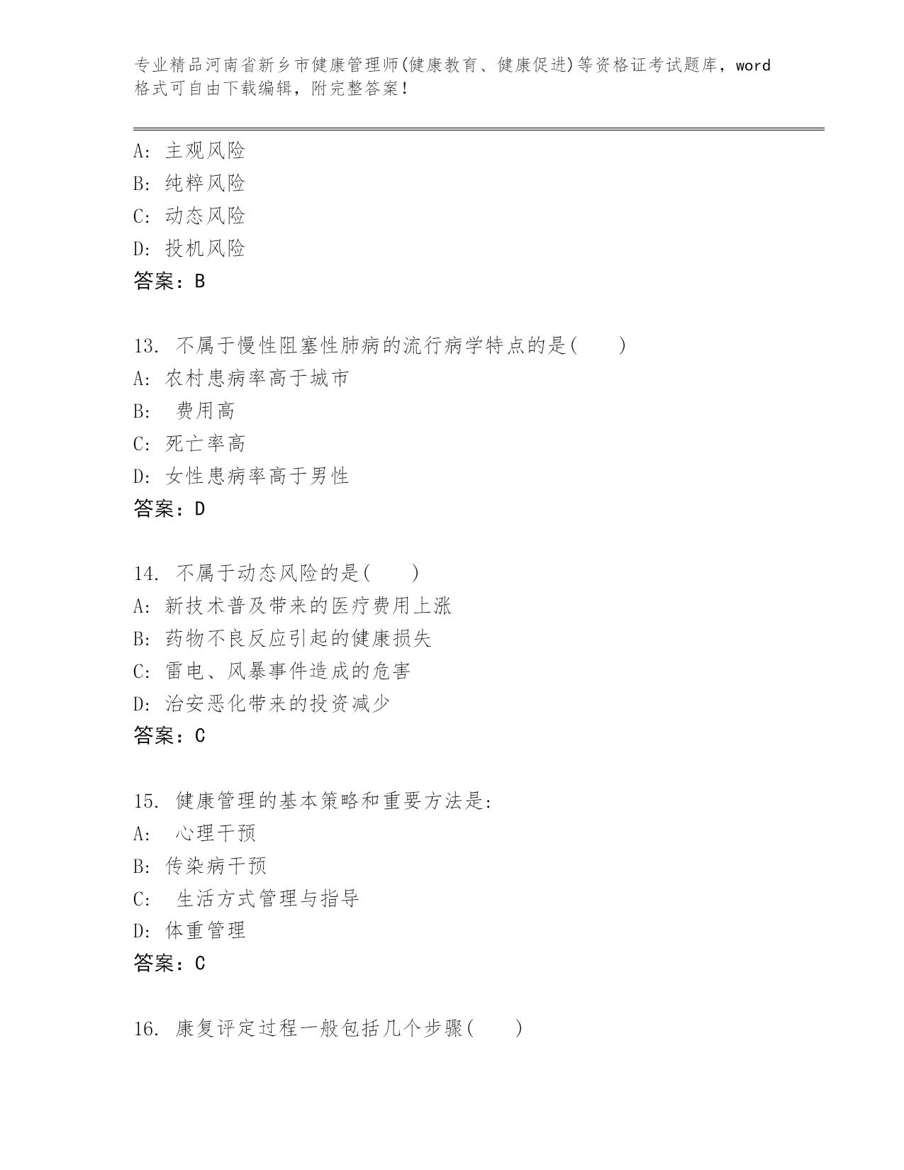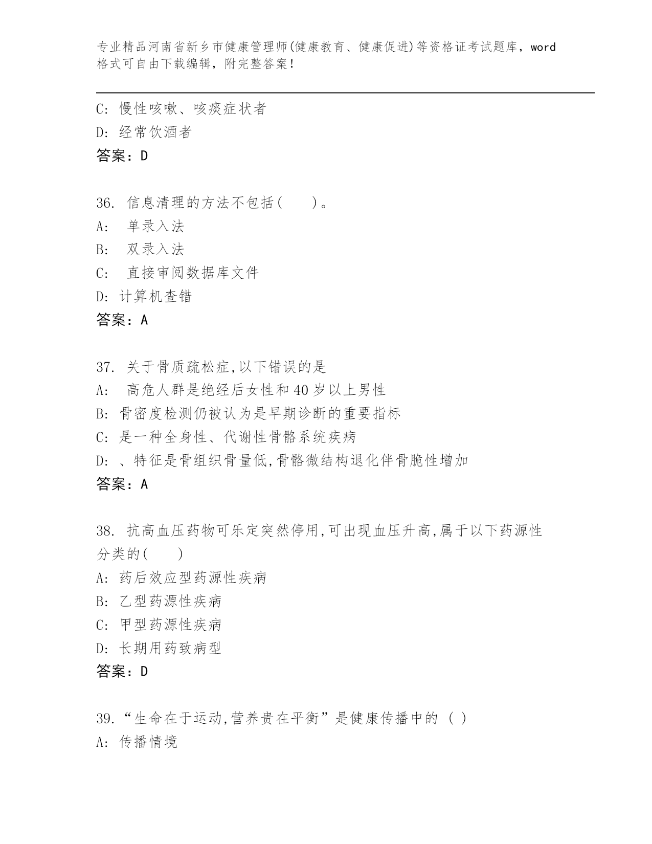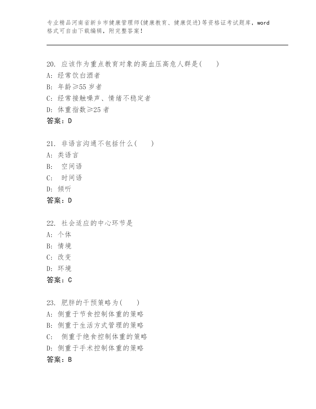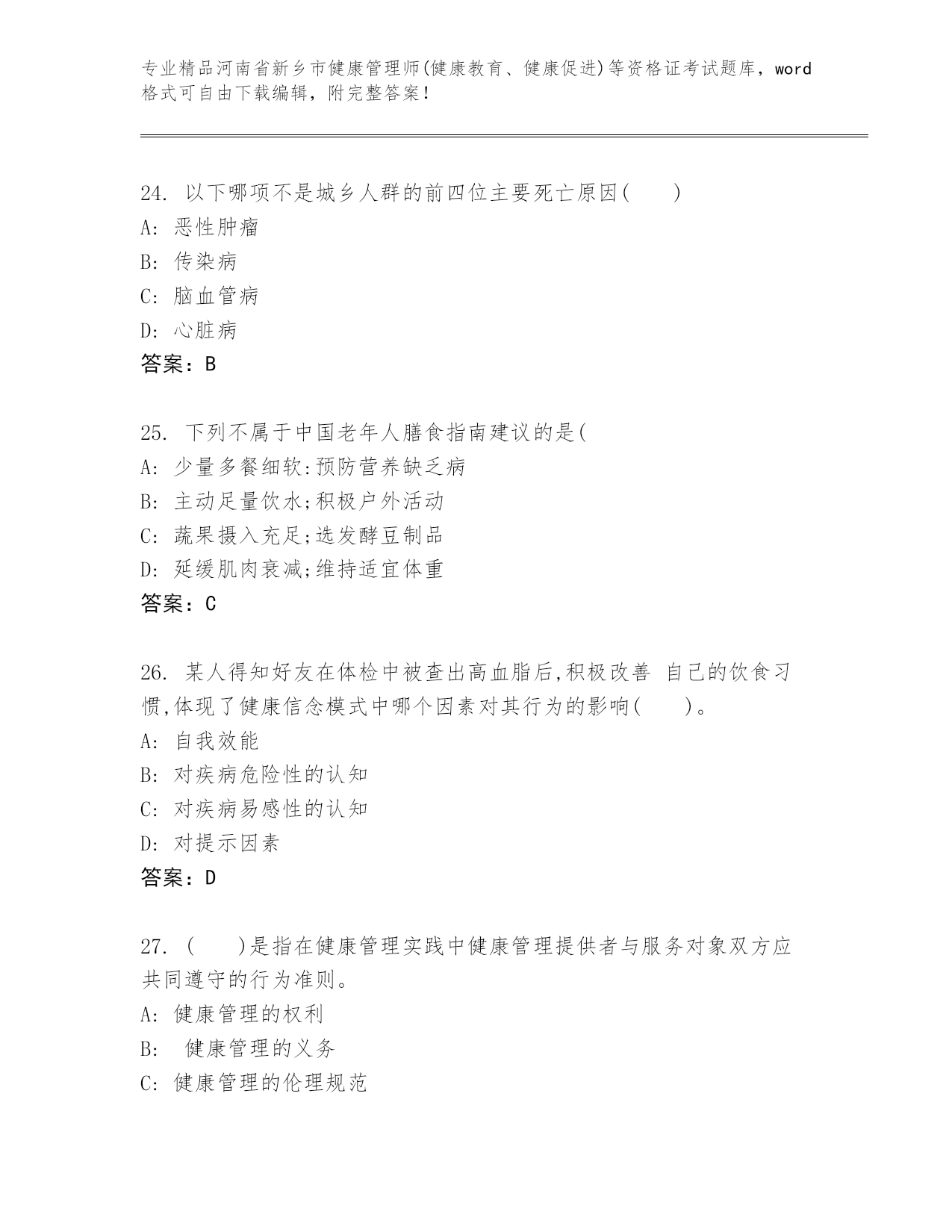 最新河南省新乡市健康管理师(健康教育、健康促进)等资格证考试真题题库【培优】.docx