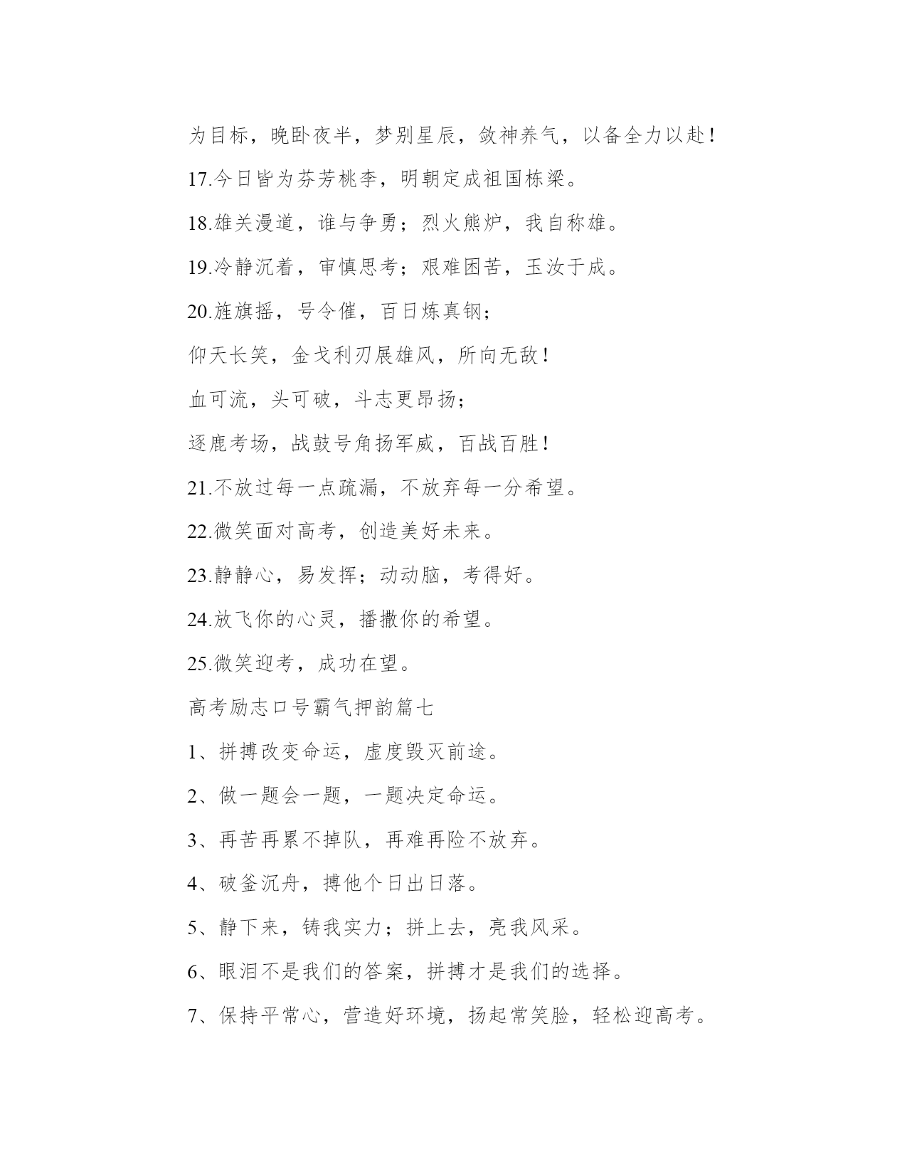2023年高考励志口号霸气押韵高考励志口号(优秀8篇).docx