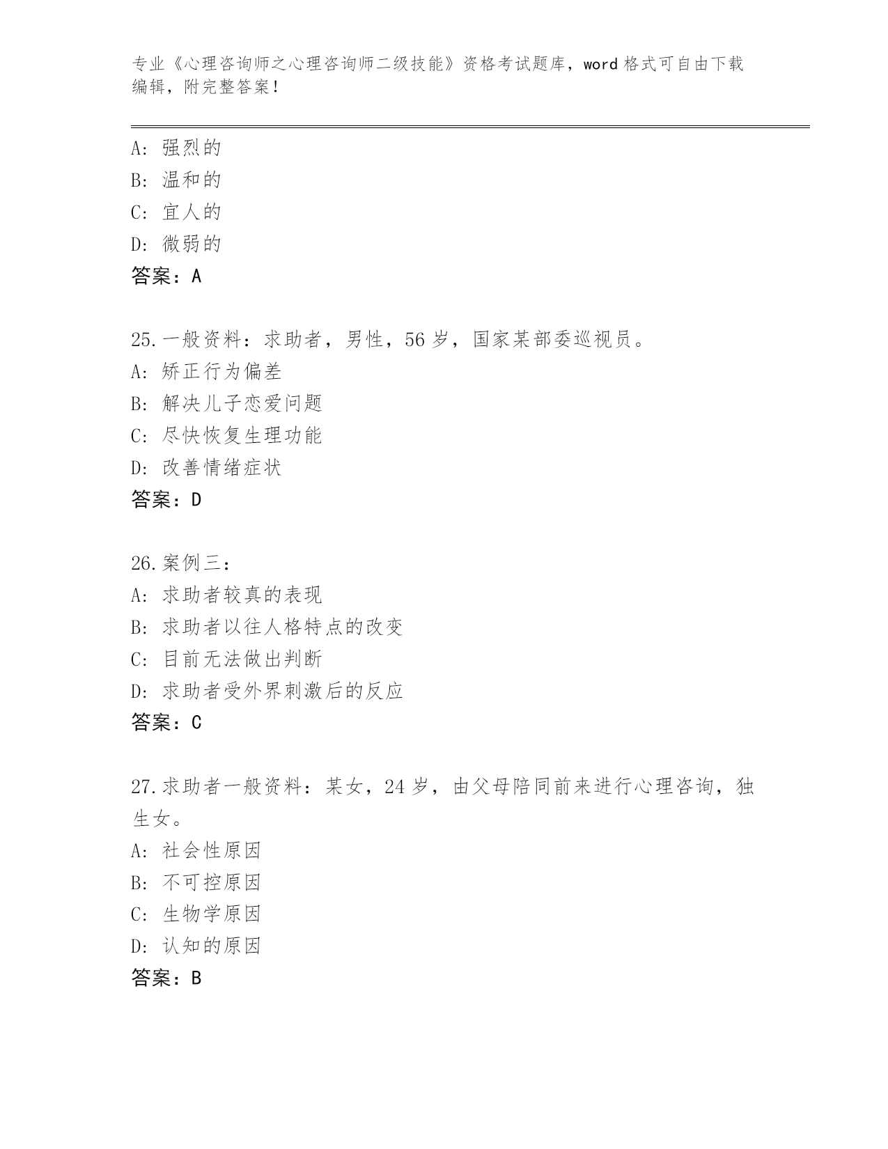 2024年贵州省罗甸县《心理咨询师之心理咨询师二级技能》考试大全答案下载