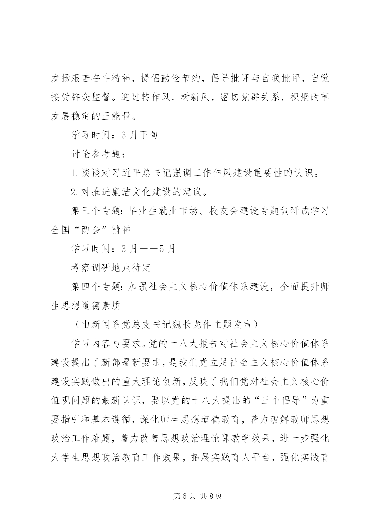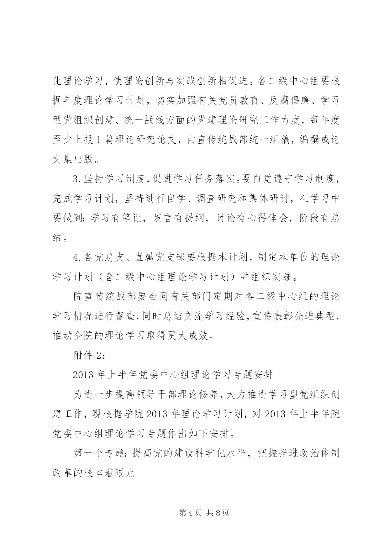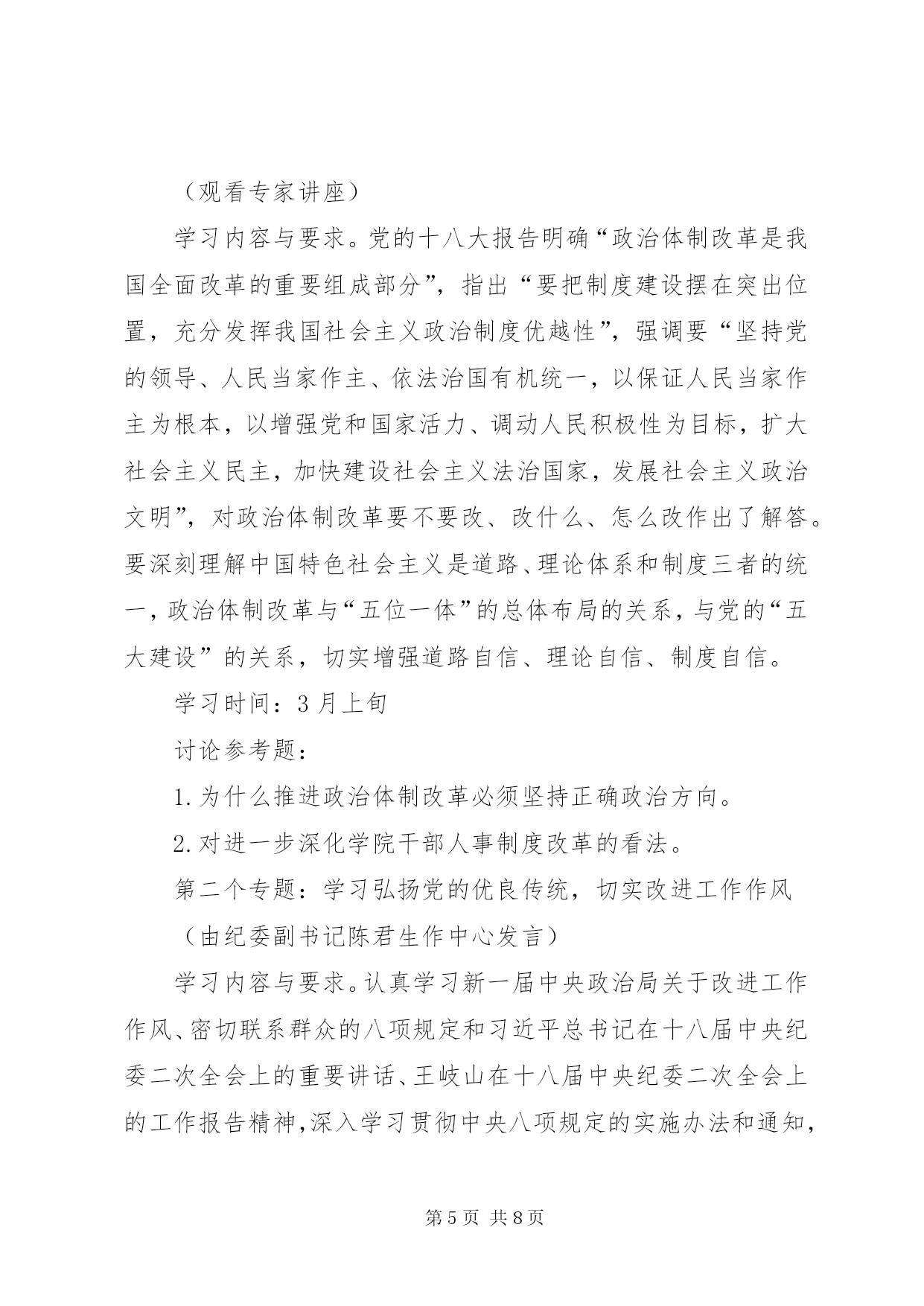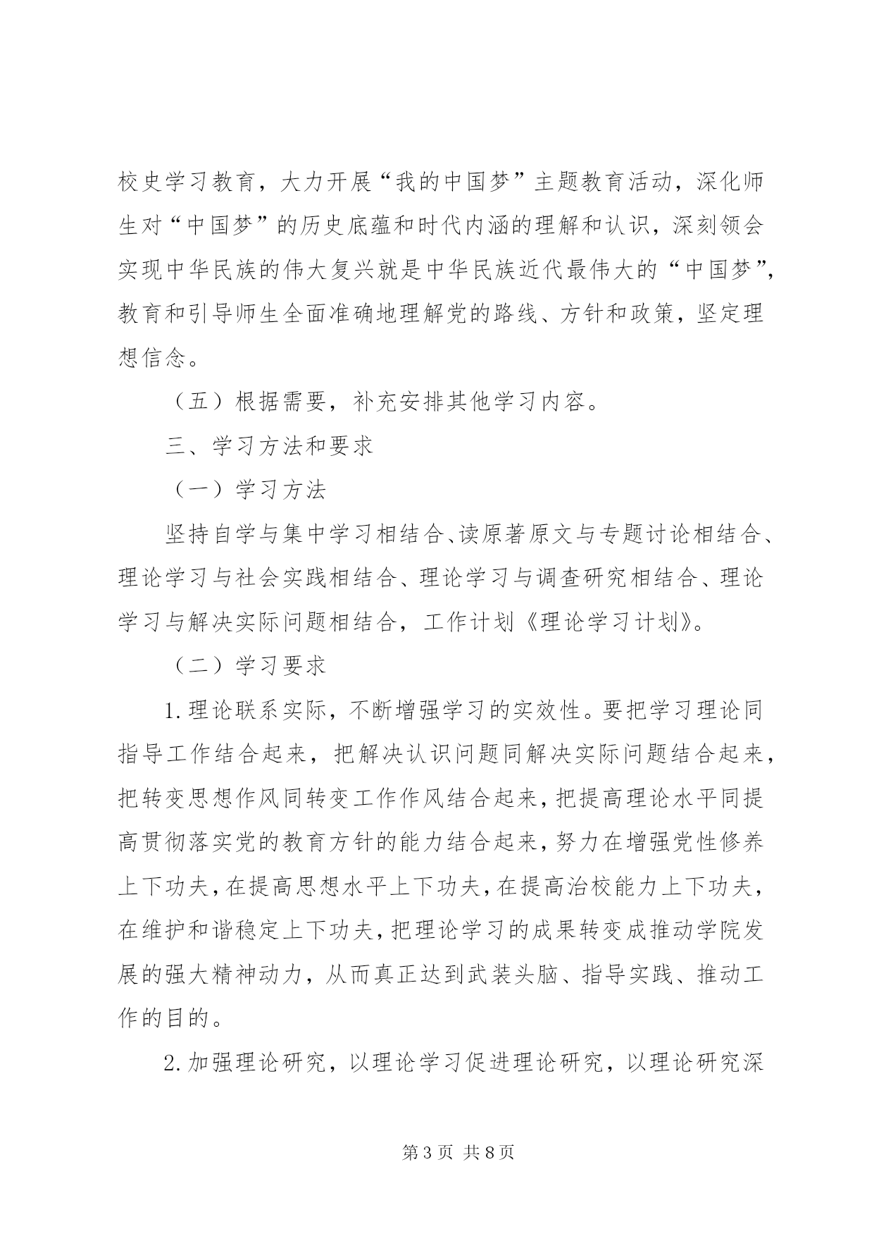 第PAGE\*Arabic\*MERGEFORMAT8页共NUMPAGES\*MERGEFORMAT8页理论学习计划总结范文。增强理论学习的针对性、实效性、吸引力和感染力,把学习成果转化为推动工作的动力,推进和谐校园、幸福校园、平安校园、廉洁校园和美丽校园建设。二、学习内容(一)深入学习宣传贯彻党的十八大精神深入学习宣传贯彻党的十八大精神,是2013年理论学习的主要内容。要认真研读党的十八大文件,认真学习党的十八届一中、二中全会和习近平总书记一系列重要讲话的精神,切实落实《衡阳师范学院学习宣传贯彻党的十八大精神实施方案》(院党字[2013]2号),把推进学院各项事业科学发展作为学习宣传贯彻十八大精神的聚集点、着力点和落脚点。(二)认真学习贯彻2013年全国“两会”精神2013年全国“两会”是贯彻落实党的十八大精神,布局全面建成小康社会的一次重要盛会,是全面推进社会主义经济建设、政治建设、文化建设、社会建设、生态文明建设的一个新起点。要通过学习全国人大、政协“两会”报告、社论等文献,结合我院发展的新机遇,认真回顾和总结我院在教学科研等方面所取得的成功经验,明确今后的工作主题、目标任务、实现途径、方法步骤,统一思想,加快步伐,把全面贯彻党的教育方针贯穿学院工作始终。(三)认真学习贯彻党的十八届中央纪委二次全会精神,进一步推进廉洁文化建设认真学习贯彻习近平总书记在党的十八届中央纪委二次全会上的重要讲话和王岐山工作报告精神,贯彻落实中央《八项规定》。结合保持党的先进性、纯洁性教育,在党员干部,特别是领导干部中,大力开展“率先垂范、清正廉洁”主题教育活动,在教职工中开展“爱岗敬业、廉洁从教”主题教育活动,在学生中开展“敬廉崇洁,诚实守信”主题教育活动,进一步加强反腐倡廉教育和廉洁文化建设。(四)大力开展法制宣传教育,形成浓厚的法治文化氛围大力开展法制宣传教育,加强社会主义法治理念教育,弘扬社会主义法治精神,引导全体师生自觉遵守法律法规,形成守法光荣的良好氛围,使法治建设和道德建设紧密结合起来。学习宣传贯彻《全面推进依法治校实施纲要》,提高领导干部运用法治思维和法治方式深化改革、推动发展、化解矛盾、维护稳定的能力,全面提高依法治校、依法治教的能力和水平,切实落实师生主体地位,依法落实和保障师生的知情权、参与权、表达权和监督权,积极建设民主校园、和谐校园、平安校园。(五)加强理想信念教育,深化对“中国梦”的历史底蕴和时代内涵认识结合师生所关注的思想理论热点问题,加强形势政策和党史、校史学习教育,大力开展“我的中国梦”主题教育活动,深化师生对“中国梦”的历史底蕴和时代内涵的理解和认识,深刻领会实现中华民族的伟大复兴就是中华民族近代最伟大的“中国梦”,教育和引导师生全面准确地理解党的路线、方针和政策,坚定理想信念。(五)根据需要,补充安排其他学习内容。三、学习方法和要求(一)学习方法坚持自学与集中学习相结合、读原著原文与专题讨论相结合、理论学习与社会实践相结合、理论学习与调查研究相结合、理论学习与解决实际问题相结合,工作计划《理论学习计划》。(二)学习要求1.理论联系实际,不断增强学习的实效性。要把学习理论同指导工作结合起来,把解决认识问题同解决实际问题结合起来,把转变思想作风同转变工作作风结合起来,把提高理论水平同提高贯彻落实党的教育方针的能力结合起来,努力在增强党性修养上下功夫,在提高思想水平上下功夫,在提高治校能力上下功夫,在维护和谐稳定上下功夫,把理论学习的成果转变成推动学院发展的强大精神动力,从而真正达到武装头脑、指导实践、推动工作的目的。2.加强理论研究,以理论学习促进理论研究,以理论研究深化理论学习,使理论创新与实践创新相促进。各二级中心组要根据年度理论学习计划,切实加强有关党员教育、反腐倡廉、学习型党组织创建、统一战线方面的党建理论研究工作力度,每年度至少上报1篇理论研究论文,由宣传统战部统一组稿,编撰成论文集出版。3.坚持学习制度,促进学习任务落实。要自觉遵守学习制度,完成学习计划,坚持进行自学、调查研究和集体研讨,在学习中要做到:学习有笔记,发言有提纲,讨论有心得体会,阶段有总结。4.各党总支、直属党支部要根据本计划,制定本单位的理论学习计划(含二级中心组理论学习计划)并组织实施。院宣传统战部要会同有关部门定期对各二级中心组的理论学习情况进行督查,同时总结交流学习经验,宣传表彰先进典型,推动全院的理论学习取得更大成效。附件2:2013年上半年党委中心组理论学习专题安排为进一步提高领导干部理论修养,大力推进学习型党组织创建工作,现根据学院2013年理论学习计划,对2013年上半年院党委中心组理论学习专题作出如下安排。第一个专题:提高党的建设科学化水平,把握推进政治体制改革的根本着眼点(观看专家讲座)学